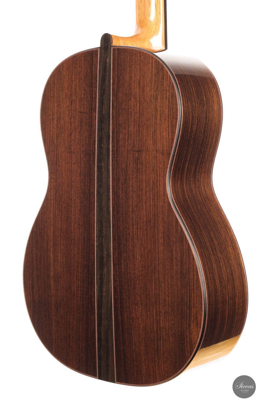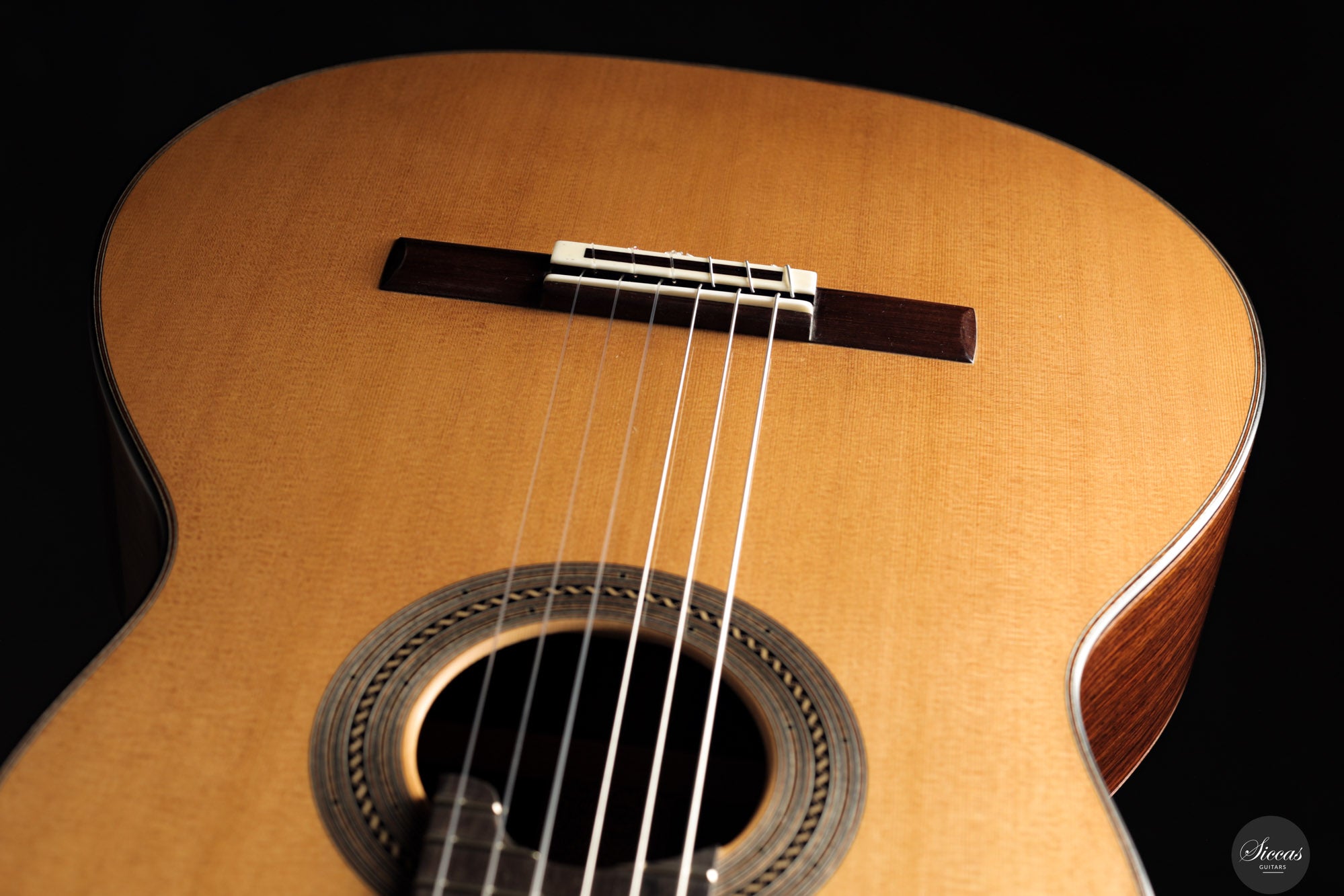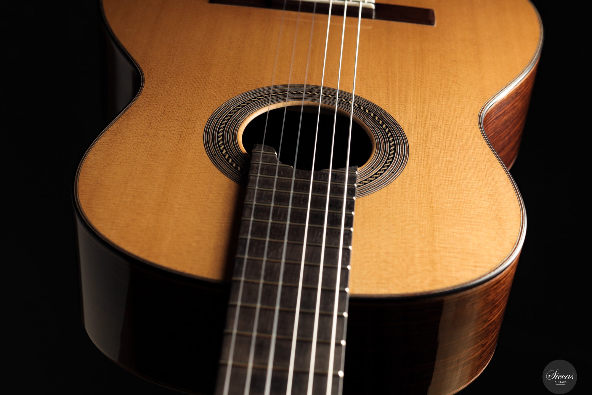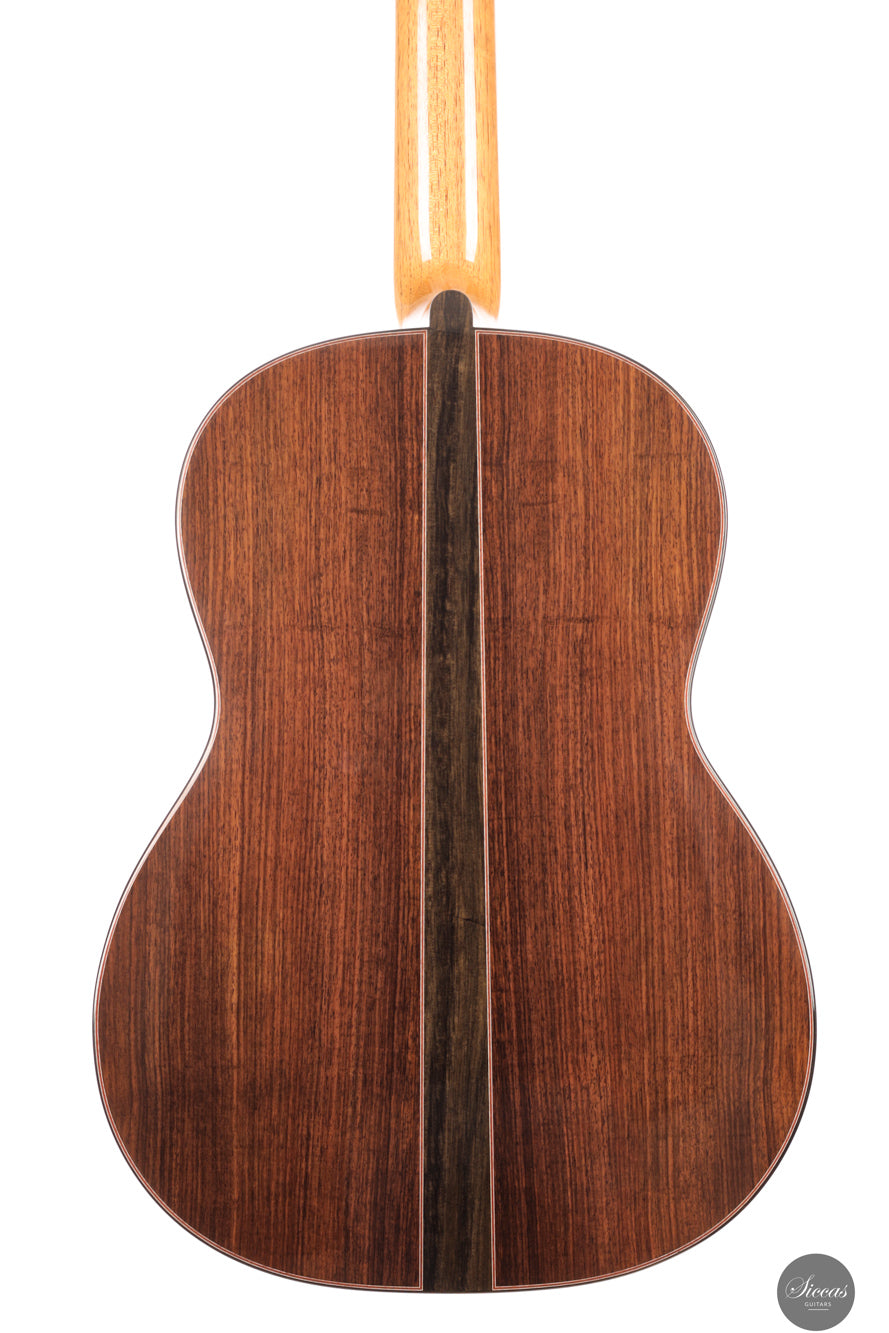 Die 2025er Konzertgitarre mit der Seriennummer 19 ist ein Ausdruck von Alessandro Perciaccantes tiefem Verständnis für den spanischen Gitarrenbau. Mit Zedernholzdecke, indischem Palisander für Boden und Zargen sowie traditioneller Fächerbeleistung verbindet sie klassische Bauweise mit modernen klanglichen Ansprüchen.