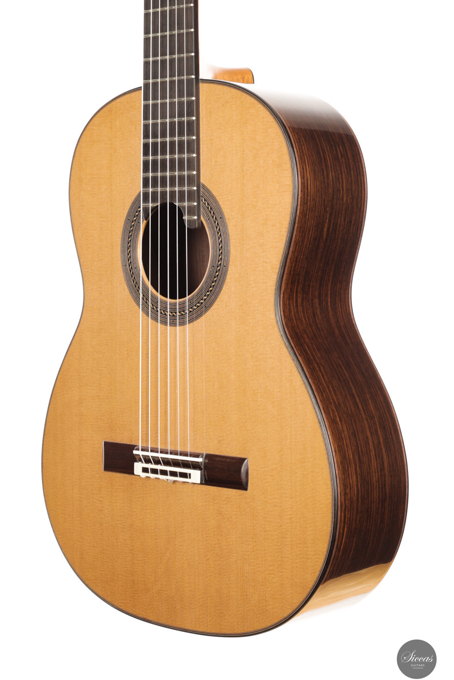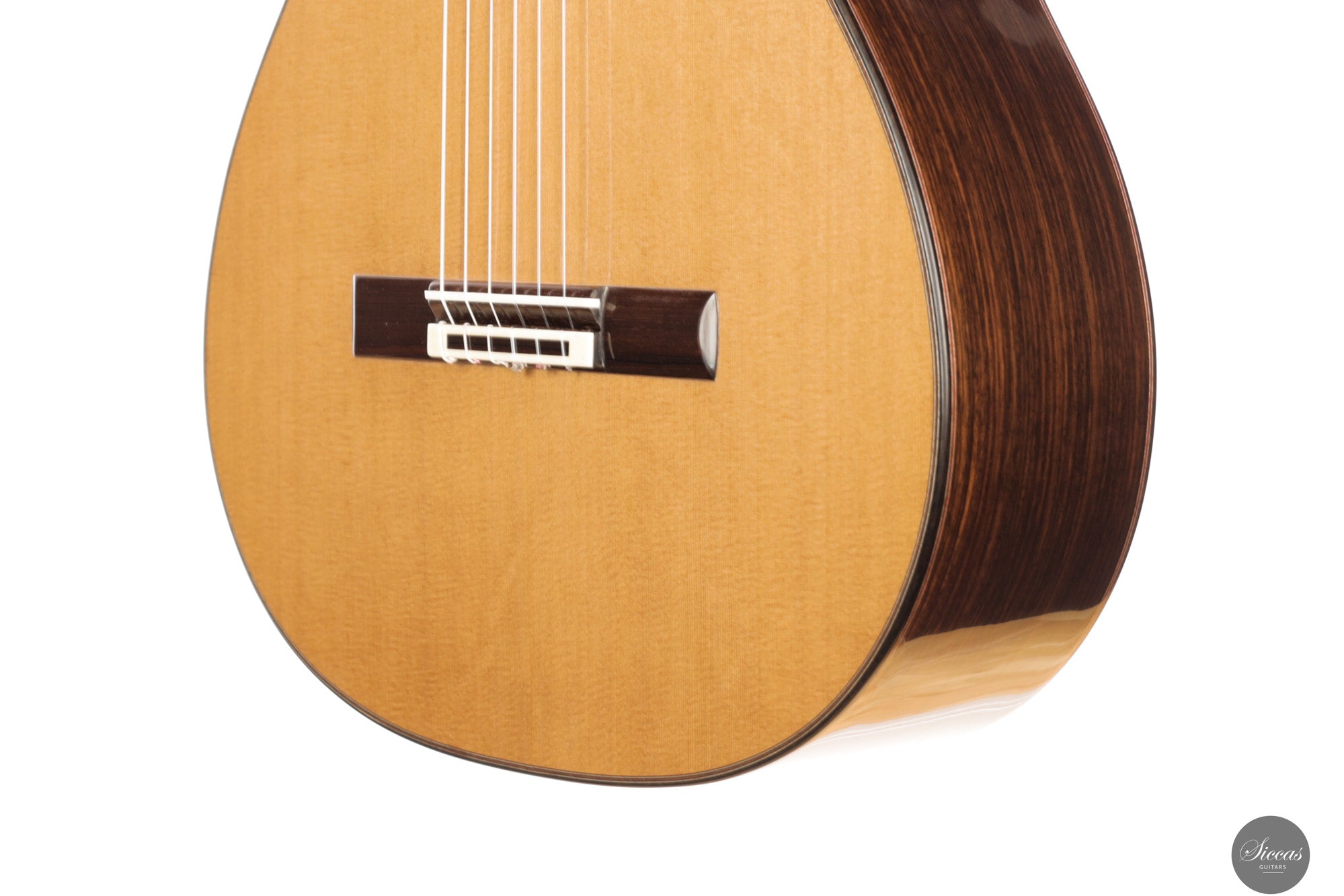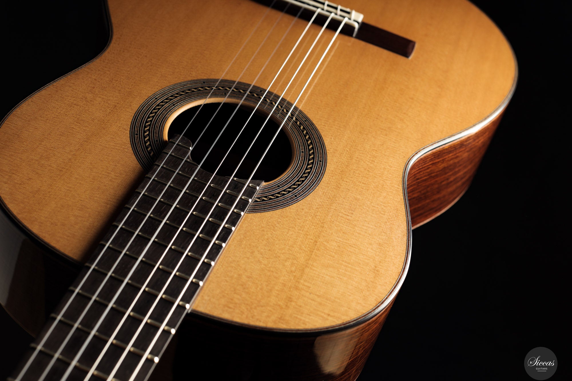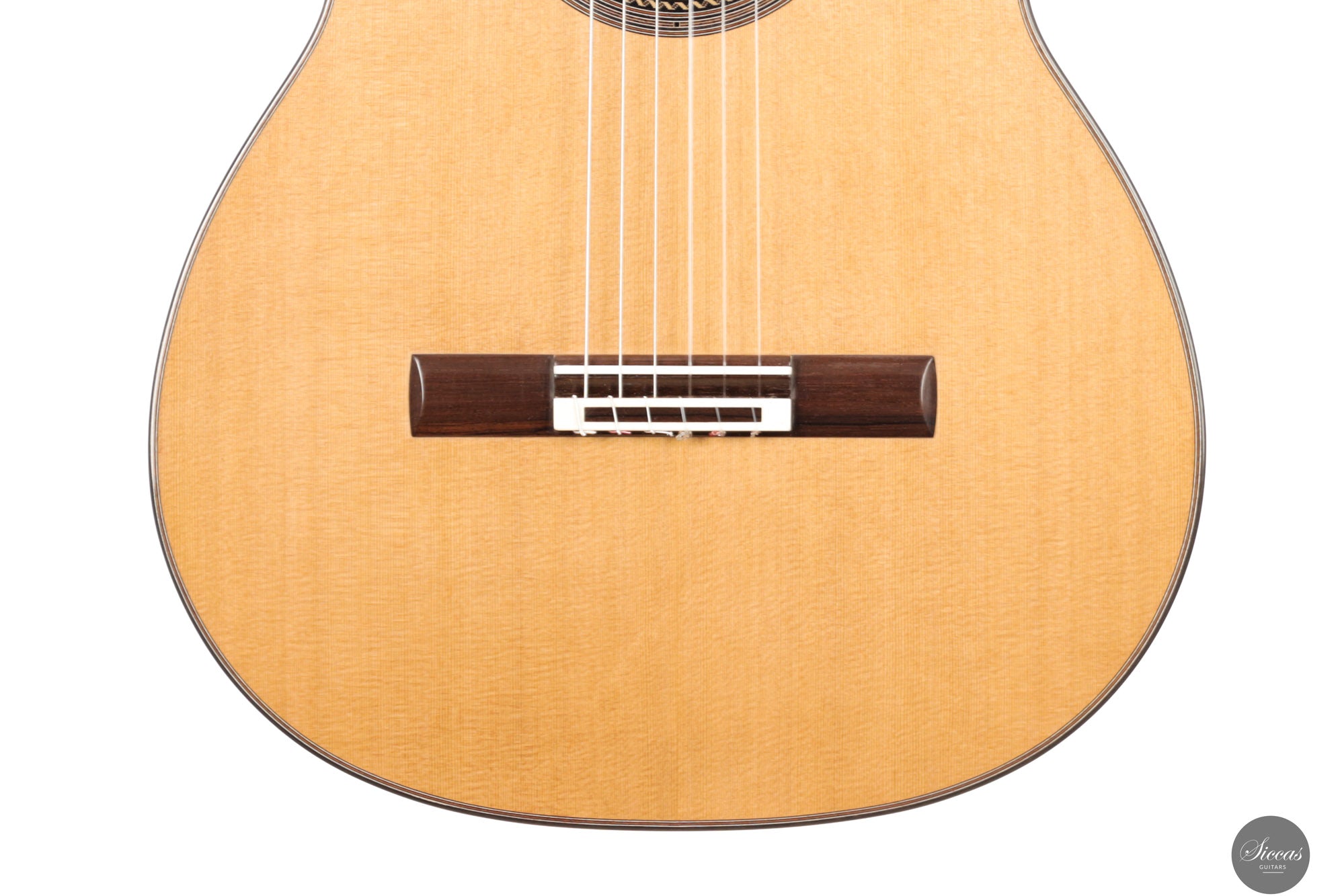 Die 2025er Konzertgitarre mit der Seriennummer 19 ist ein Ausdruck von Alessandro Perciaccantes tiefem Verständnis für den spanischen Gitarrenbau. Mit Zedernholzdecke, indischem Palisander für Boden und Zargen sowie traditioneller Fächerbeleistung verbindet sie klassische Bauweise mit modernen klanglichen Ansprüchen.