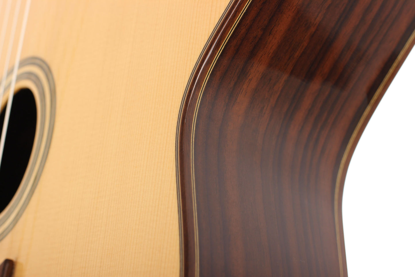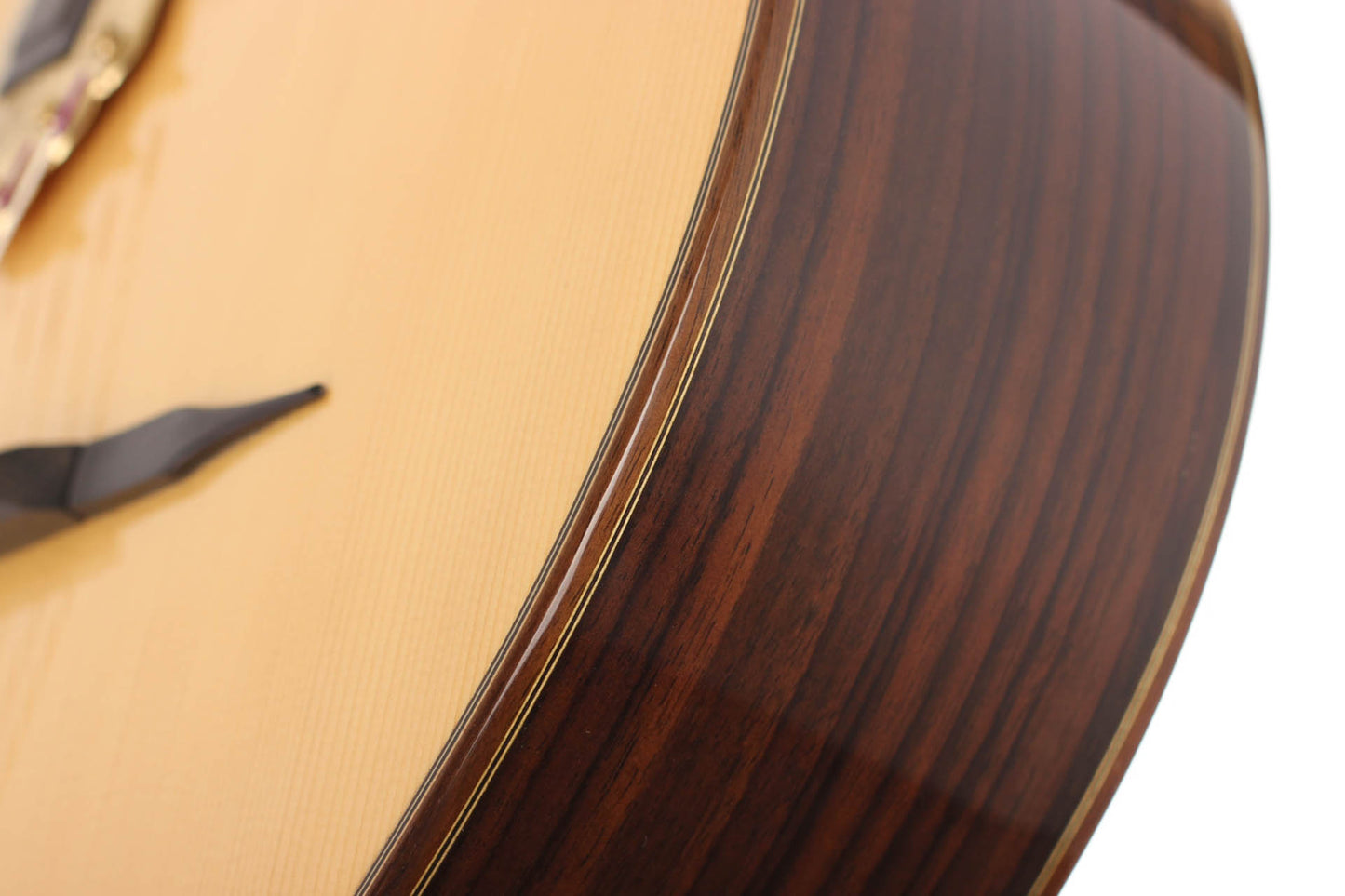Die M01 ist mit ovalem Schallloch (Petite Bouche), D-förmigem Schallloch (Grande Bouche) und F-Löchern, ähnlich denen einer Violine, erhältlich. Dieses Modell hat einen sehr authentischen perkussiven Klang und bietet ein unschlagbares Preis-Leistungs-Verhältnis. Mit seiner massiven Fichtendecke und laminiertem Palisanderboden und -zargen ist es in einer Hochglanzlackierung oder Antik-Finish-Ausführung erhältlich, wobei letzteres diesem fantastischen Modell einen schönen Vintage-Charakter verleiht. Für den optimalen Schutz des Instruments ist ein passender Hartschalenkoffer im Preis inbegriffen.
