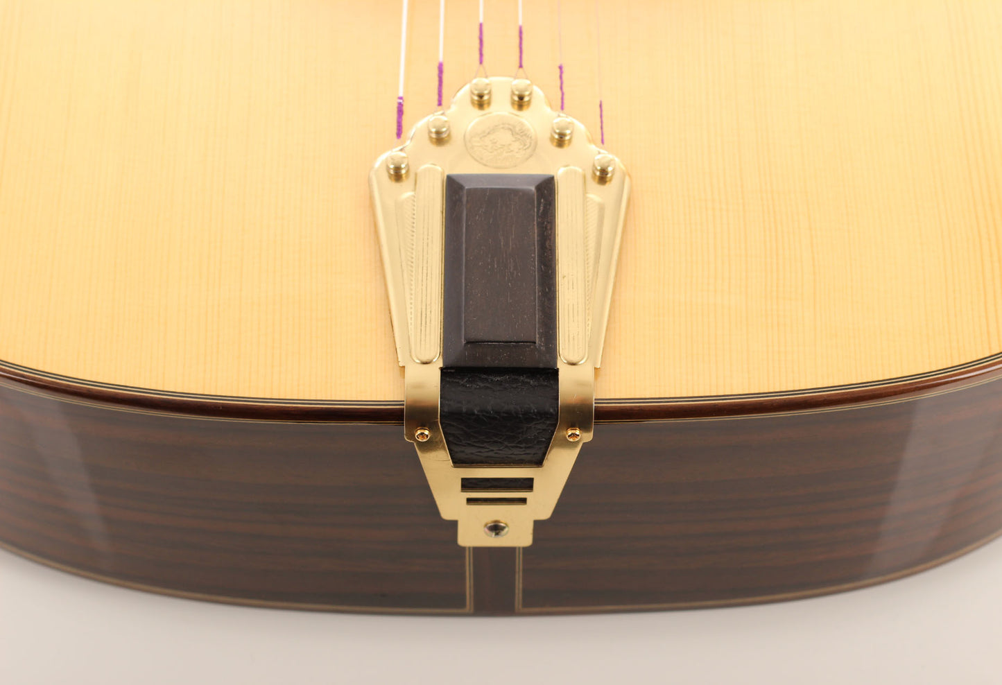 Das "M" steht für die Initialen des legendären Gitarrenbauers Mario Maccaferri, der diese Art Gitarre entwickelte und die in Zusammenarbeit mit dem französischen Hersteller Selmer von 1932 bis etwa 1952 gebaut wurde. Obwohl Maccaferris Zusammenarbeit mit Selmer 1934 endete, stellte die Firma noch bis 1952 mehrere Modelle dieser Gitarre her. Es war Django Reinhard, der die Selmer-Maccaferri-Gitarren mit ihrem typischen perkussiven Ton und seiner Spielweise populär gemacht hat. Somit ist das Selmer Maccaferri-Modell mit seinem relativ großen Korpus und dem entweder ovalen "Petite Bouche"- oder D-förmigen "Grande Bouche"-Schallloch ein unverzichtbares Element für jeden Gitarristen, der das inspirierende und faszinierende Repertoire des Gypsy Jazz erkunden möchte.