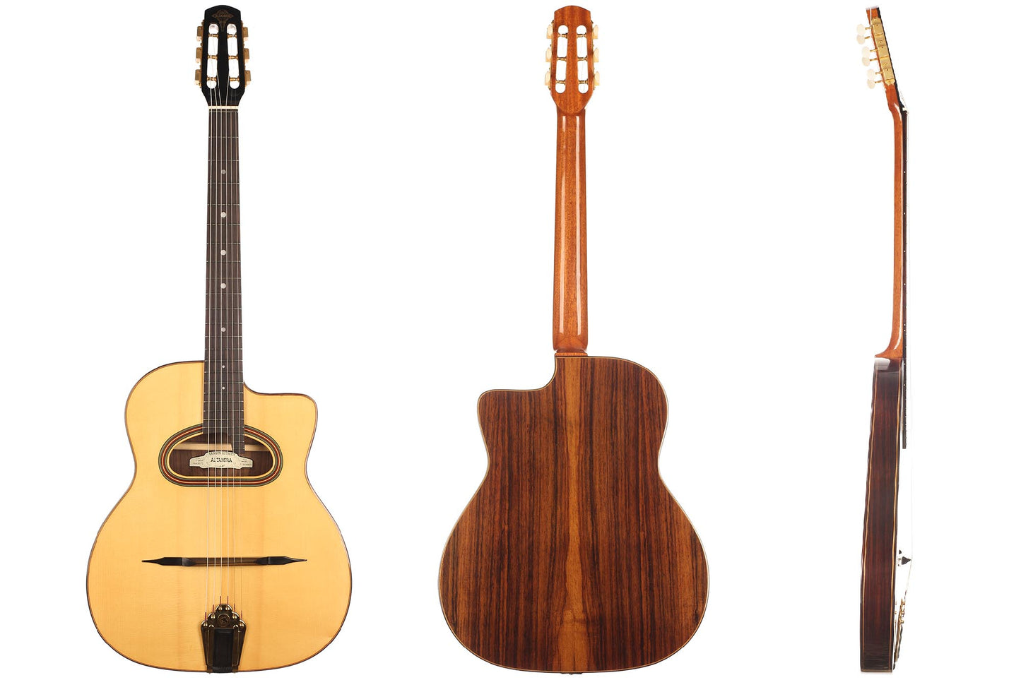 Altamira hat sich einen Namen als eine der interessantesten Marken für Gypsy Jazz Gitarren gemacht. Mit dem Fokus auf erstklassige Hölzer und authentischen Klang bieten Altamira-Gitarren ein hervorragendes Preis-Leistungs-Verhältnis. Die in Asien unter der Leitung von Hanson Yao, der in der renommierten Rodriguez-Werkstatt in Spanien ausgebildet wurde, gebauten Instrumente werden sowohl von professionellen als auch von passionierten Gypsy-Jazz-Gitarristen auf der ganzen Welt gespielt.
