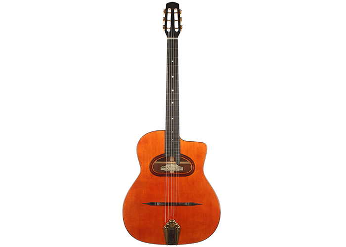 The M10D Antique is a fine quality Selmer copy from Altamira with the typical oval soundhole (grande bouche). Due to high quality materials of this solid wood model, this guitar has an authentic dry and crisp tone. Also the Altamiras have a more modern, ergonomic C shaped neck, that makes playing nice and comfortable. The top is made of solid spruce. Back and sides are made of solid mahogany. Hardshell case is included.