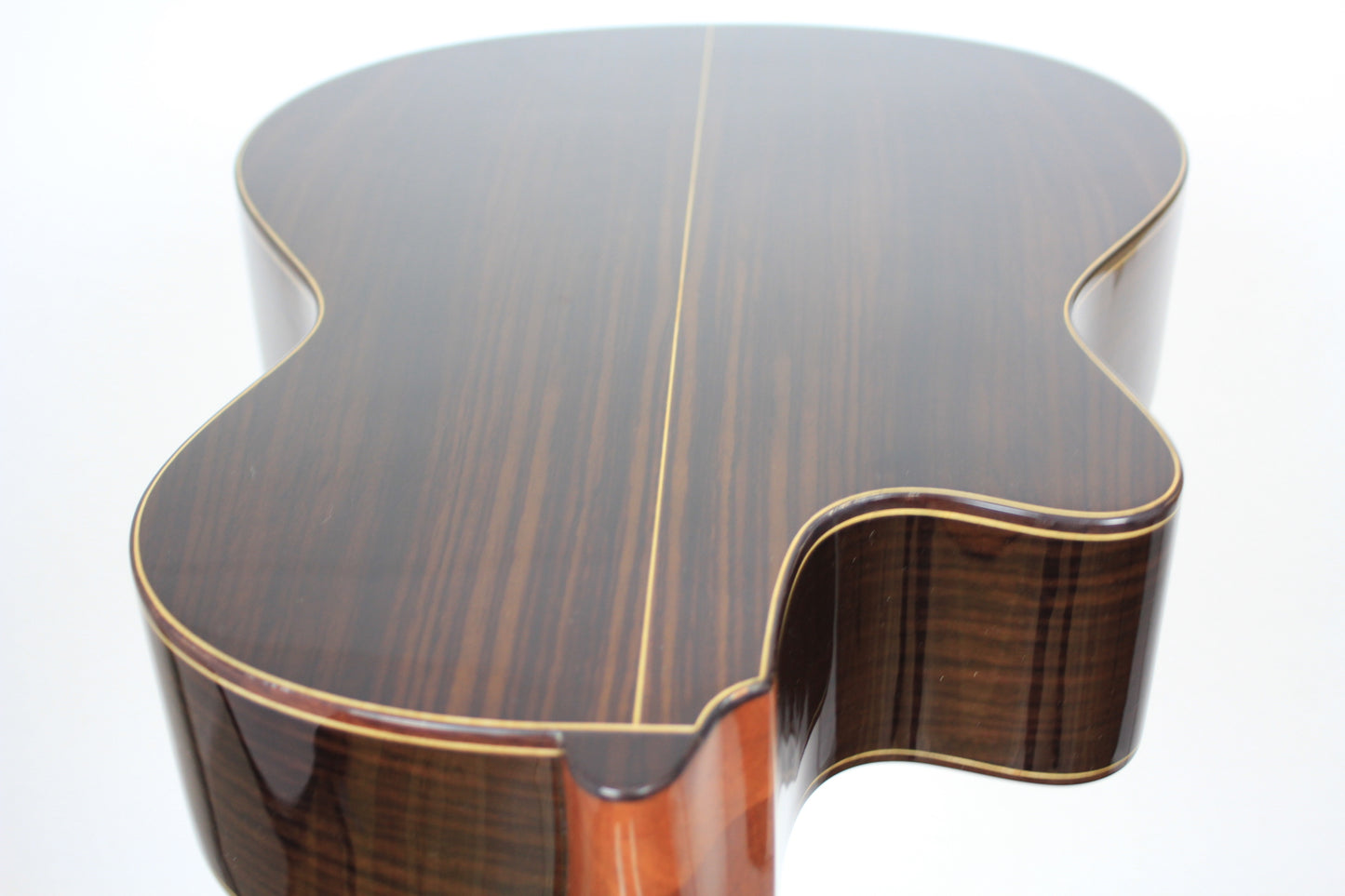 Preis auf AnfrageGitarrenbauer: Fritz OberBaujahr: 2019Decke: SpruceBoden und Zargen: Brazilian rosewood (CITES certified)Deckenoberfläche: French polishKorpusoberfläche: French polishLuftresonanz: C sharp / DGewicht (g): 1345Mechaniken: Klaus SchellerZustand: Excellent -