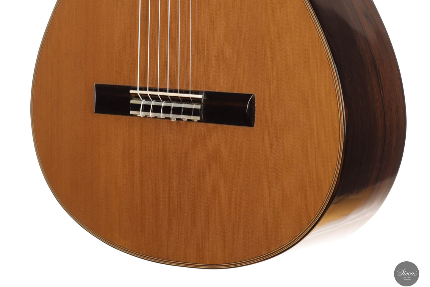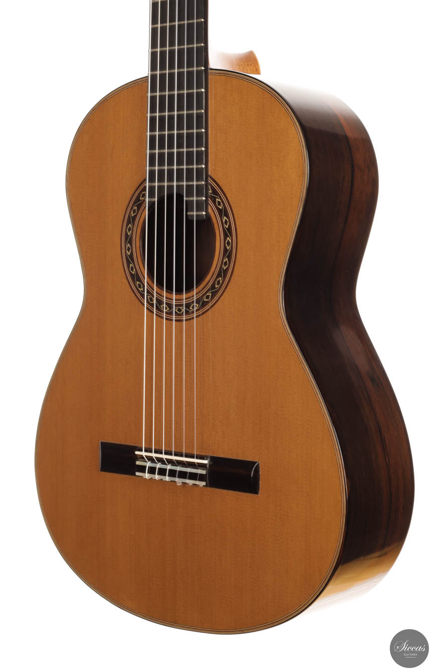 Diese neu gefertigte Gitarre von Ana Espinosa verkörpert die reiche Tradition der Granada-Gitarrenbau-Schule und bietet dank ihrer Zederndecke einen wunderschön warmen und runden Klang. Das Instrument liefert einen kraftvollen Klang mit klaren, direkten Bässen und einer starken Mittelstimme, was es vielseitig für jede Aufführungssituation macht. Ihr traditionelles spanisches Design und die außergewöhnliche Handwerkskunst stellen sicher, dass sie nicht nur das Erbe der Granada-Gitarrenbaukunst ehrt, sondern auch die Projektion und Klarheit bietet, die für moderne Spielanforderungen benötigt wird.