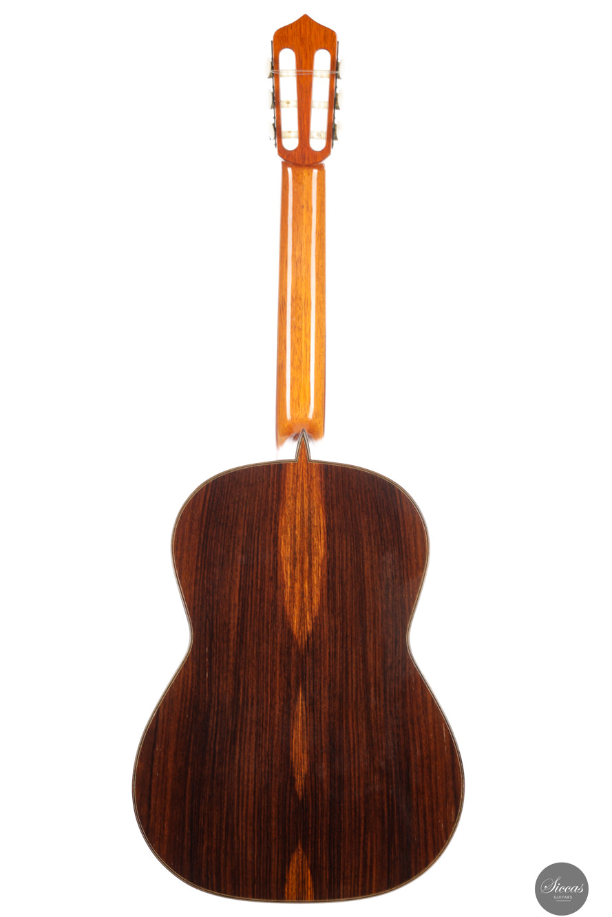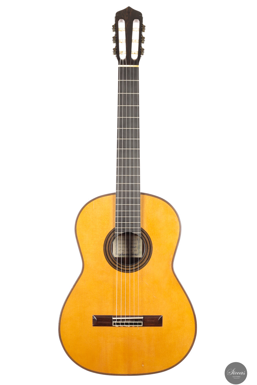 Diese wunderschöne Gitarre aus dem Jahr 1994 ist ein sehr gelungenes Beispiel des frühen Coclea-Modells von Andrea Tacchi. Schon damals zeigt sich, dass Andrea von Anfang an großen Erfolg bei der Entwicklung dieses Modells hatte. Die Gitarre weist alle typischen Merkmale seiner Instrumente auf. Durch ihr Alter ist sie hervorragend eingespielt und reagiert sehr schnell auf den Anschlag der rechten Hand. Die Höhen sind klar, gleichmäßig und haben einen samtigen Charakter. Die Zargen sind innen mit Zypresse gedoppelt, was wesentlich zur hervorragenden Projektion der Gitarre beiträgt. Die Gitarre befand sich ihr gesamtes Leben lang im Besitz einer einzigen Person, was ihren besonders gepflegten Zustand unterstreicht.