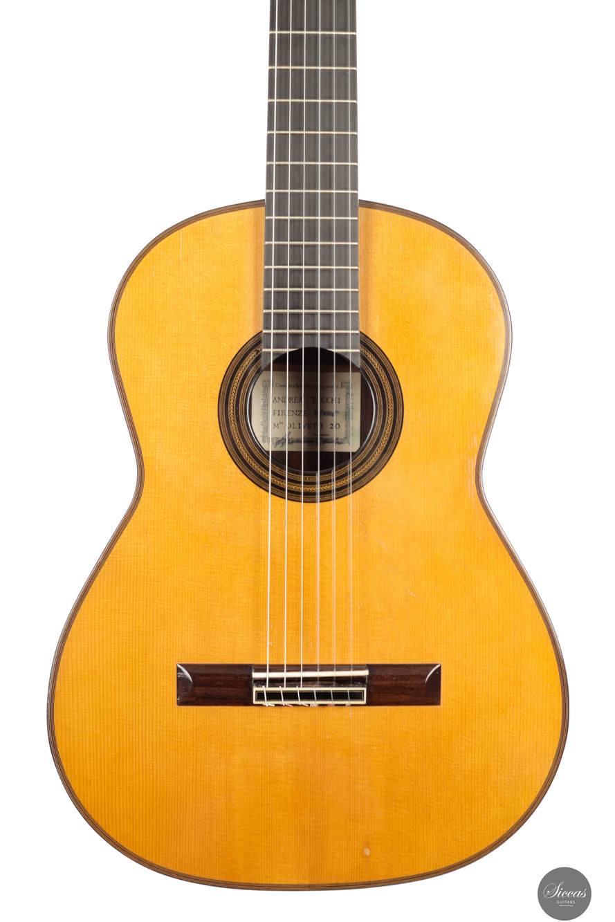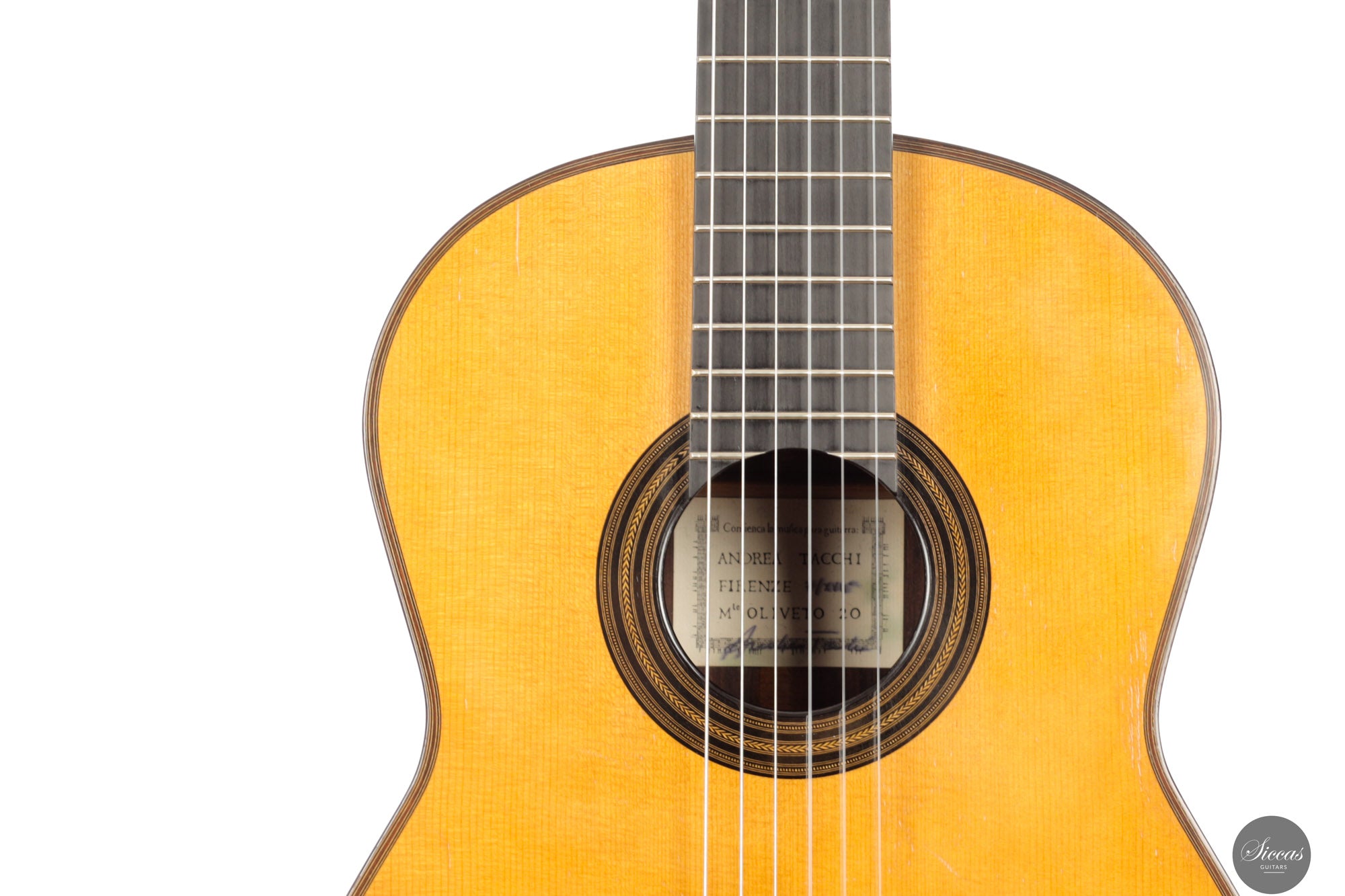 Andrea Tacchi wurde 1956 in Florenz (Italien) geboren, einer Stadt voller blühender Kunsthandwerkswerkstätten und Künstlerateliers. Dieses inspirierende Umfeld und die Begegnung mit dem südamerikanischen Gitarrenbauer Ricardo Brané führten ihn zum Beruf des Gitarrenbauers. In den 80er Jahren verfeinerte er sein Handwerk und seinen künstlerischen Geschmack im engen Austausch mit Robert Bouchet und Daniel Friederich. Später lernte er weiter von bedeutenden Gitarrenbauern wie Ignacio Fleta, José Romanillos und Robert Ruck, wobei er in die USA, nach England und Spanien reiste. Andrea Tacchis außergewöhnliche Meisterschaft wurde früh und verdientermaßen anerkannt. Bereits 1985 erhielt er den ersten Preis beim prestigeträchtigen internationalen Gitarrenbauwettbewerb, dem „Concours International des Facteurs de Guitare“, organisiert von Robert Vidal von Radio France. Von da an führte die weltweite Anerkennung durch Gitarristen und Sammler zu einer der umfangreichsten Wartelisten in der Geschichte des Gitarrenbaus. Die Liste legendärer Gitarristen, renommierter Professoren und junger Konzertmusiker, die Andrea Tacchi-Gitarren spielen, ist lang. Einige von ihnen sind: Carlo Marchione, Carlotta Dalia, Antigoni Goni, Renata Arlotti, Filomena Moretti, Flavio Cucchi, Robert Gruca, Colin Davin, Minoru Inagaki und Marcelo Kayath.