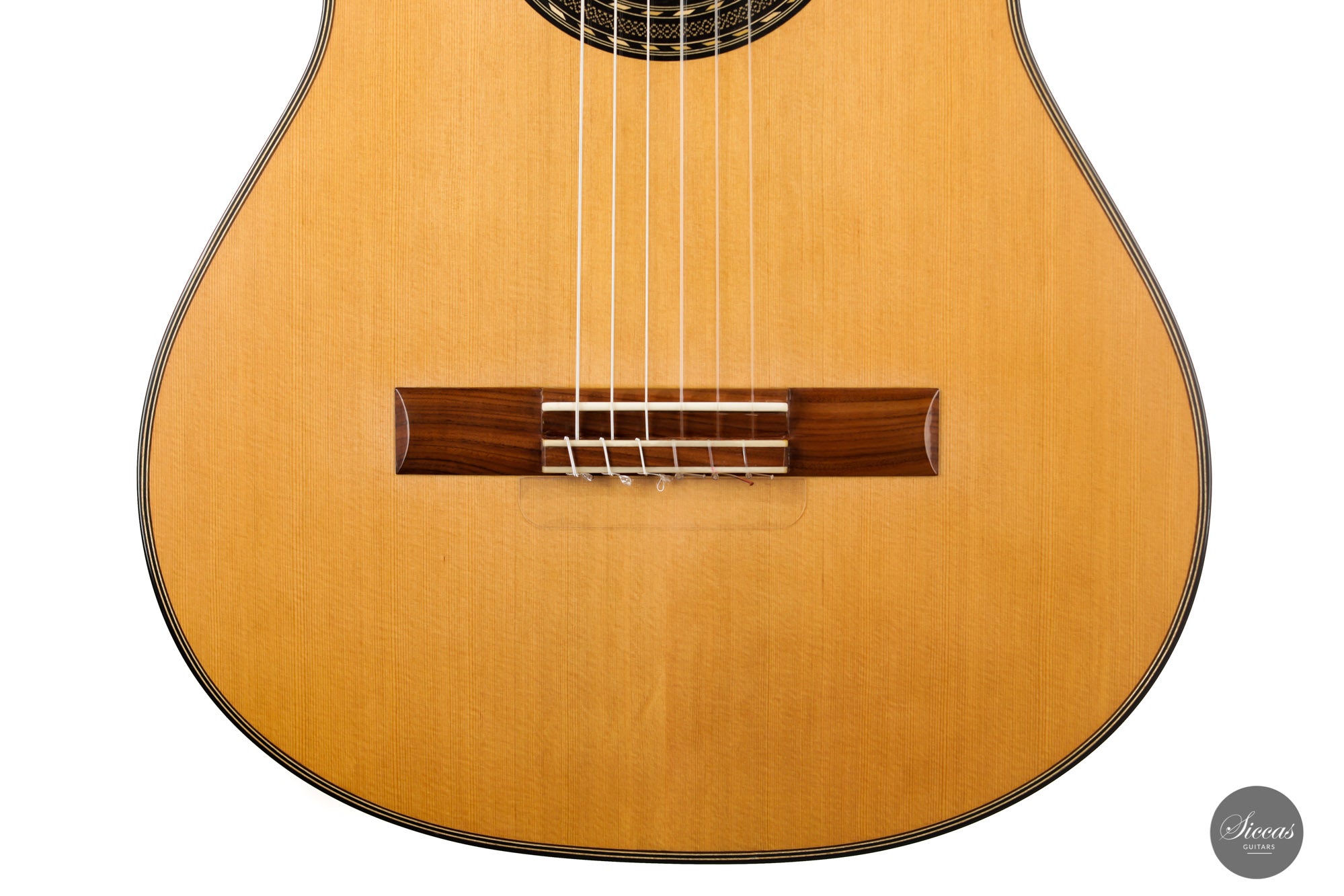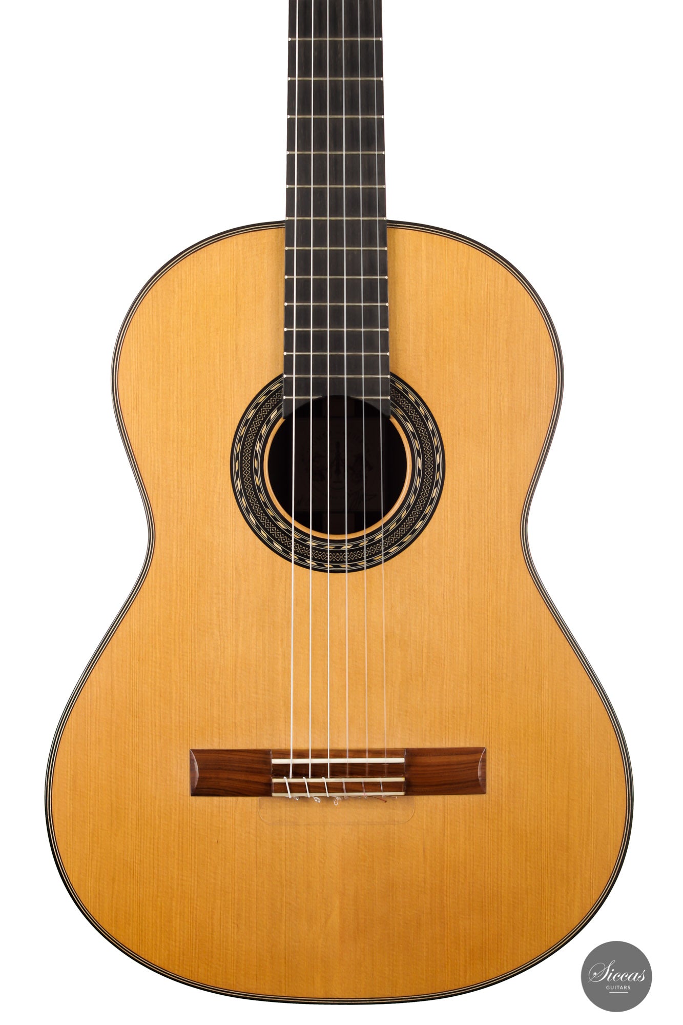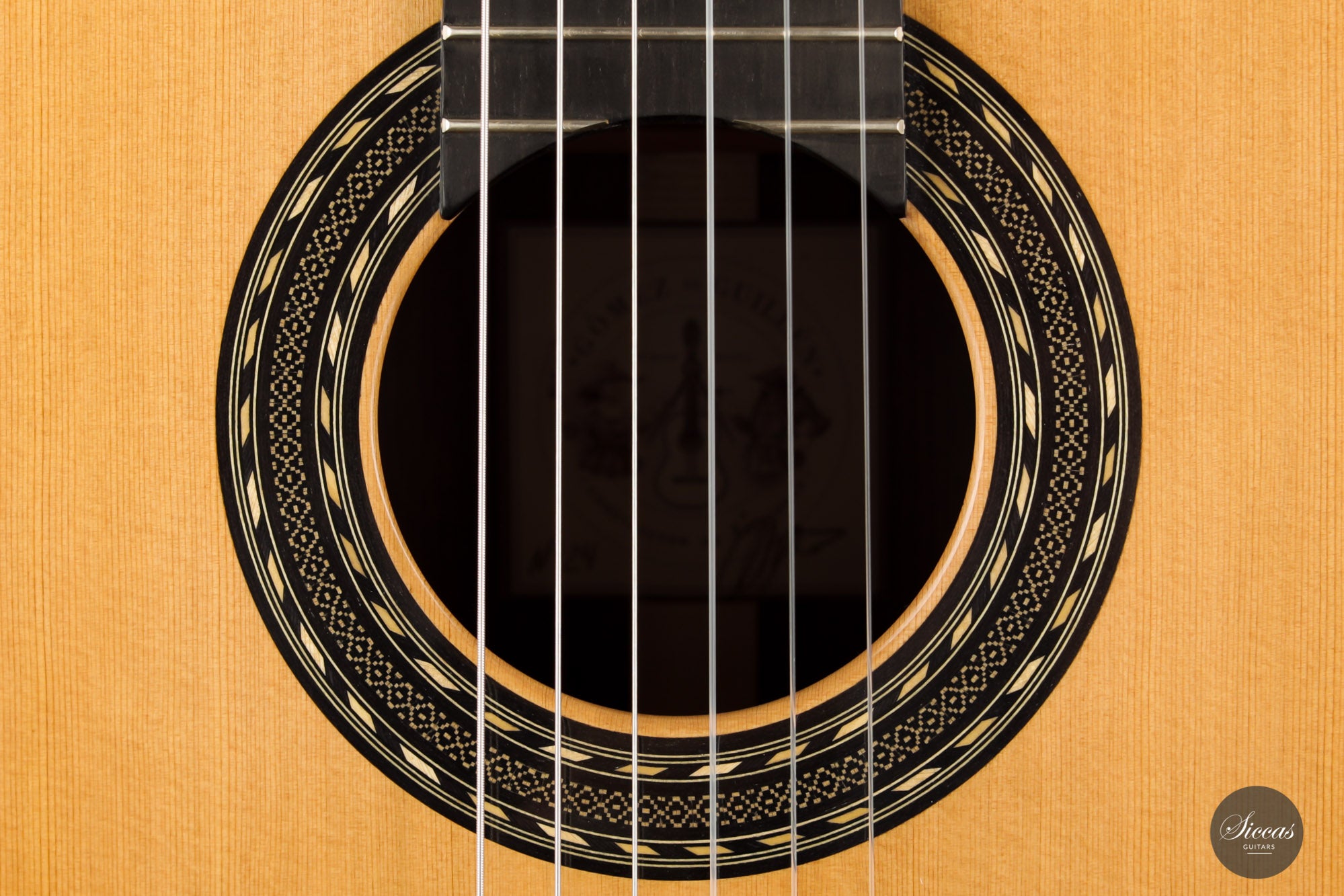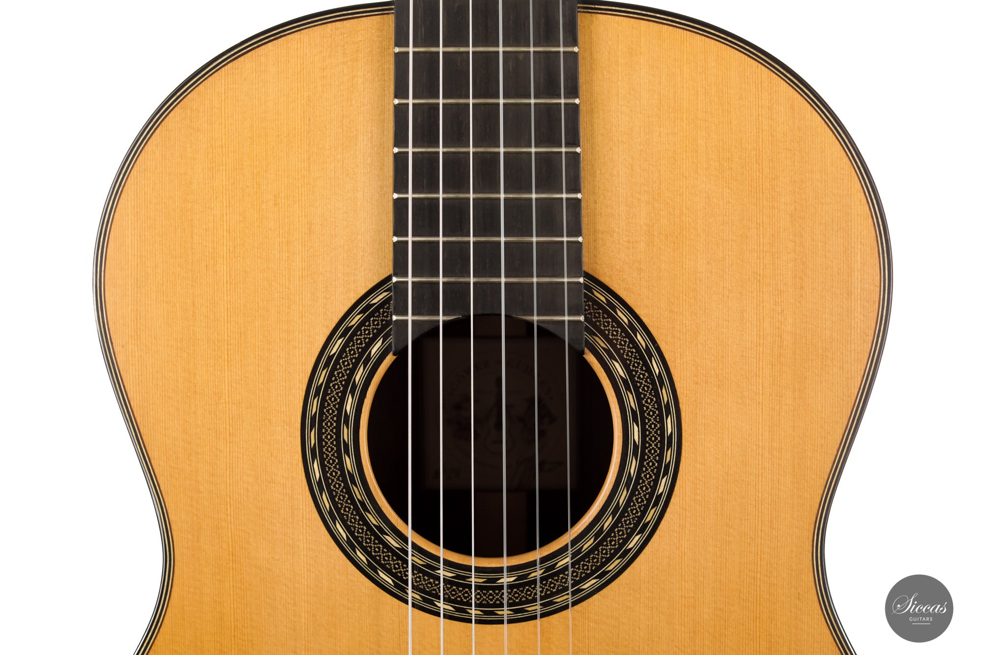 This traditionally built guitar with cedar top is a wonderful surprise. It is the first guitar by Ángel that we offer, and due to its high level of quality, it is a great all-around match for our assortment. It is wonderfully responsive, offering crystal clear trebles paired with warm and mature basses, and is an easy-to-play instrument suitable for both a professional guitarist and an avid enthusiast. The sense of great responsiveness that this guitar provides, along with the sonorous tones are truly inspiring for the guitarist and allow for fantastic dynamics. Ángel Gómez de Guillén guitars are a great discovery that can be purchased at an attractive price.