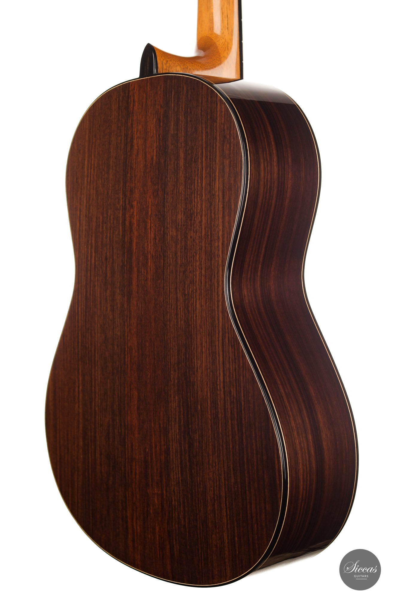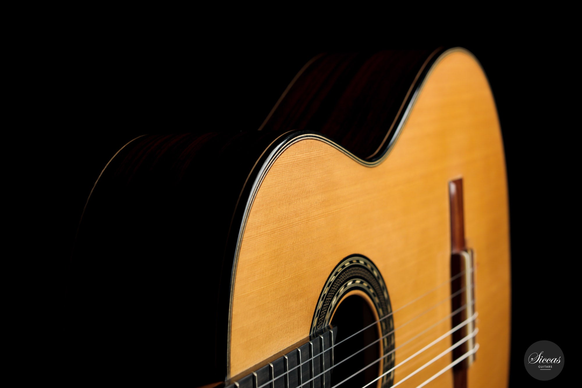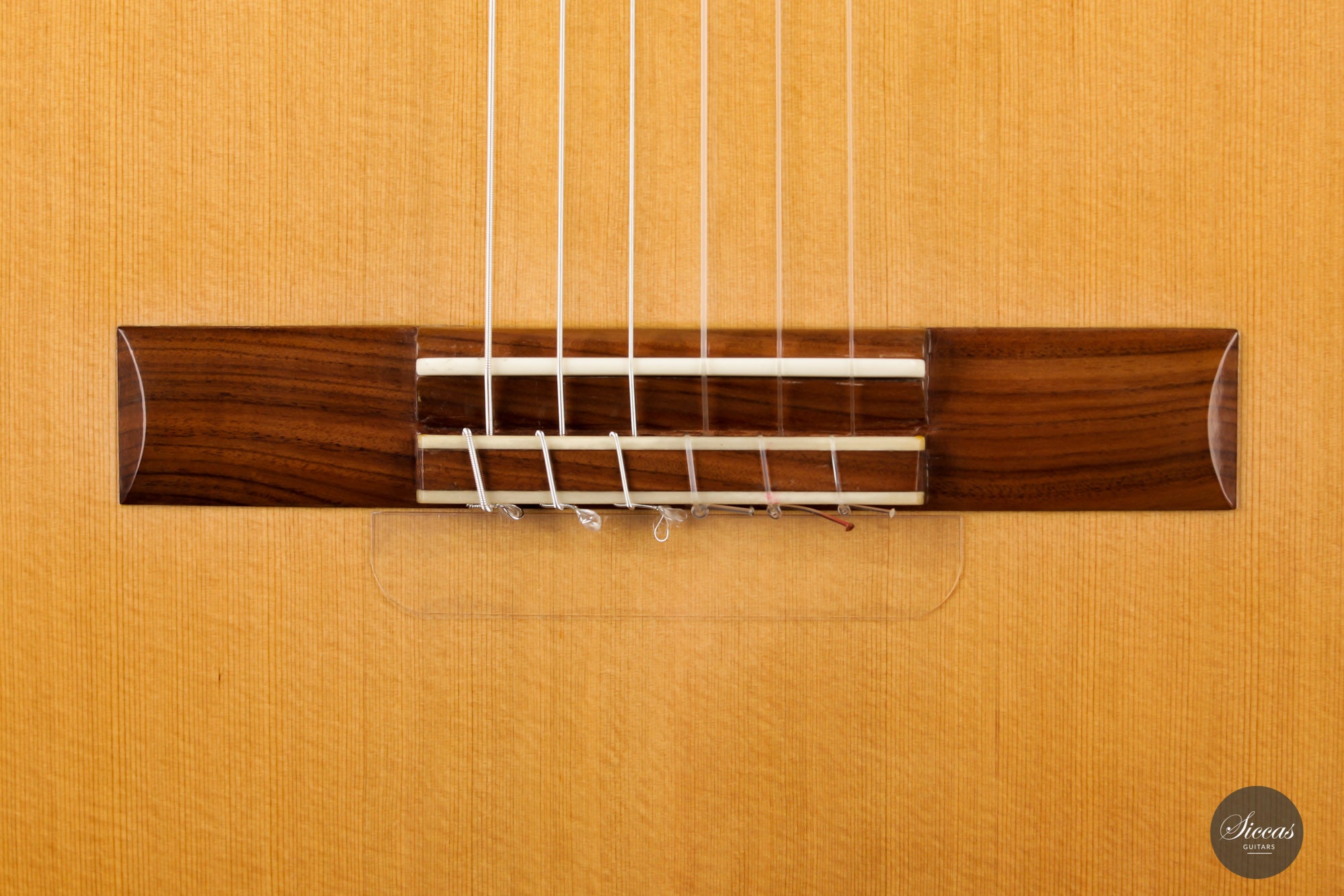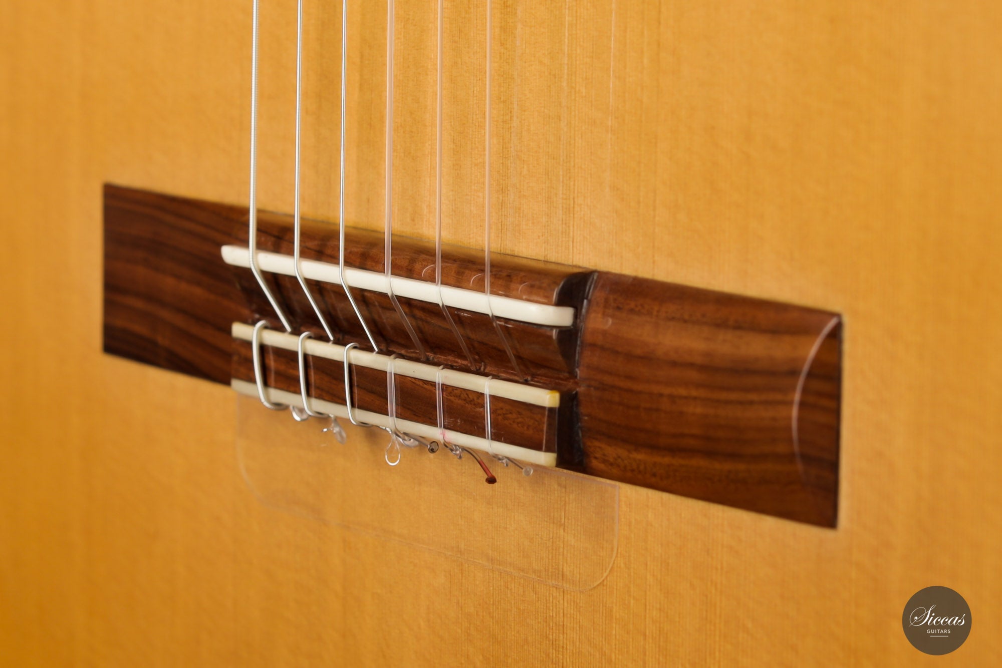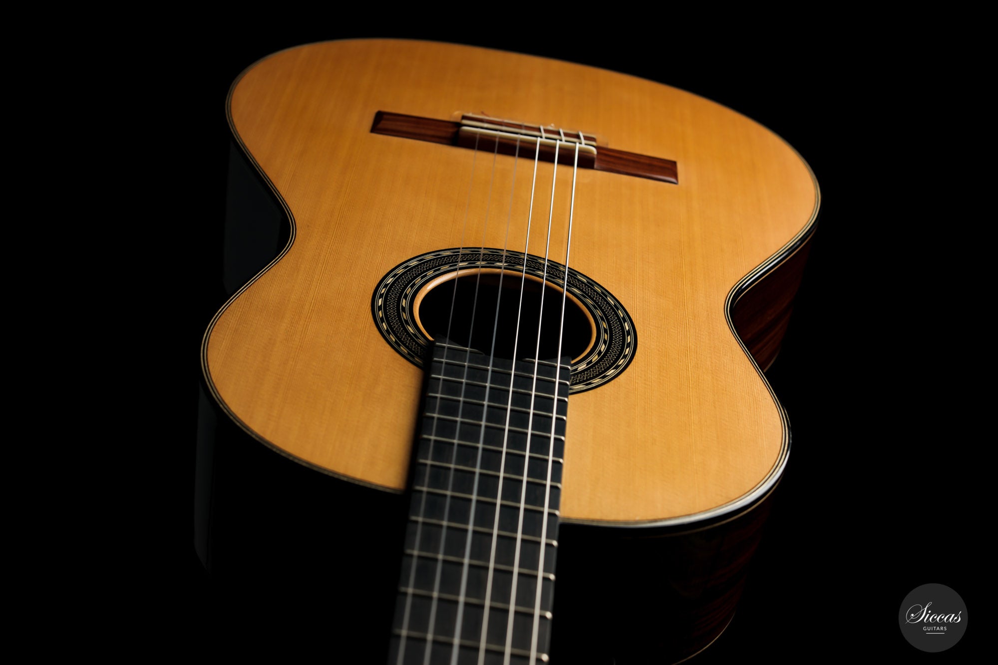 This traditionally built guitar with cedar top is a wonderful surprise. It is the first guitar by Ángel that we offer, and due to its high level of quality, it is a great all-around match for our assortment. It is wonderfully responsive, offering crystal clear trebles paired with warm and mature basses, and is an easy-to-play instrument suitable for both a professional guitarist and an avid enthusiast. The sense of great responsiveness that this guitar provides, along with the sonorous tones are truly inspiring for the guitarist and allow for fantastic dynamics. Ángel Gómez de Guillén guitars are a great discovery that can be purchased at an attractive price.