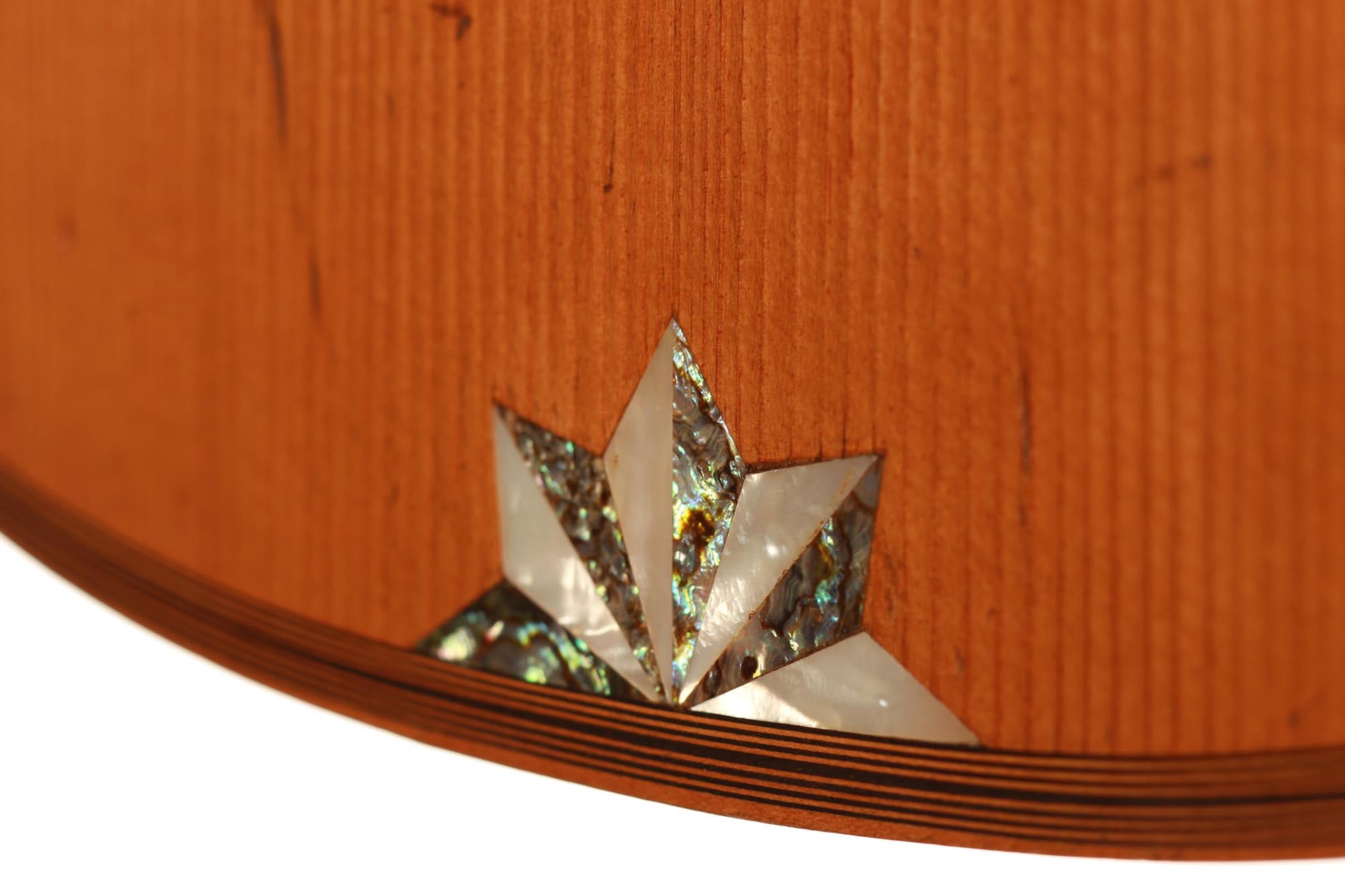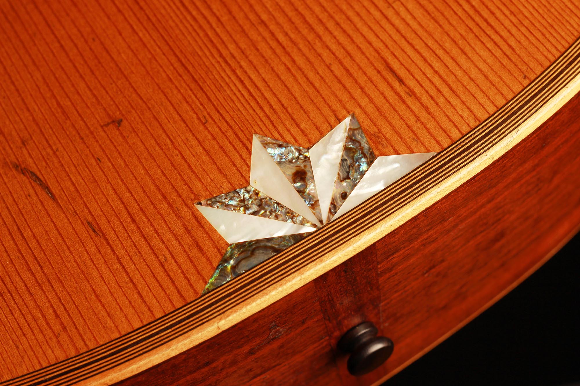 Diese schöne romantische Gitarre wurde um 1910 in Markneukirchen, Deutschland, gebaut. Sie ist besonders inspiriert von den Gitarren von Karl August Jacob (1846-1918), dem Gründer der berühmten Instrumentenbauer-Familie Jacob, von der Richard Jacob "Weissgerber" der bekannteste ist. Die Fichtendecke ist sehr schön verziert, mit einer rosenförmigen Perlmutteinlage sowie einer zarten Rosette, und der Korpus ist aus indischem Palisanderholz gefertigt. Die Decke ist in perfektem Zustand und lediglich am dem Boden befinden sich einige restaurierte Risse, so dass die Gitarre sofort gespielt werden kann.