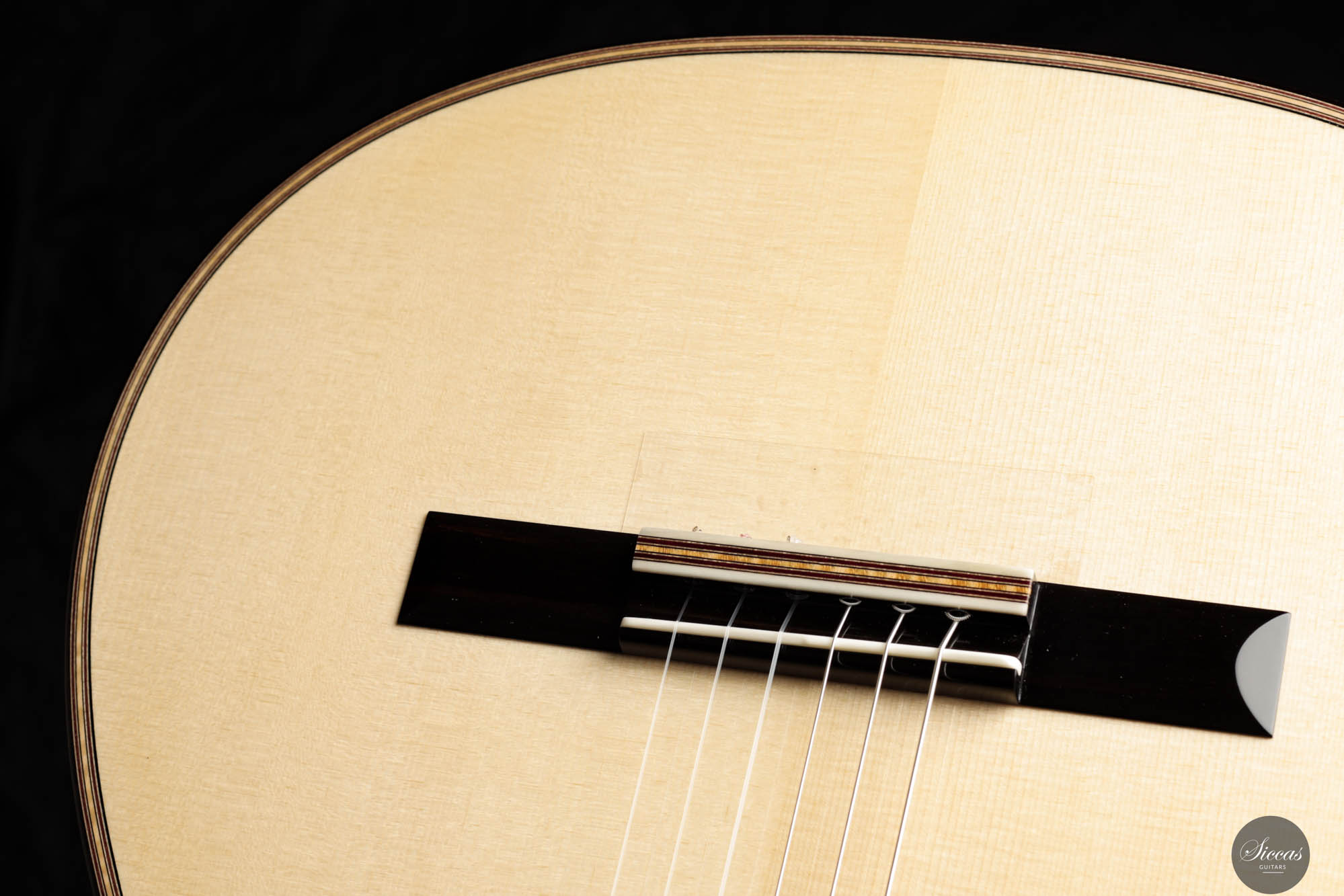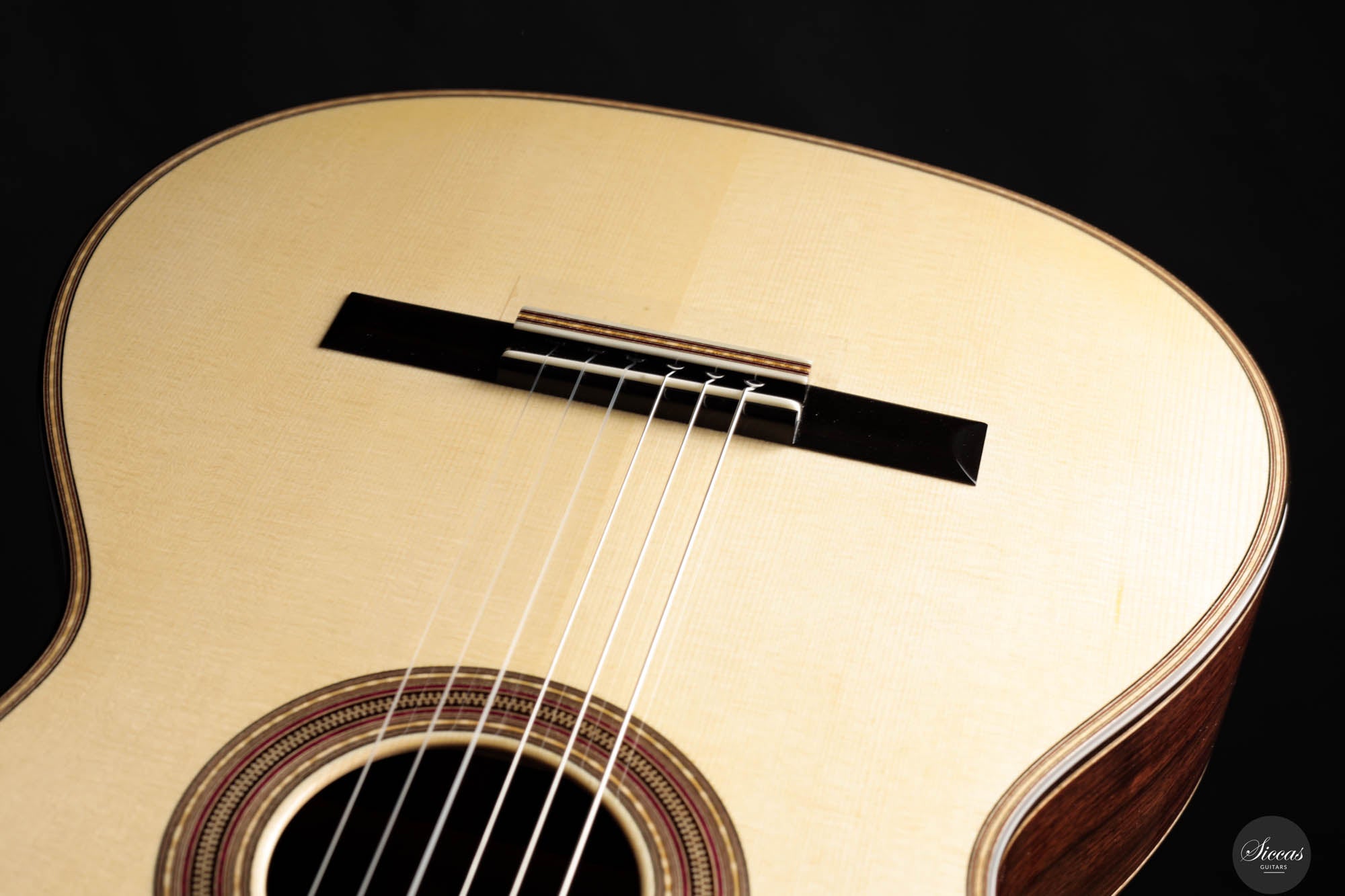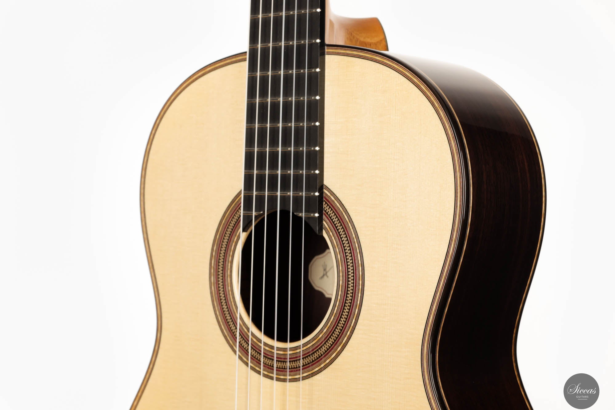 Mit einem traditionellen 7-Fächer-Bracing-Design konzipiert, ist die Antonio Marchese Gitarre Nr. 106 darauf ausgelegt, Marcheses Ideal akustischer Perfektion zu erreichen, mit einer Hauptresonanz im F/F#-Bereich. Diese Designwahl resultiert in einer reichen Mischung aus tiefen, dunklen Bassklängen und klaren, melodischen Höhen, die ein ausgewogenes und ausdrucksstarkes Klangspektrum bieten. Diese Gitarre ist darauf ausgelegt, den nuancierten Anforderungen verschiedener Spielstile gerecht zu werden und bietet ein vielseitiges Werkzeug für Musiker, die ein reiches und dynamisches Hörerlebnis suchen. Die Kombination aus außergewöhnlicher Bauqualität, innovativem Design und überlegener tonaler Balance macht die Antonio Marchese Gitarre Nr. 106 zu einer ausgezeichneten Wahl für Gitarristen, die ihren musikalischen Ausdruck bereichern möchten, und verstärkt Antonio Marcheses Ruf als eine führende Figur in der Kunst des Gitarrenbaus.