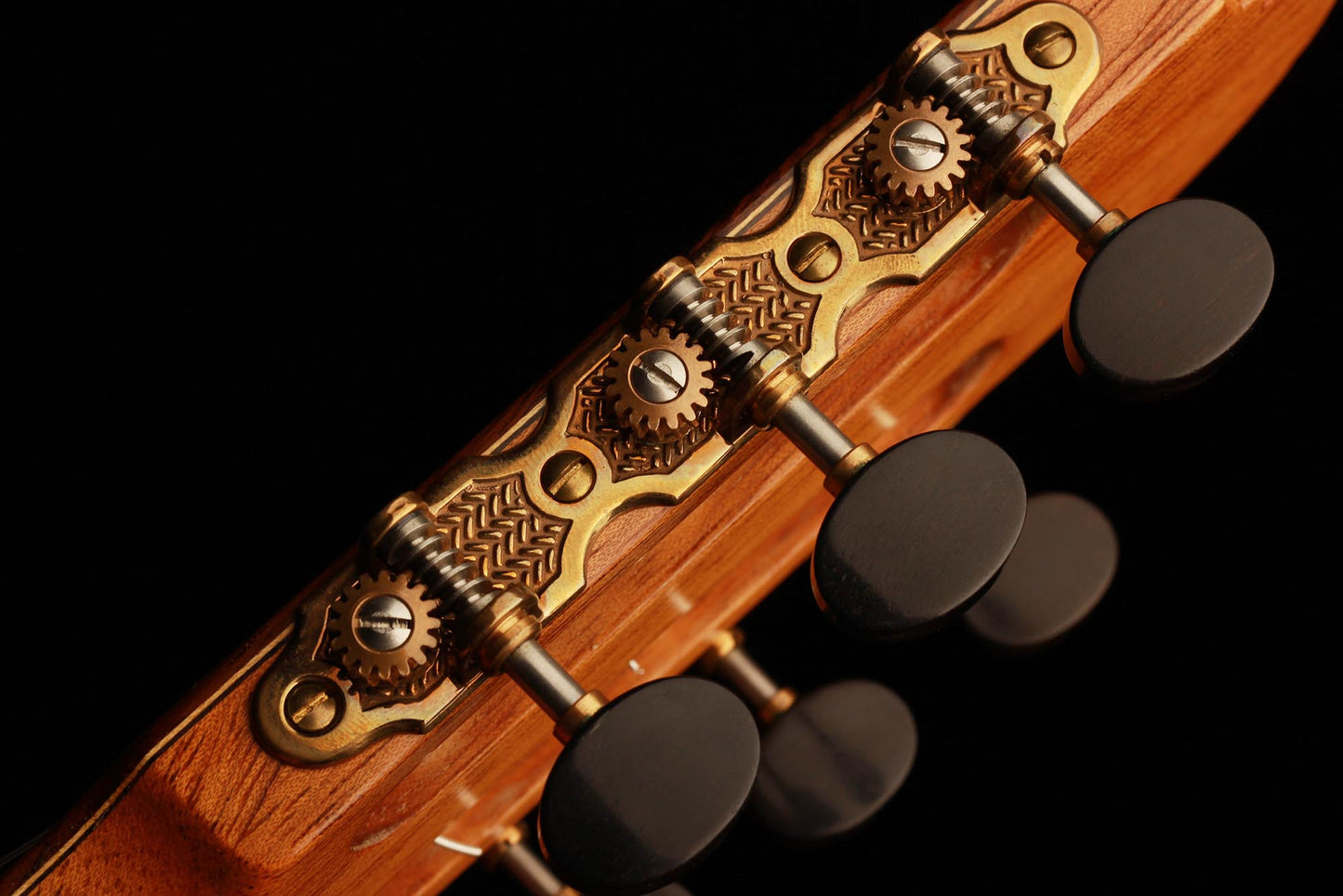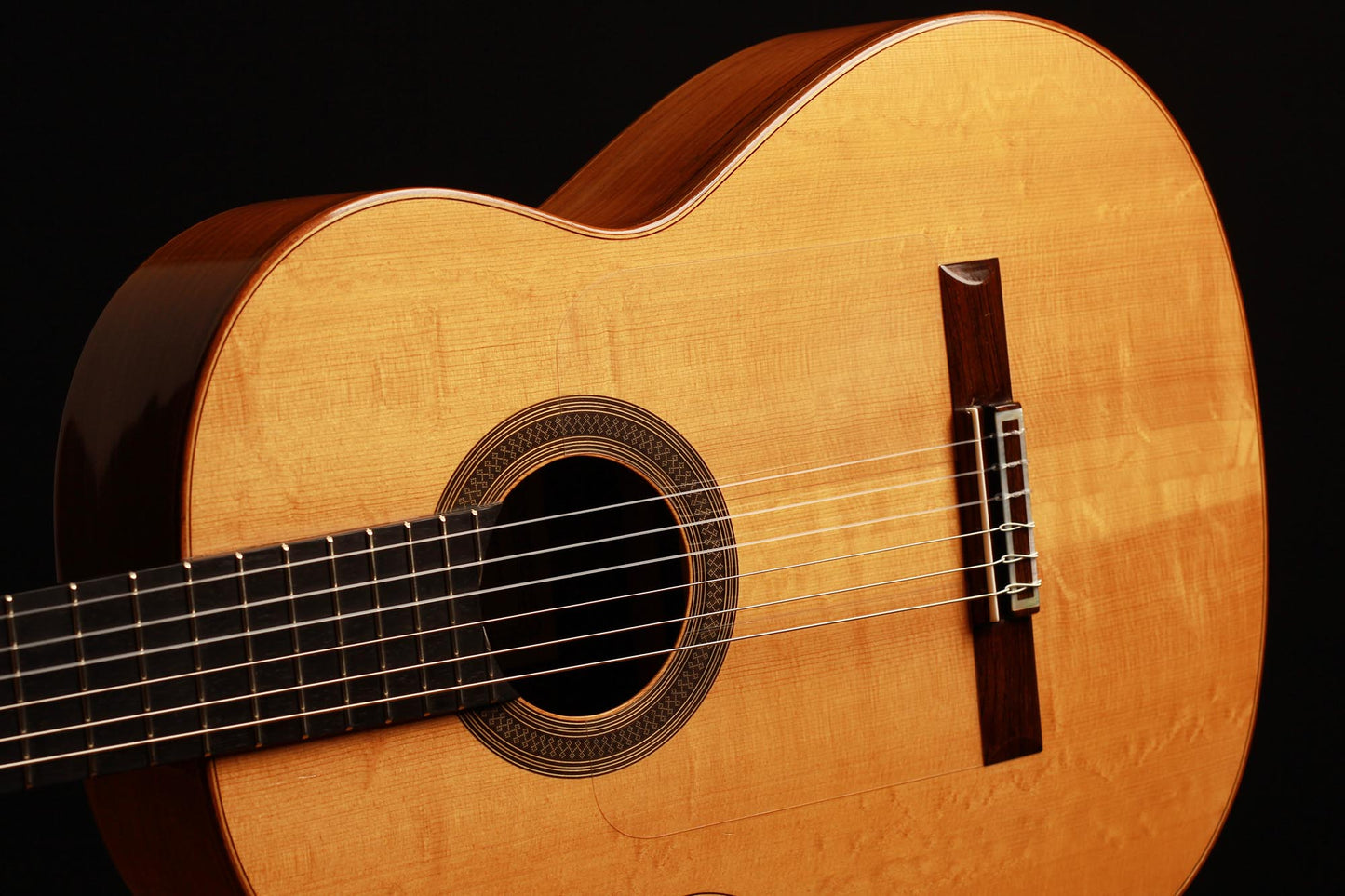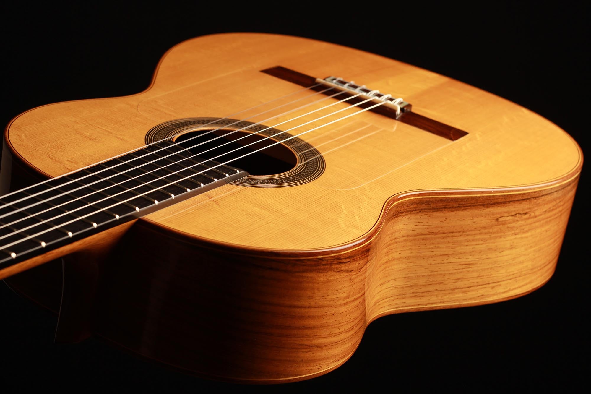 It is an open and very expressive instrument, enriched by the last twenty years of intensive playing. Abundant sympathetic resonances please the ears and give an extra dimension to the tone. The bass strings have a very Spanish tone with a great reactivity. On the other hand, the trebles are very sensitive and singing. It is a crystalline sounding guitar that can be played effortlessly and will seduce many guitarists for sure.