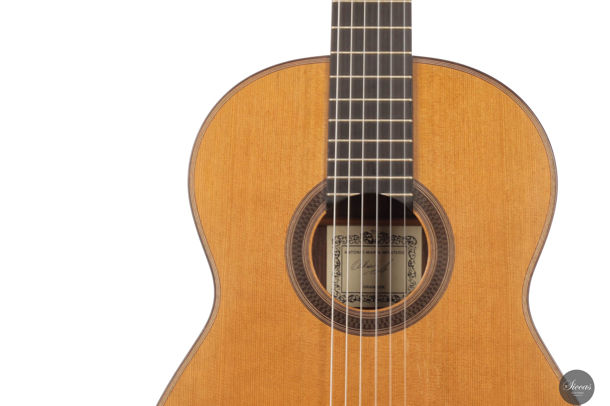 Antonio Marín Montero wurde 1933 in Granada geboren. Im Jahr 1957 begann er in der Werkstatt von Meister Pérez zu arbeiten, und zwei Jahre später, 1959, riet ihm sein Vater, Eduardo Ferrer zu besuchen, für den er bis zur Eröffnung seiner eigenen Werkstatt tätig war. Ein Meilenstein in Antonio Marin Monteros Karriere war seine Begegnung mit dem französischen Gitarrenbauer Robert Bouchet in den 1970er Jahren. Die beiden wurden Freunde und bauten gemeinsam mehrere Gitarren. Die Zusammenführung von Marin Monteros spanischem Bausystem und Robert Bouchets ganz spezieller Beleistung war eine große Inspirationsquelle für Antonio Marin Montero, und er baute während seiner gesamten Karriere ein Modell mit einer “ Robert Bouchet “ Beleistung. Heute zählt Antonio Marin Montero zu den gefragtesten spanischen Gitarrenbauern.