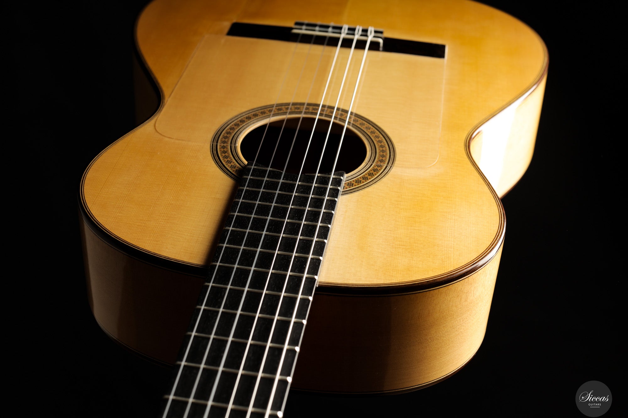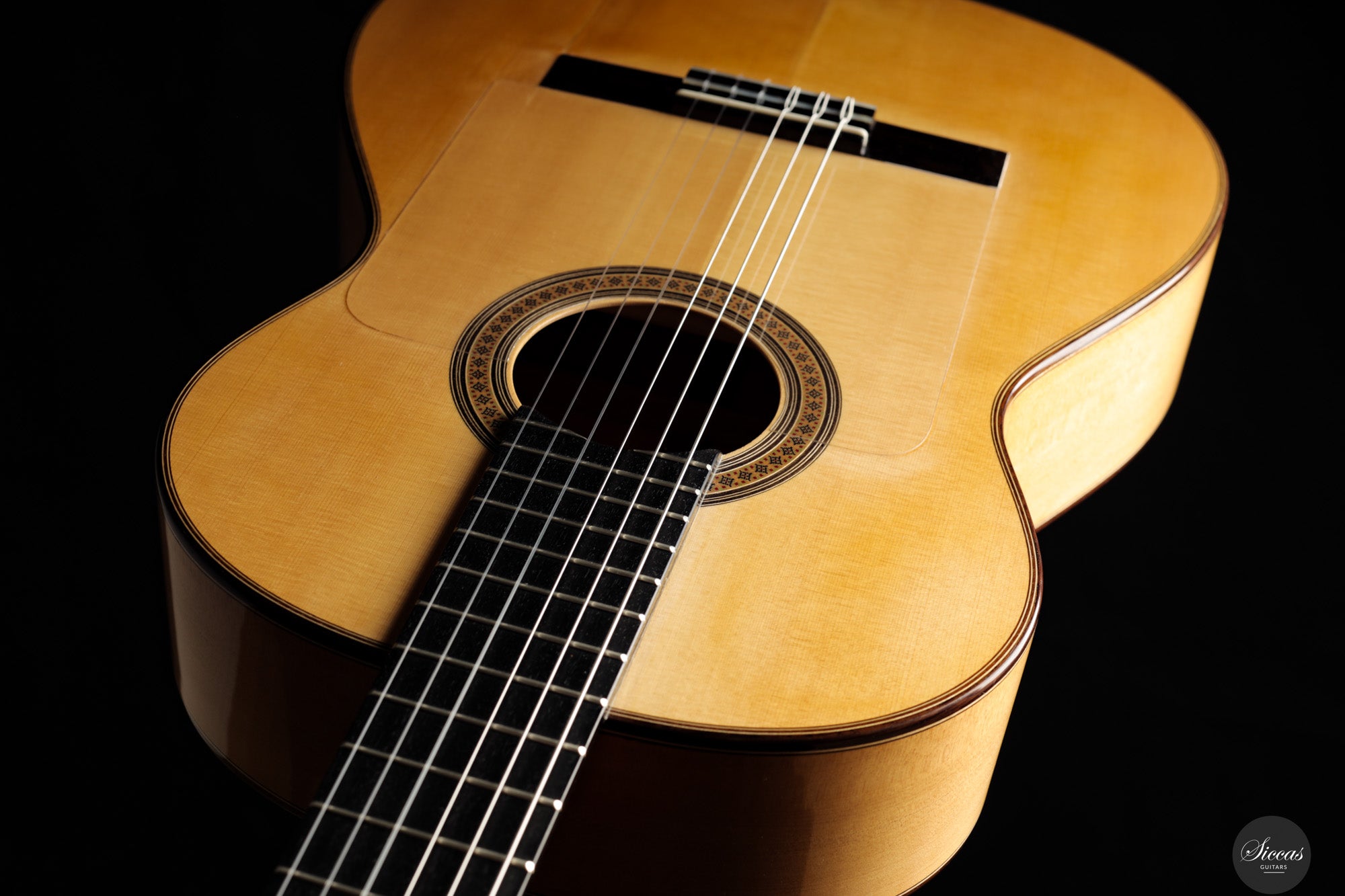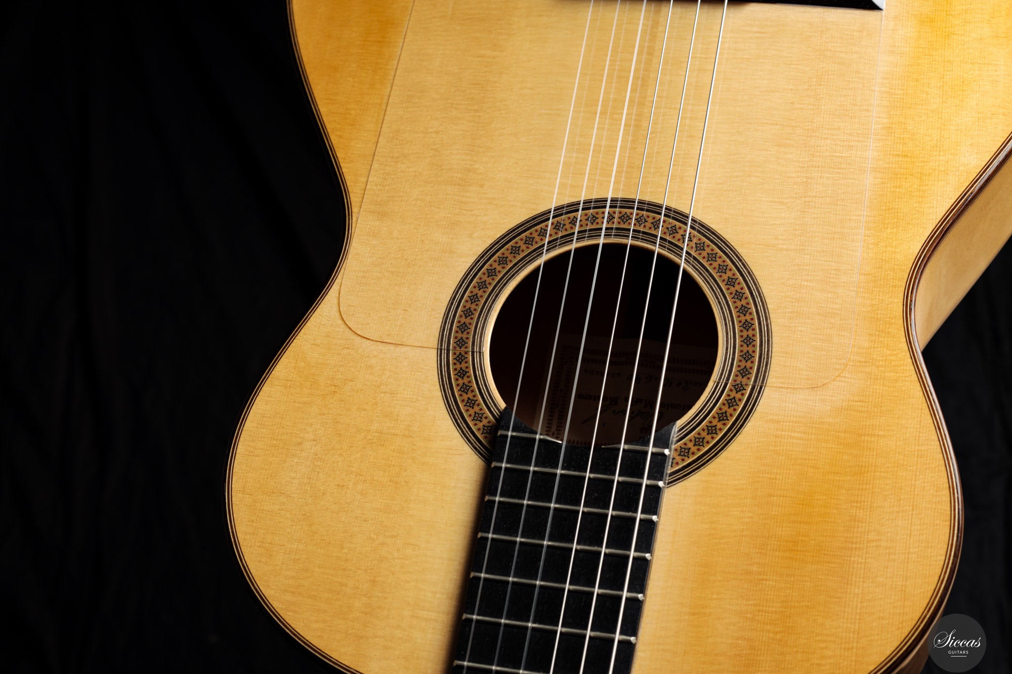 Antonio Marín Montero vereint in dieser 2012 gebauten Fichte-Zypresse-Gitarre klare Ansprache, lange Tragfähigkeit und klangliche Balance zwischen klassischem und flamenco-orientiertem Spiel.