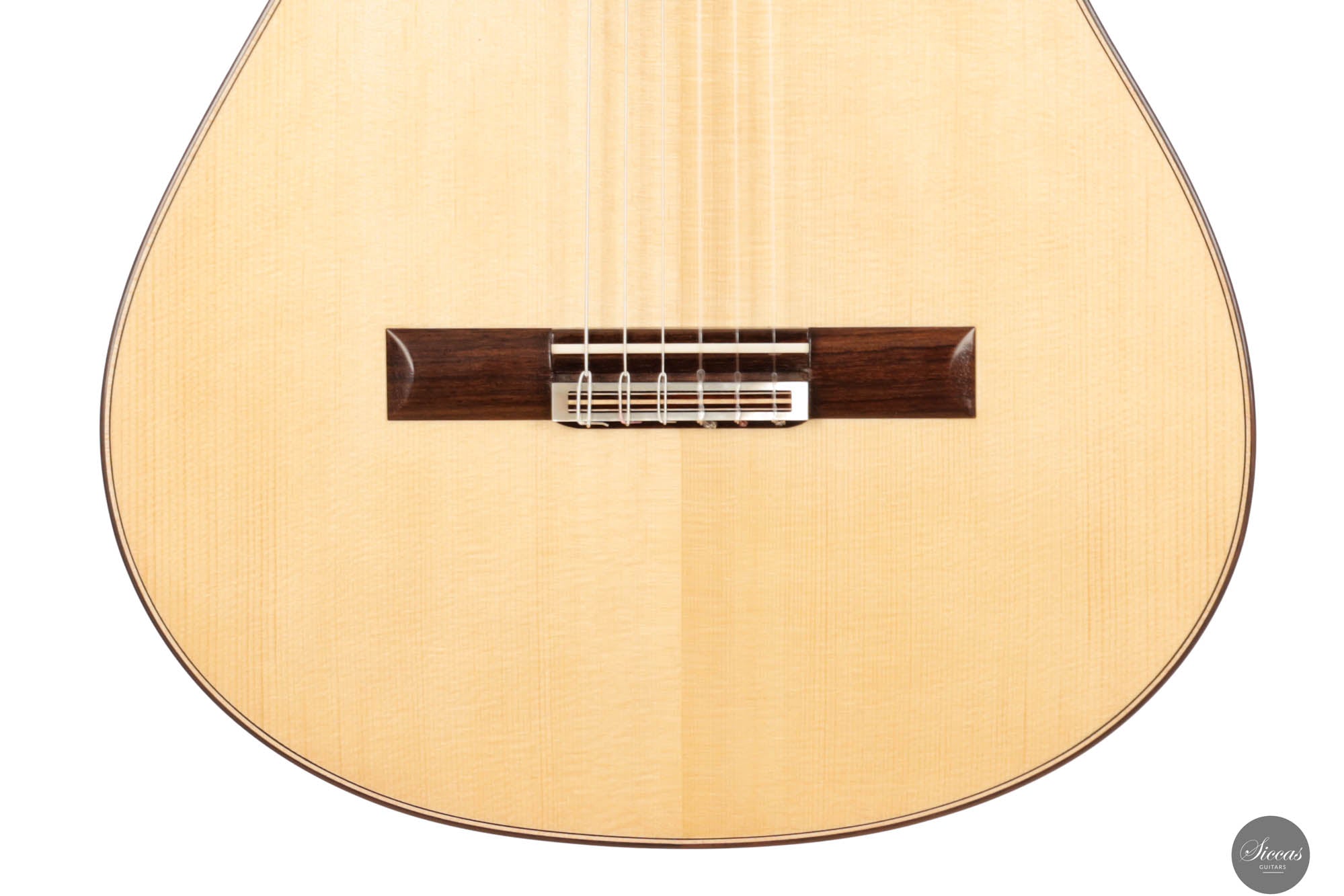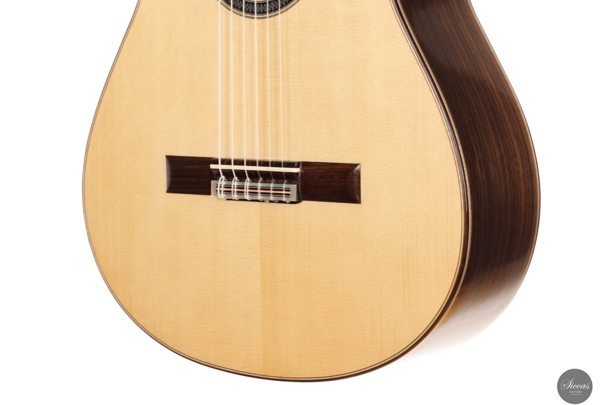 Diese wunderschön gearbeitete Gitarre mit ihrer Fichtendecke strahlt einen einzigartigen Charakter aus, der sie von anderen abhebt. Sie erfüllt alle Standards einer erstklassigen spanischen Gitarre, bietet aber auch einen zusätzlichen Charme, der sie absolut angenehm zu spielen macht. Der Rücken und die Seiten aus indischem Palisander verleihen ein Gefühl von Dichte und Reichhaltigkeit, was den Gesamtklang verbessert. Der schlanke Hals und die präzise Einstellung sorgen dafür, dass sich die linke Hand mühelos bewegt und bieten ein nahtloses und angenehmes Spielerlebnis. Hergestellt in Granada, zeichnet sich diese Gitarre durch einen klaren Ton, lang anhaltenden Sustain und beeindruckende Lautstärke aus, was sie zu einem wirklich außergewöhnlichen Instrument macht.