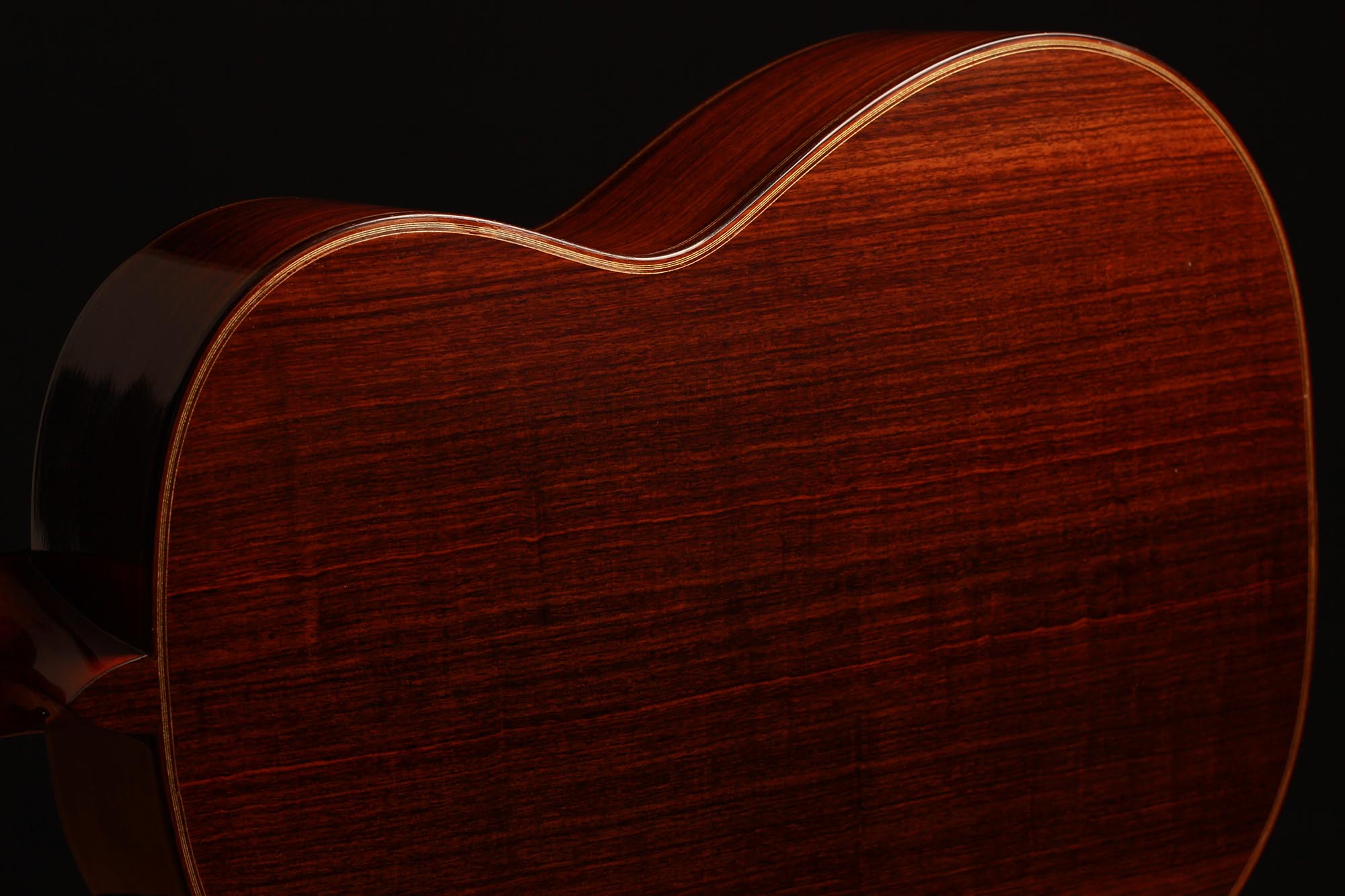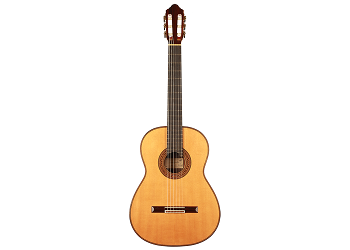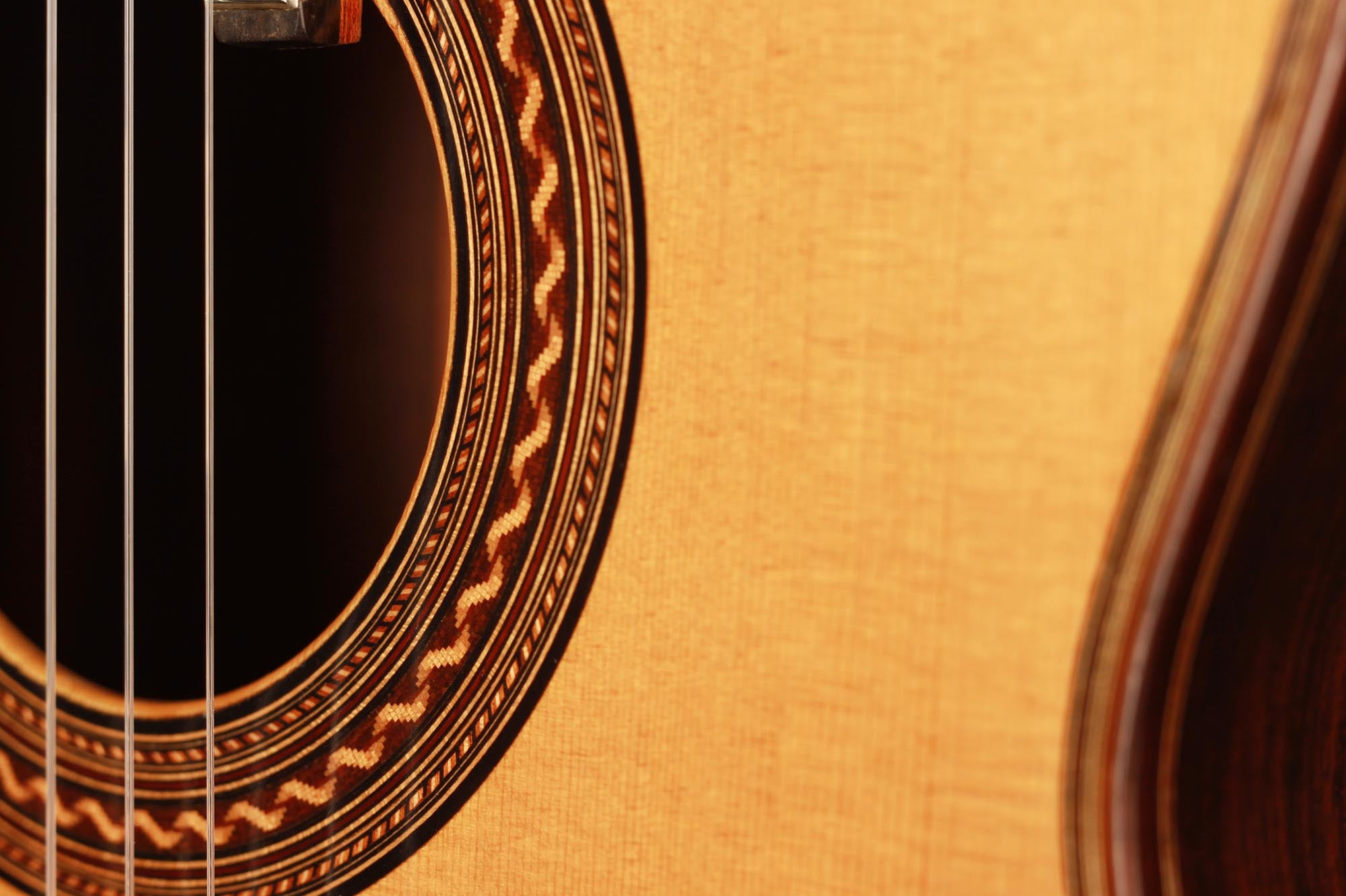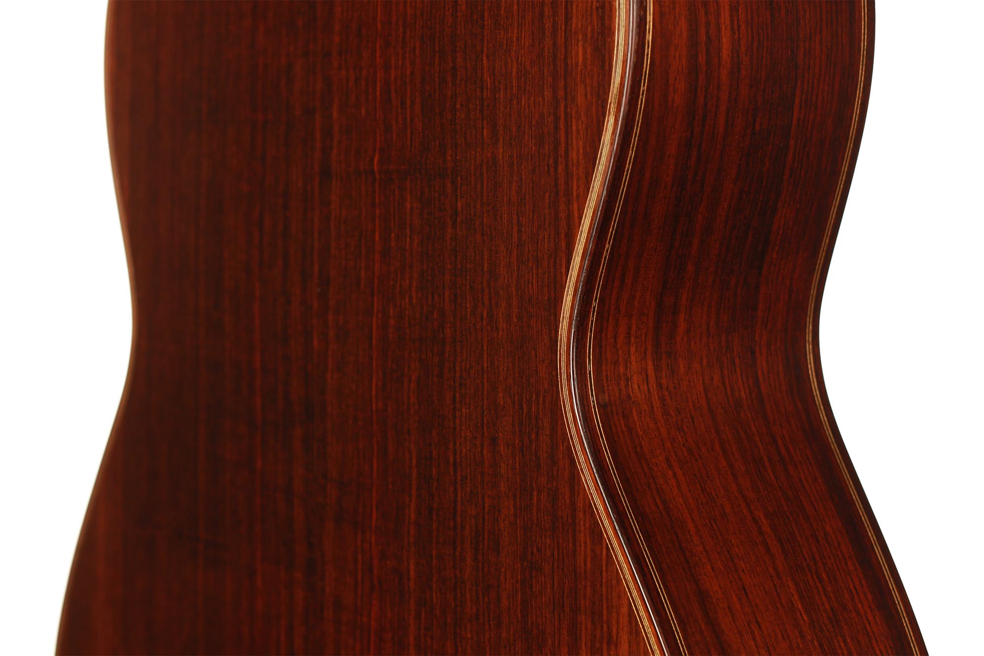 This fantastic 2009 spruce double top guitar is in very good condition. It has a perfectly repaired crack on the top, near the fingerboard, of about 1.5 cm. The rest of the guitar is intact, and only has a few superficial scratches on it. Spruce guitars built by Antonius Müller are quite rare and we must say that this one just sounds incredible. It is astonishing how little effort one needs to put into the right hand when playing this guitar, in order to produce a room-filling tone, so that the player has the feeling to be completely surrounded by the sound of this instrument. The trebles are clear, and the separation of the voices is perfect. In addition, the balance between bass and treble is also consistently even. A really wonderful and inspiring instrument that brings a lot of satisfaction and supports the player in every respect.