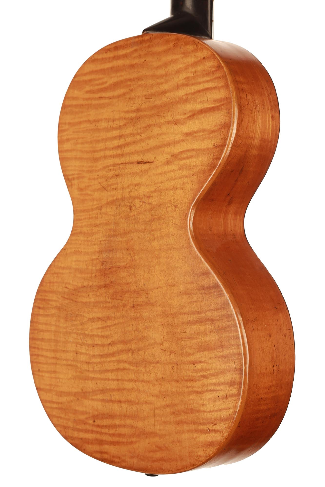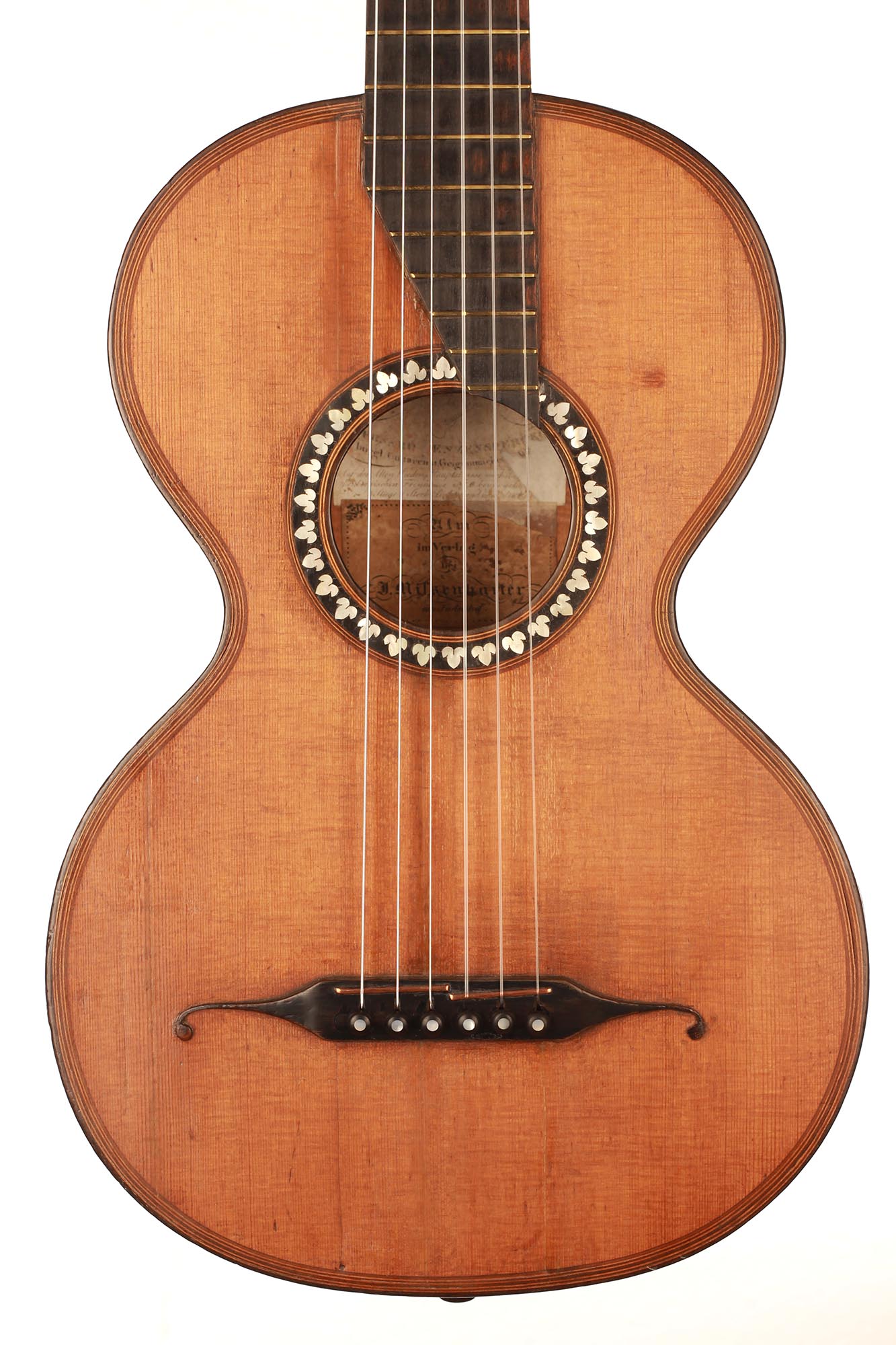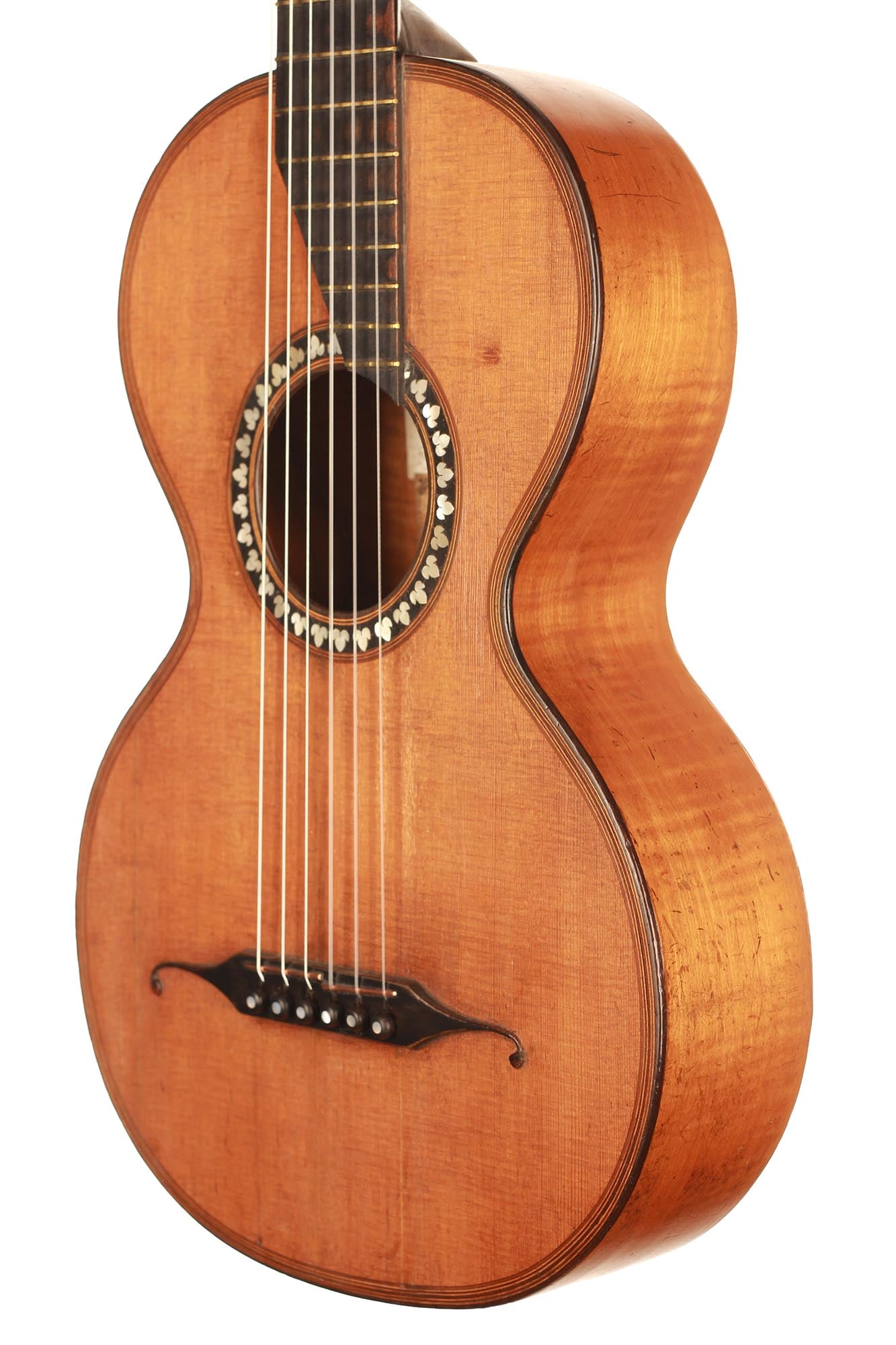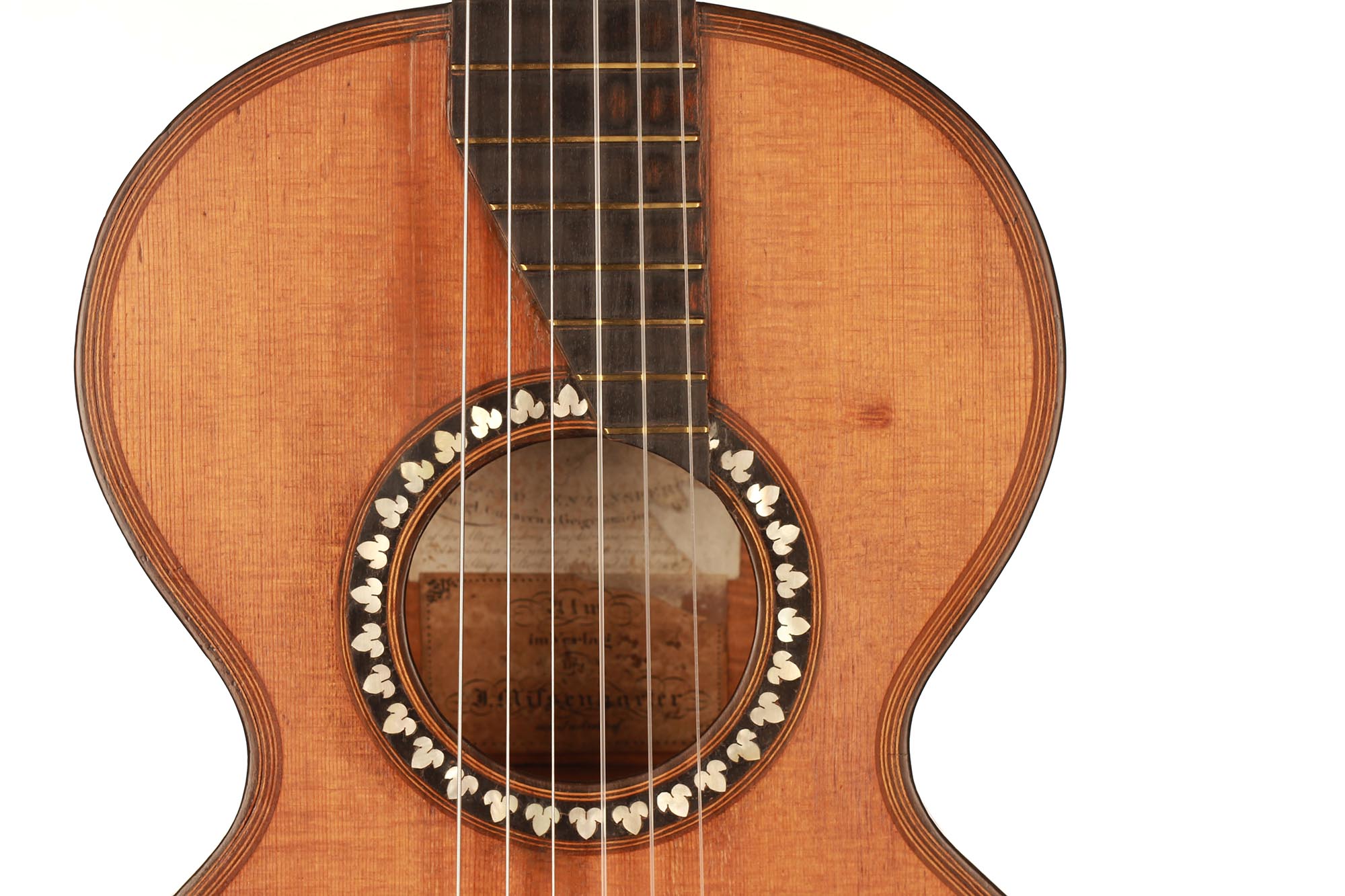 Diese herrliche Gitarre, die um 1834 von Bernard Enzensperger in Wien gebaut wurde, ist ein faszinierendes Instrument. Es befindet sich in einem sehr guten Zustand und wurde von E. P. Hofmann restauriert. Es ist auch im Buch "Stauffer & Co" von Erik Pierre Hofmann, Pacal Mougin und Stefan Hackl auf Seite 182/183 zu finden. Die Decke hat sechs kleine, fachmännisch reparierte Risse und Boden und Zargen sind in gutem Zustand, frei von Rissen. Außerdem wurden die Stimmwirbel durch sehr praktische Pegheds™ ersetzt. Diese Gitarre ist perfekt spielbar und klingt wunderschön.