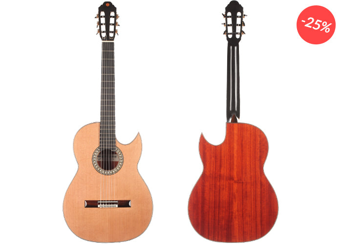 Die klassische Gitarre mit ihren weichen Nylonsaiten und ihrem charakteristischen Timbre ist zum Symbol der Kammermusik, der spanischen Tradition und des Konzertrepertoires geworden. Ihre moderne Form prägte Antonio de Torres im 19. Jahrhundert, indem er den Standard für Korpus, Fächerbeleistung und die 65-Zentimeter-Mensur setzte, die bis heute verwendet werden. Instrumente dieser Kategorie eröffnen eine reiche Palette von den feinen romantischen Miniaturen Tárregas bis zu den majestätischen Konzerten Rodrigos. Hier finden Sie Gitarren, die historische Kontinuität bewahren und zugleich zu neuen Interpretationen anregen.Alle Produkte der Kollektion ansehen -