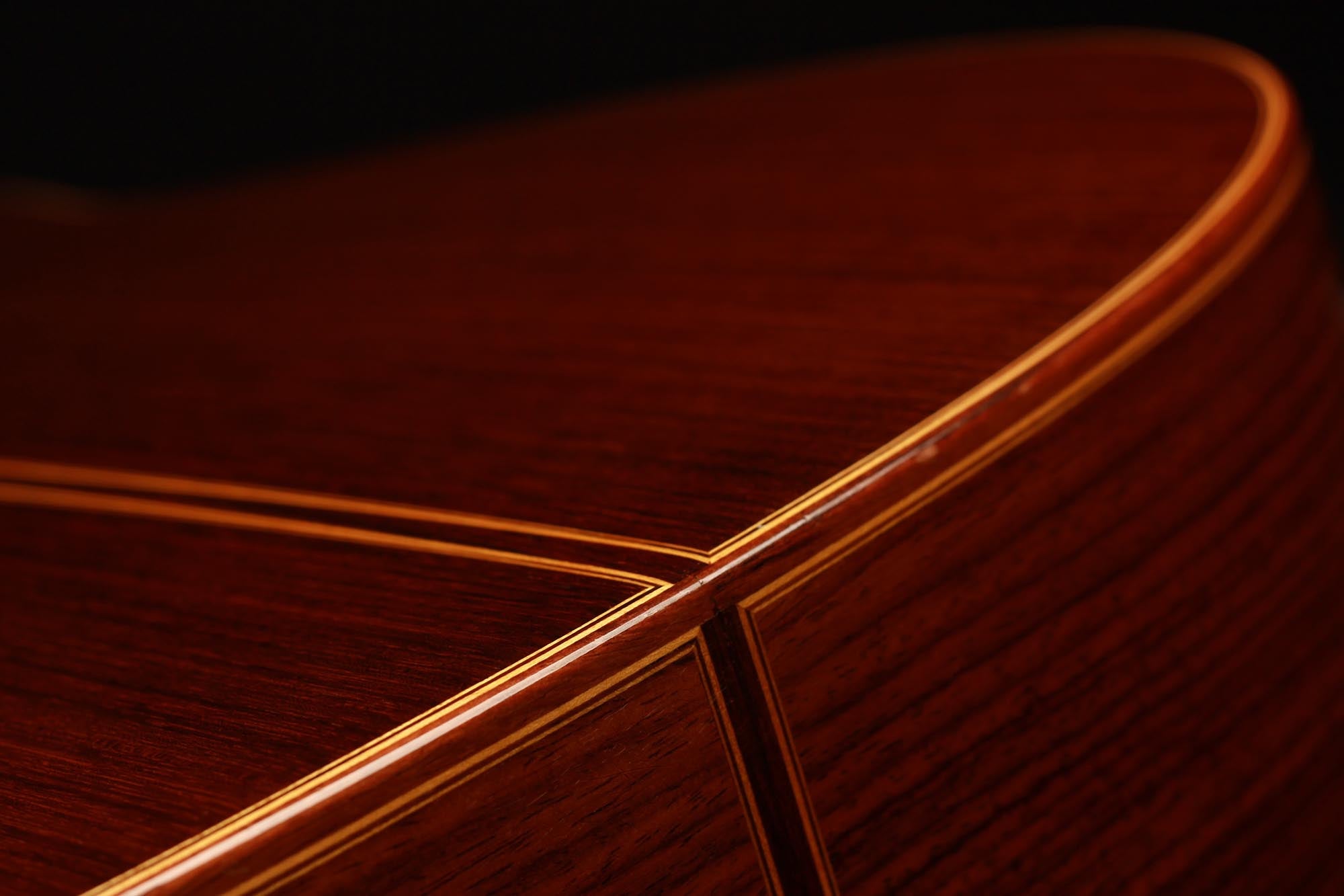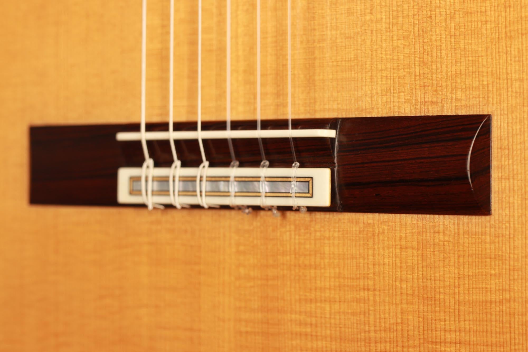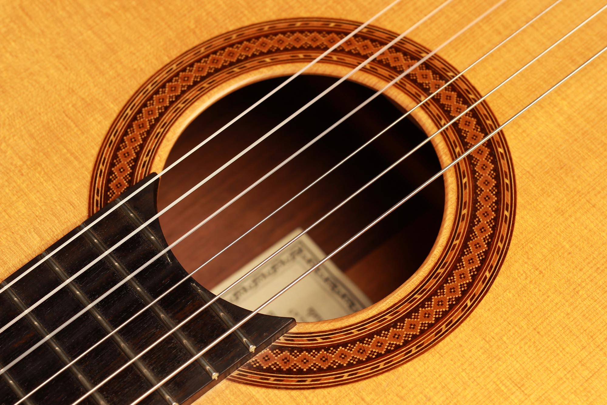 This fabulous guitar, both fine and elegant, was built in 1996. It is hand-signed by Bernd Martin on the inside of the top. The guitar is built with a traditional 7-fan bracing and is in very good condition considering its age. The top has acquired a beautiful color over the years. The back and sides are in good condition with only superficial signs of use. The top has only one repaired hairline crack to the right of the fingerboard