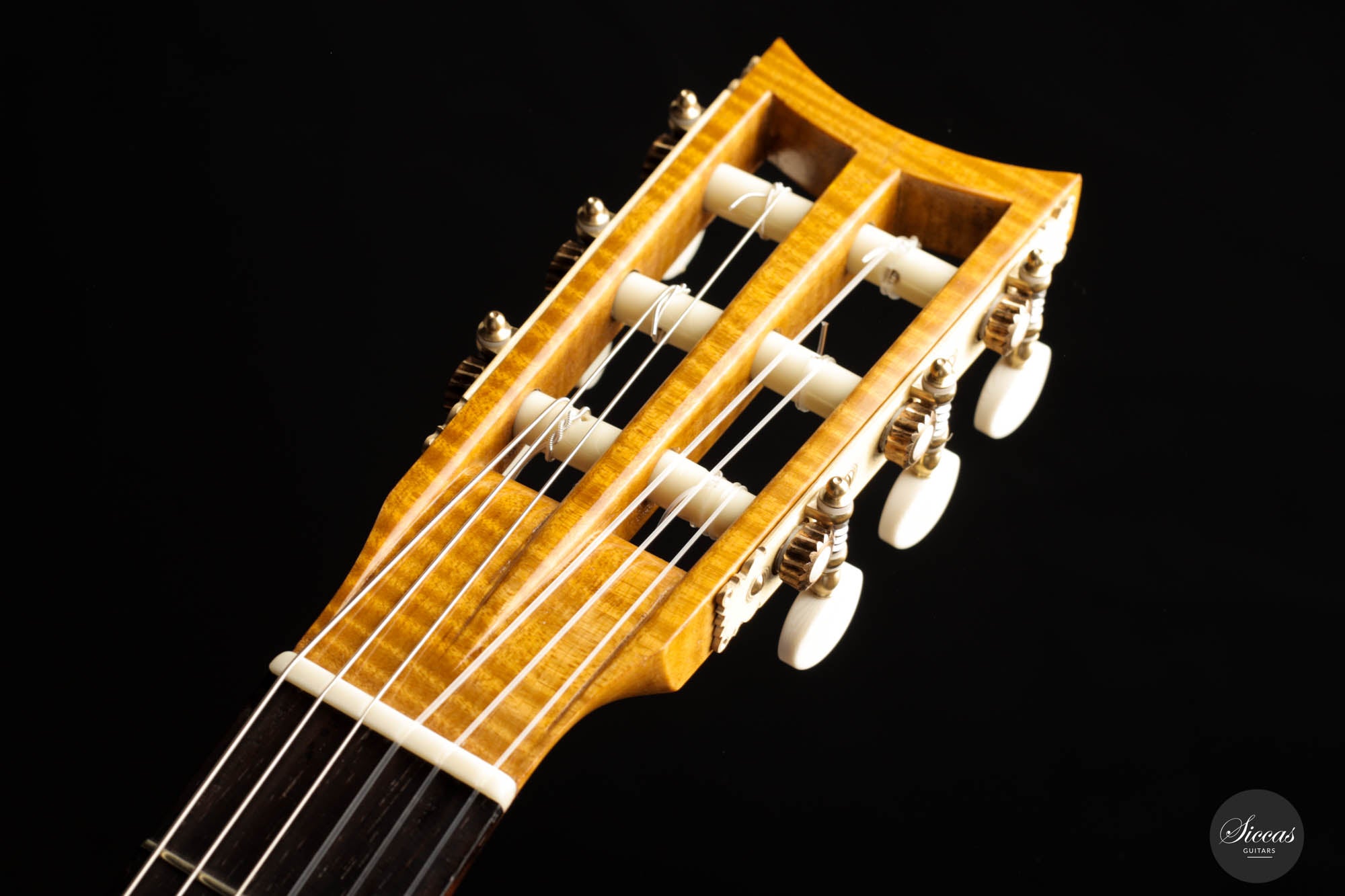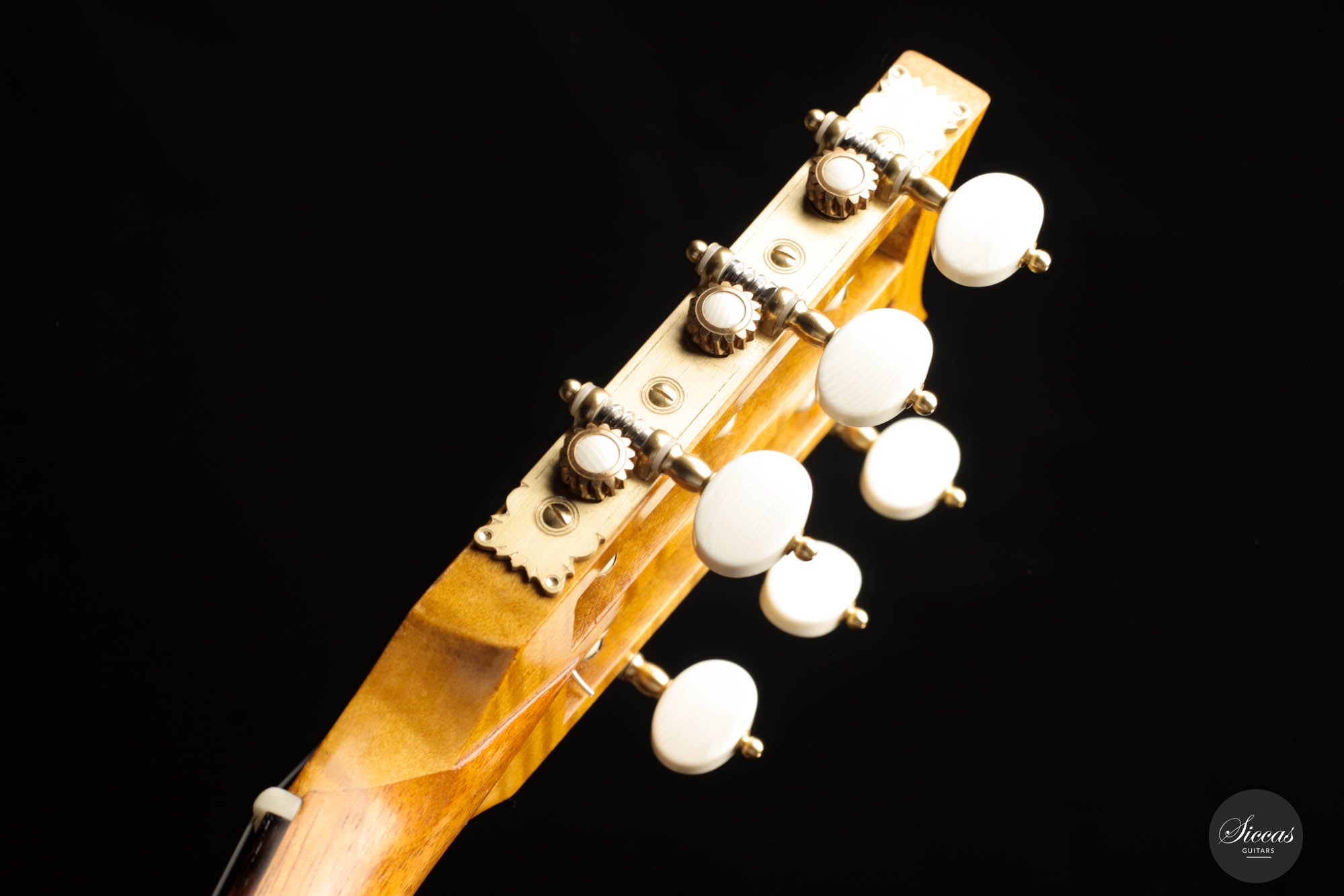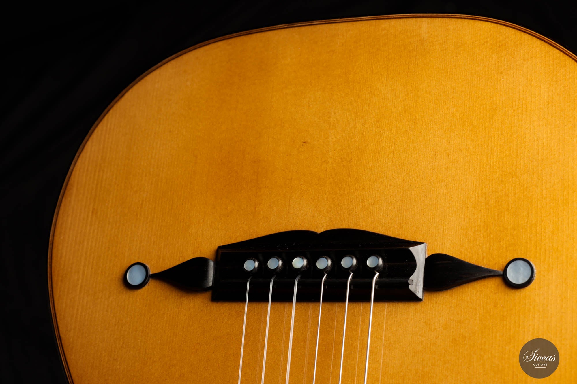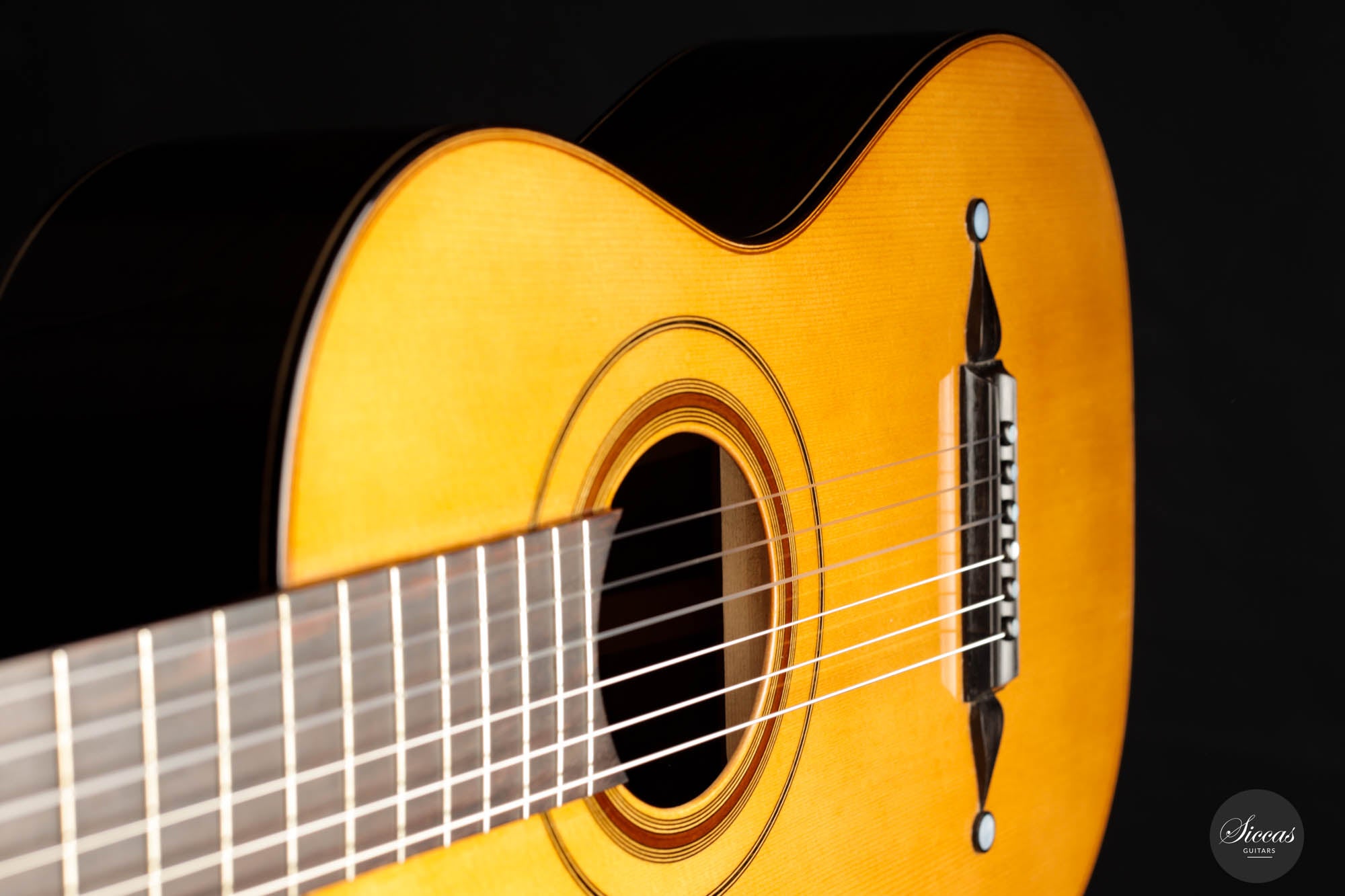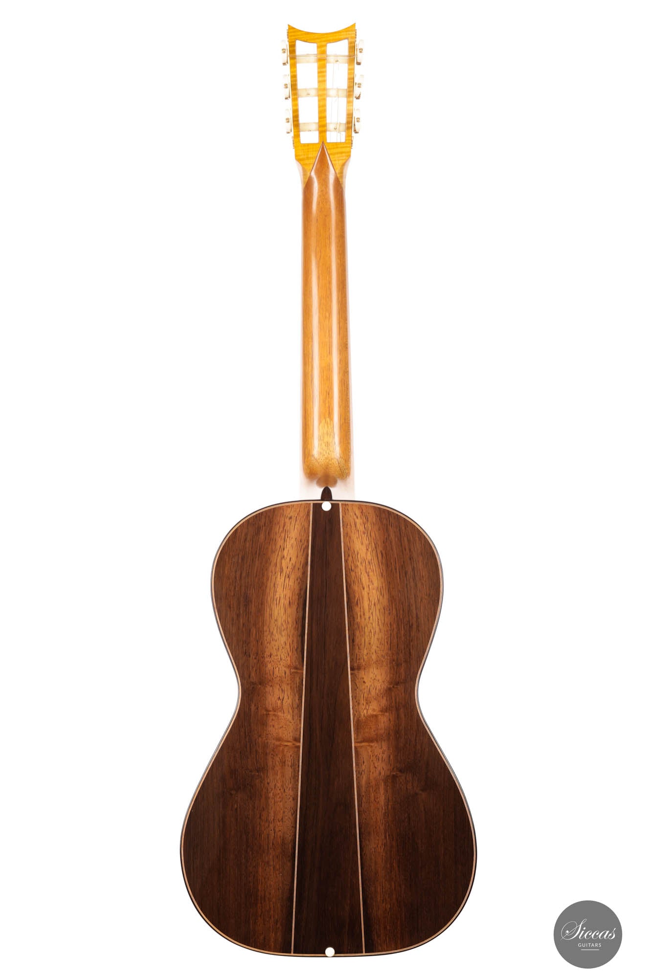 Die akribische Handwerkskunst zeigt sich in jedem Zentimeter der Gitarre. Von den perfekt ausgerichteten Einlagen bis zu den komplexen Details seiner Rosette zeugt jedes Element von Kresses Hingabe zur Perfektion und seiner Ehrfurcht vor Panormos Erbe.