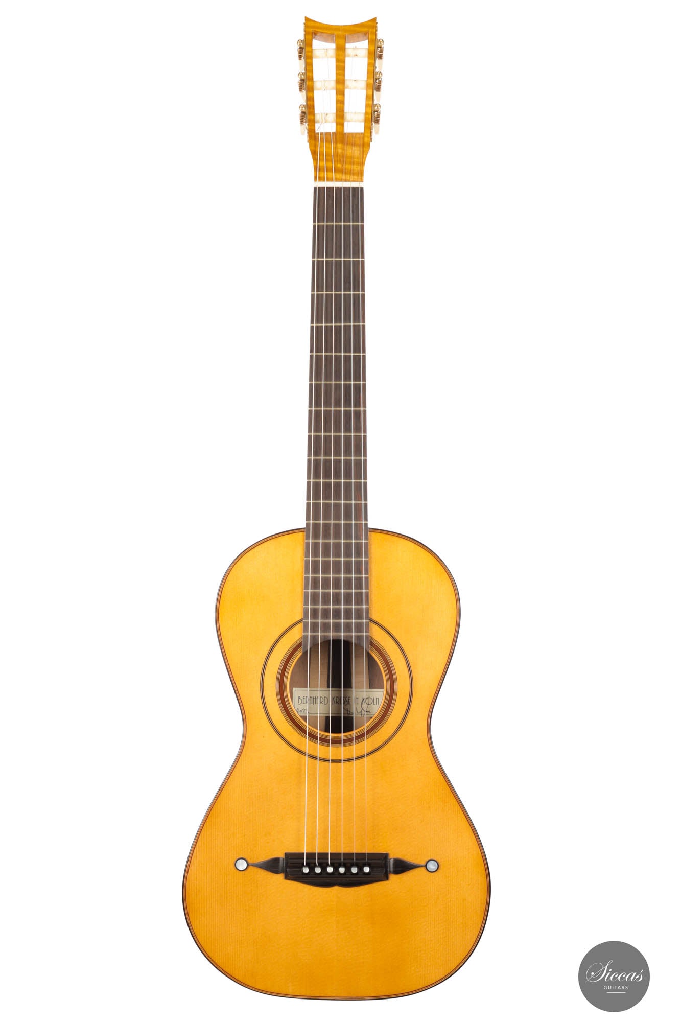 Dieses neue Meisterwerk, geschaffen von Bernhard Kresse, ist mehr als nur ein Musikinstrument; es ist ein Zusammentreffen von Geschichte und Handwerkskunst. Inspiriert vom legendären Gitarrenbauer Louis Panormo, hat Kresse eine wahre Hommage an die goldene Ära des Gitarrenbaus zum Leben erweckt.