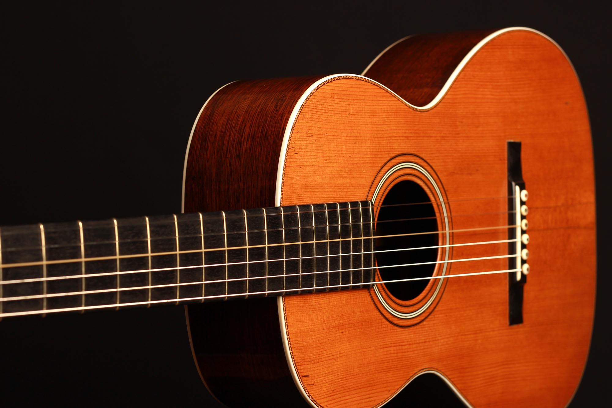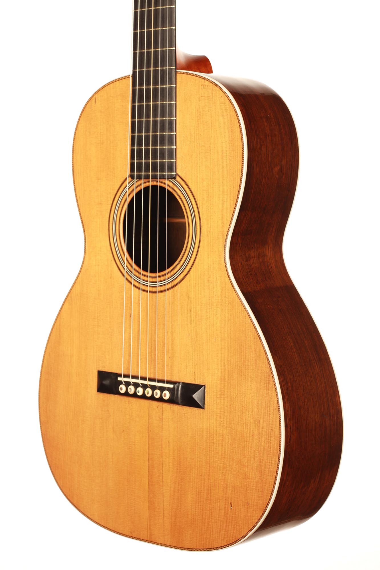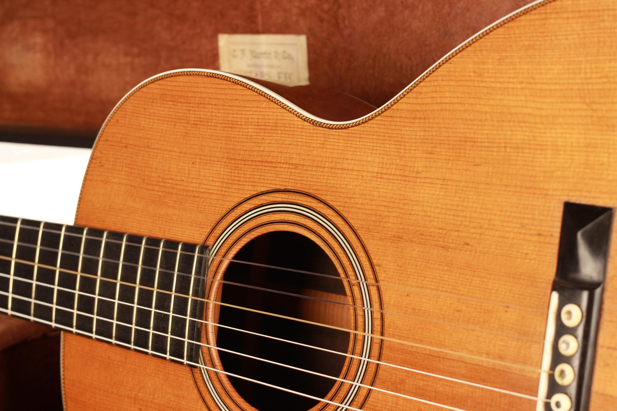 Diese fantastische C.F. Martin Gitarre von ca. 1880 - 1890 ist ein wunderschönes Beispiel für die Gitarren des späten 19. Jahrhunderts. Obwohl C.F. Martin Gitarren in der Regel nicht in unserem Interessengebiet liegen, ist uns diese Gitarre sofort ins Auge gefallen. Neben dem beeindruckenden Zustand und der Sorgfalt, die bei der Herstellung und Konservierung aufgewendet wurde, hat diese Gitarre einen atemberaubenden Klang. Der Reichtum des Klangs und die Klarheit jeder Note sind für uns eine Offenbarung und eine Entdeckung der Gitarren des späten 19. Jahrhunderts dieser prestigeträchtigen Marke.