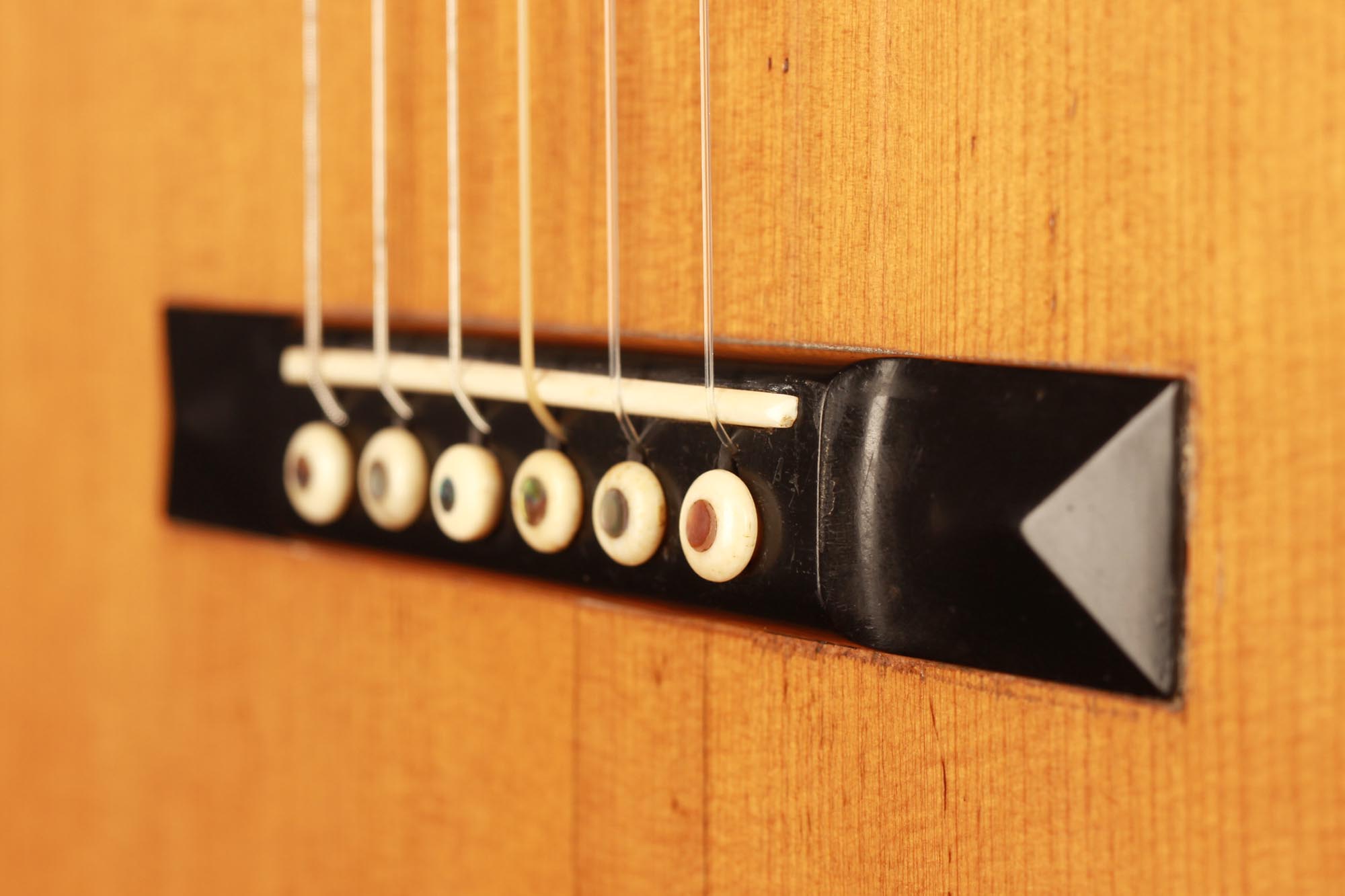 Dieses Instrument befindet sich in einem ausgezeichneten Zustand. Es hat zwei reparierte Risse unter dem Steg und einen sehr dünnen Riss auf der Rückseite. Die Qualität der verwendeten Materialien ist bemerkenswert. Die Wirbel sind original und aus Elfenbein gefertigt, wie viele andere Elemente des Instruments. Der Boden und die Zargen sind aus einem atemberaubenden südamerikanischen Palisander mit einer sehr engen und geraden Maserung gefertigt. Diese Gitarre ist ein außergewöhnliches Musikinstrument und ein sehr seltenes Sammlerstück.