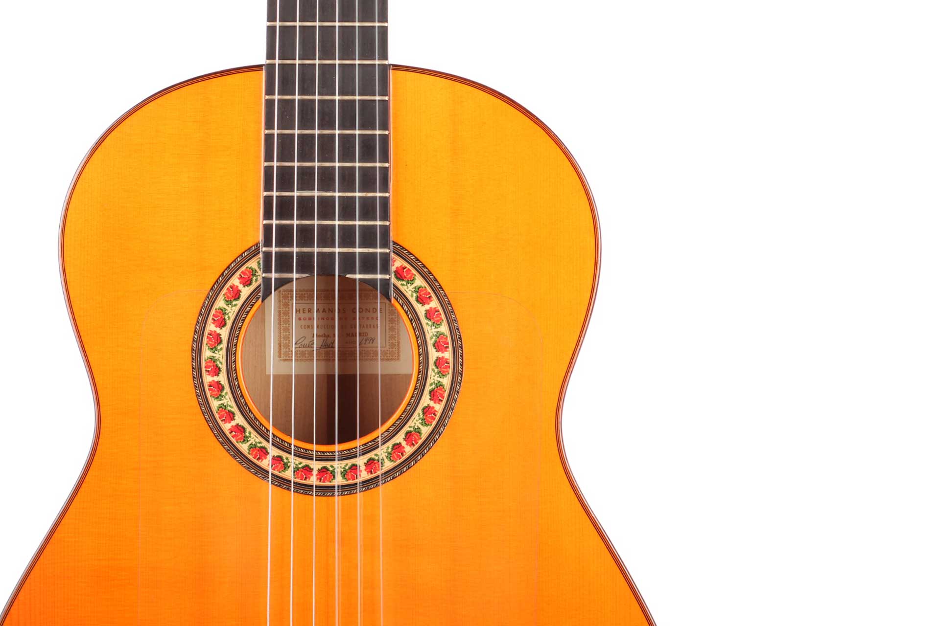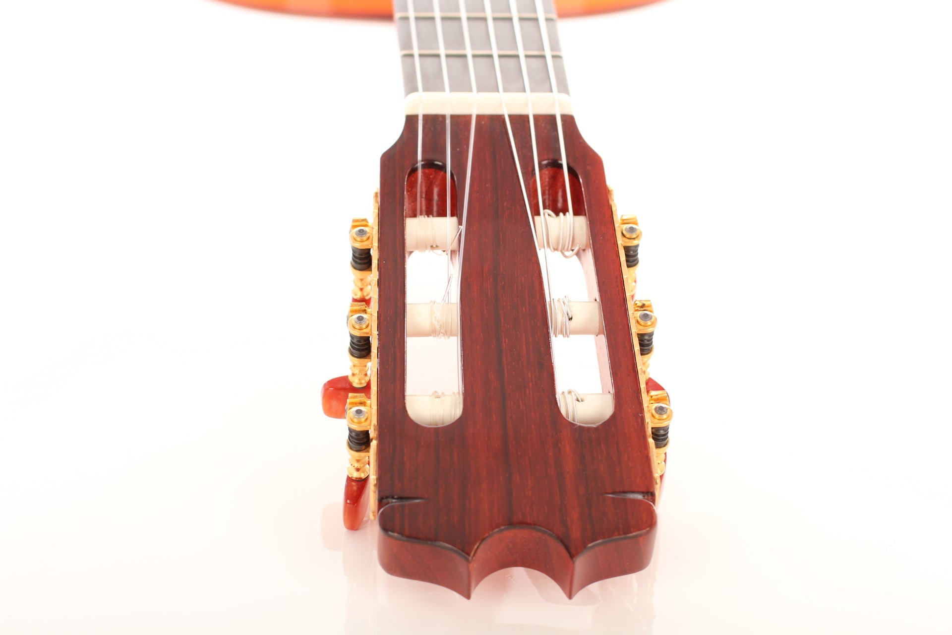 Die klassische Gitarre mit ihren weichen Nylonsaiten und ihrem charakteristischen Timbre ist zum Symbol der Kammermusik, der spanischen Tradition und des Konzertrepertoires geworden. Ihre moderne Form prägte Antonio de Torres im 19. Jahrhundert, indem er den Standard für Korpus, Fächerbeleistung und die 65-Zentimeter-Mensur setzte, die bis heute verwendet werden. Instrumente dieser Kategorie eröffnen eine reiche Palette von den feinen romantischen Miniaturen Tárregas bis zu den majestätischen Konzerten Rodrigos. Hier finden Sie Gitarren, die historische Kontinuität bewahren und zugleich zu neuen Interpretationen anregen.Alle Gitarren der Kollektion ansehen -