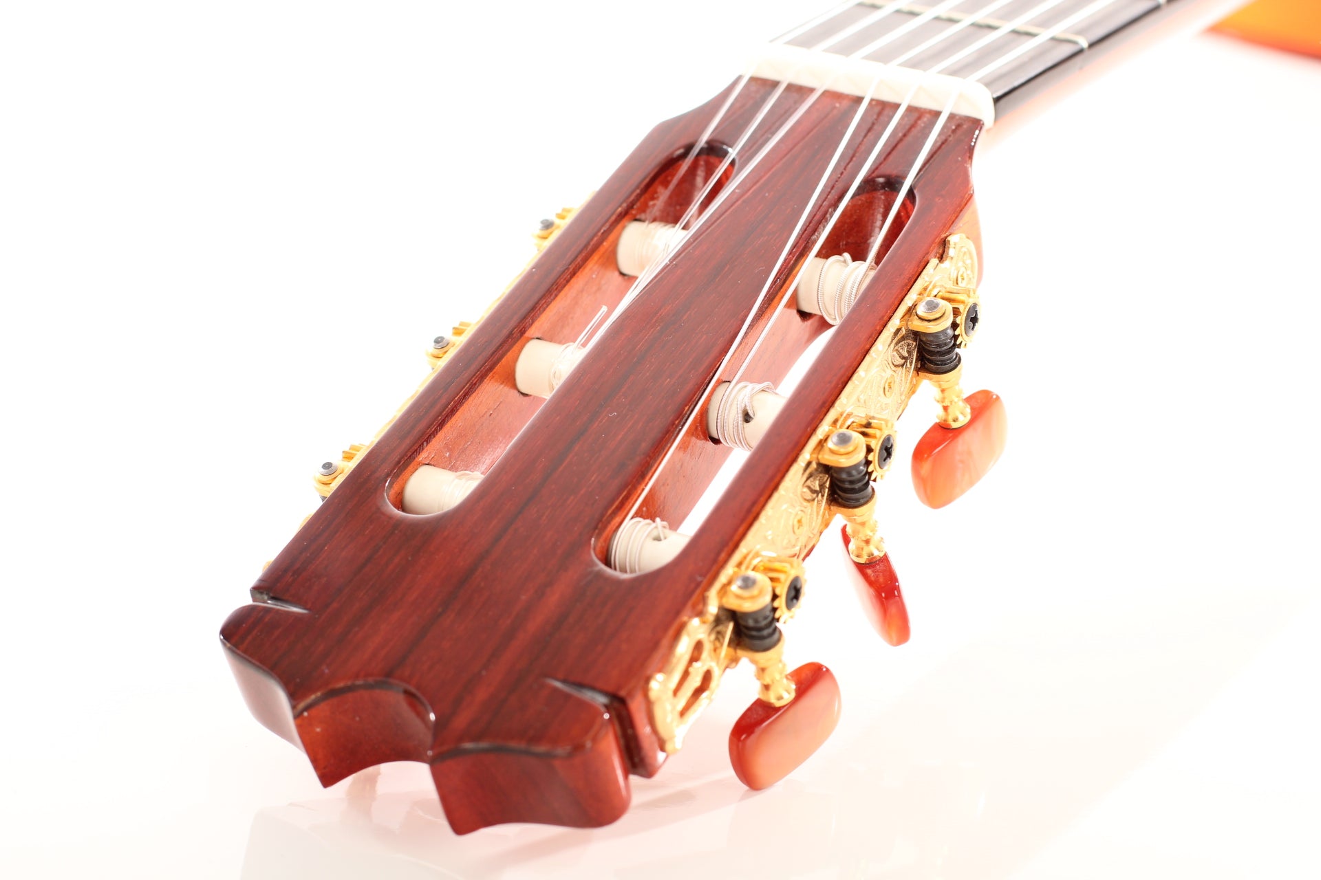 Gitarrenbauer: José Luis RomanillosBaujahr: 1979Decke: SpruceBoden und Zargen: Indian rosewoodDeckenoberfläche: French polishKorpusoberfläche: French polishLuftresonanz: G / G sharpGewicht (g): 1410Mechaniken: RodgersZustand: Excellent