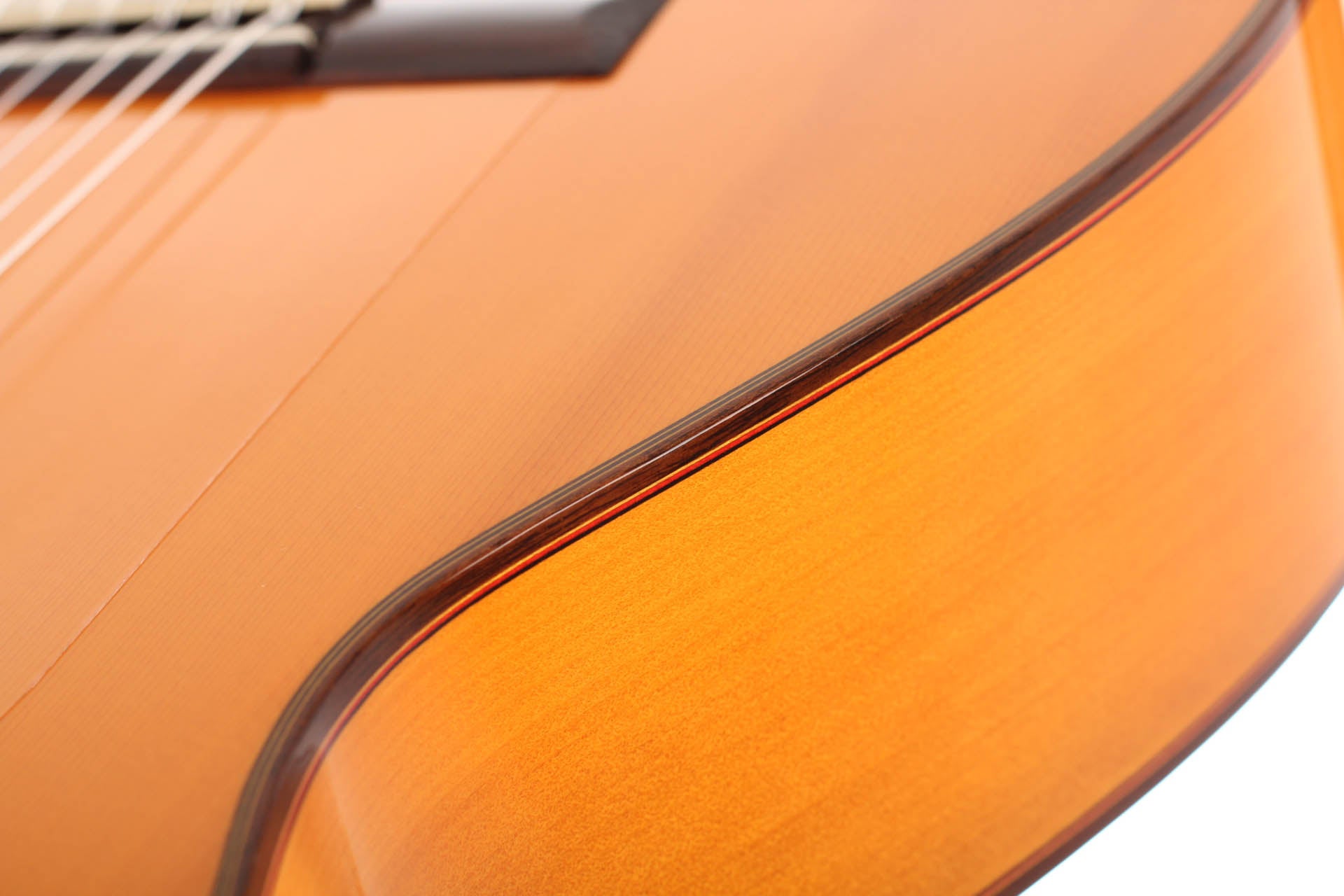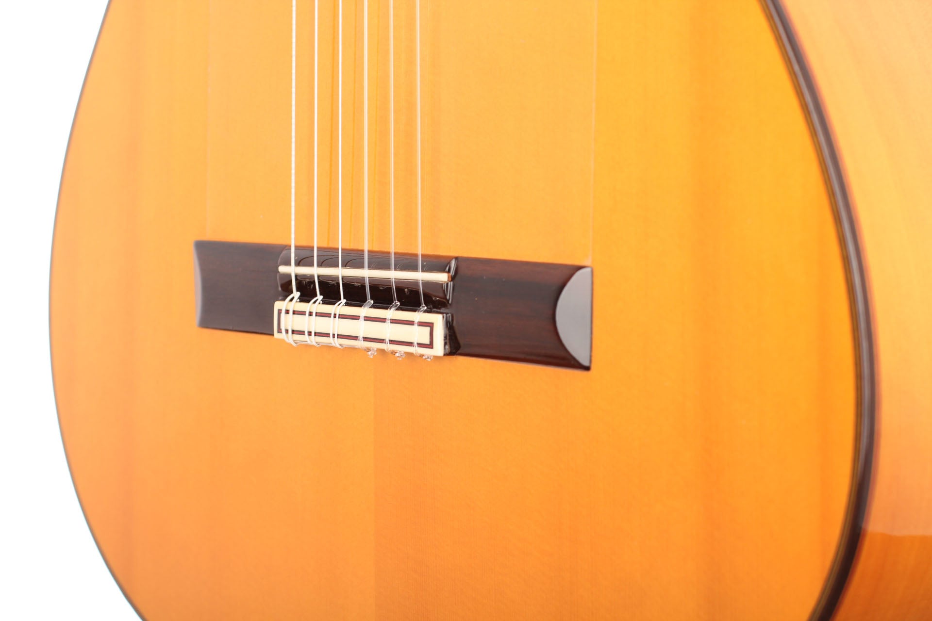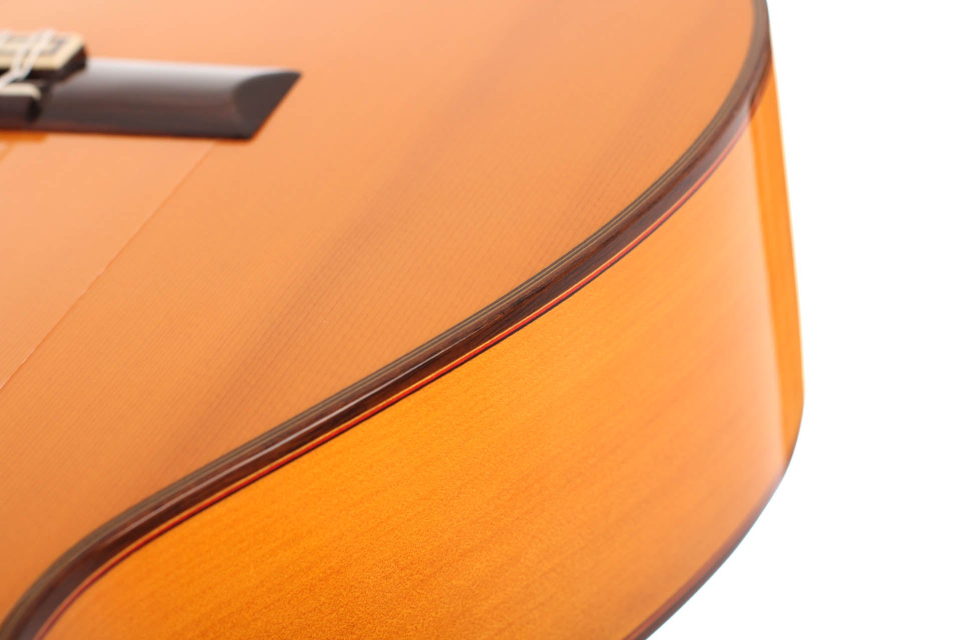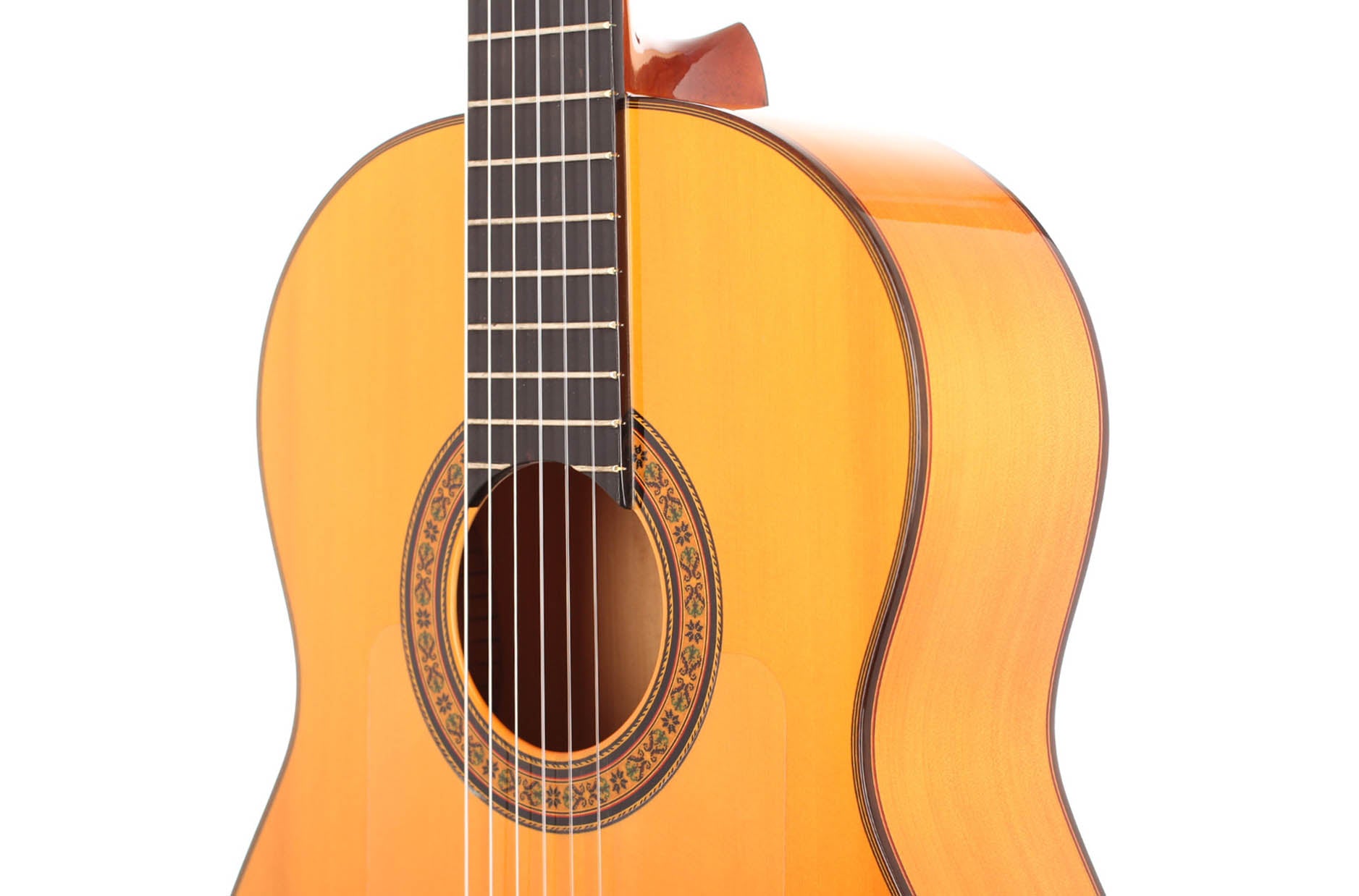 Die klassische Gitarre mit ihren weichen Nylonsaiten und ihrem charakteristischen Timbre ist zum Symbol der Kammermusik, der spanischen Tradition und des Konzertrepertoires geworden. Ihre moderne Form prägte Antonio de Torres im 19. Jahrhundert, indem er den Standard für Korpus, Fächerbeleistung und die 65-Zentimeter-Mensur setzte, die bis heute verwendet werden. Instrumente dieser Kategorie eröffnen eine reiche Palette von den feinen romantischen Miniaturen Tárregas bis zu den majestätischen Konzerten Rodrigos. Hier finden Sie Gitarren, die historische Kontinuität bewahren und zugleich zu neuen Interpretationen anregen.Alle Gitarren der Kollektion ansehen -