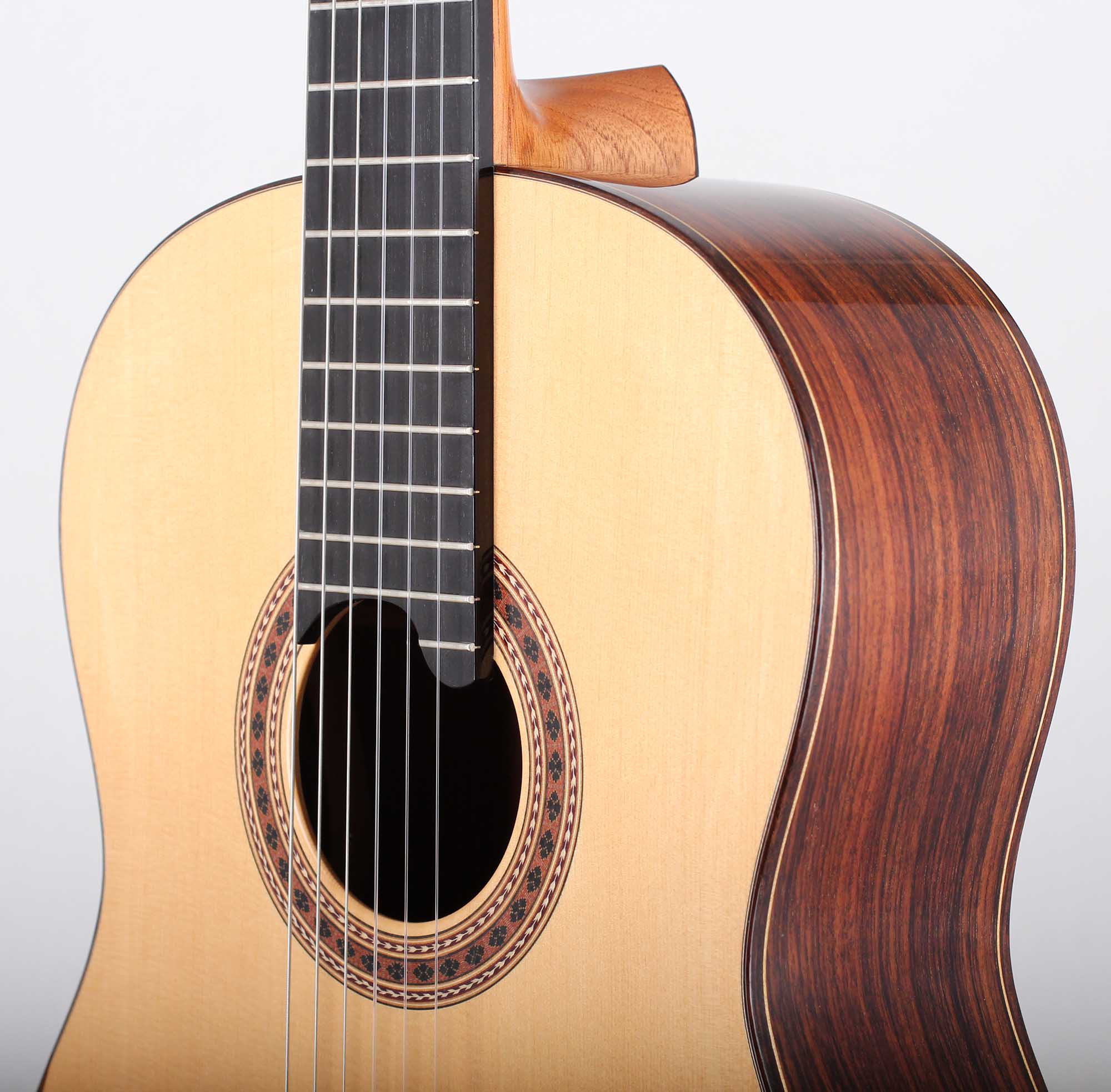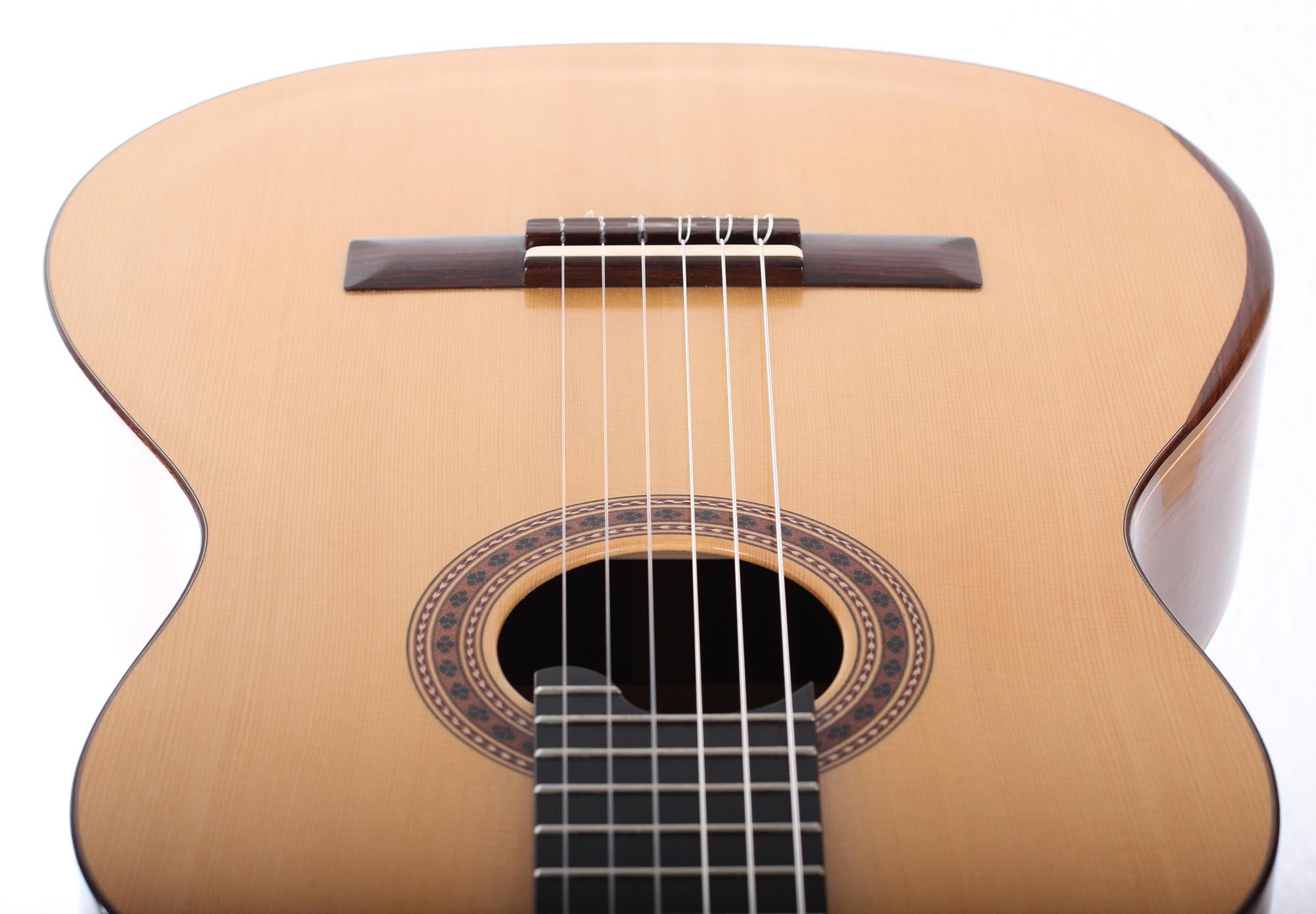 Die klassische Gitarre mit ihren weichen Nylonsaiten und ihrem charakteristischen Timbre ist zum Symbol der Kammermusik, der spanischen Tradition und des Konzertrepertoires geworden. Ihre moderne Form prägte Antonio de Torres im 19. Jahrhundert, indem er den Standard für Korpus, Fächerbeleistung und die 65-Zentimeter-Mensur setzte, die bis heute verwendet werden. Instrumente dieser Kategorie eröffnen eine reiche Palette von den feinen romantischen Miniaturen Tárregas bis zu den majestätischen Konzerten Rodrigos. Hier finden Sie Gitarren, die historische Kontinuität bewahren und zugleich zu neuen Interpretationen anregen.Alle Gitarren der Kollektion ansehen -