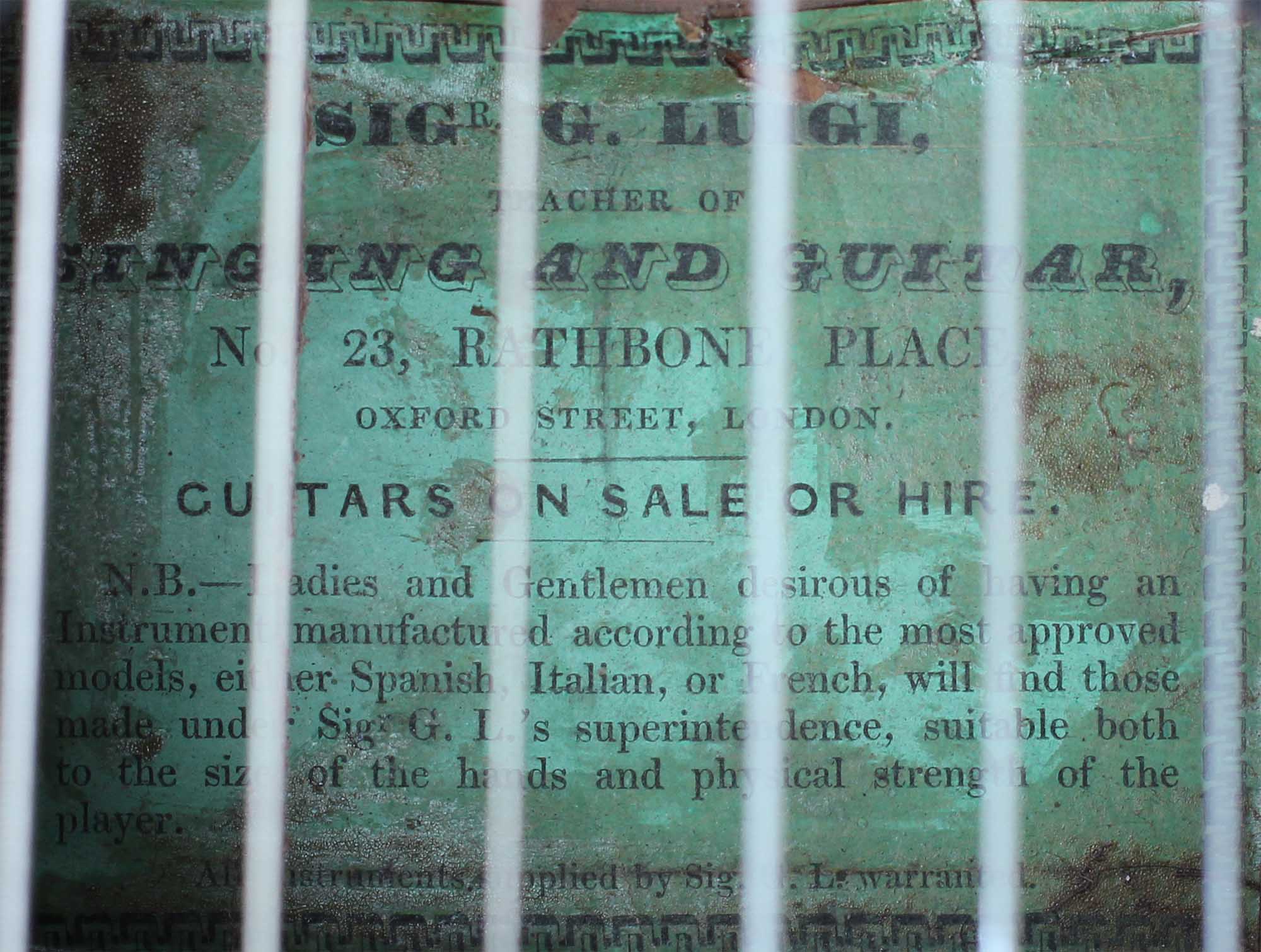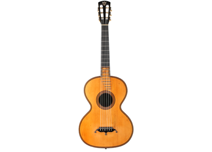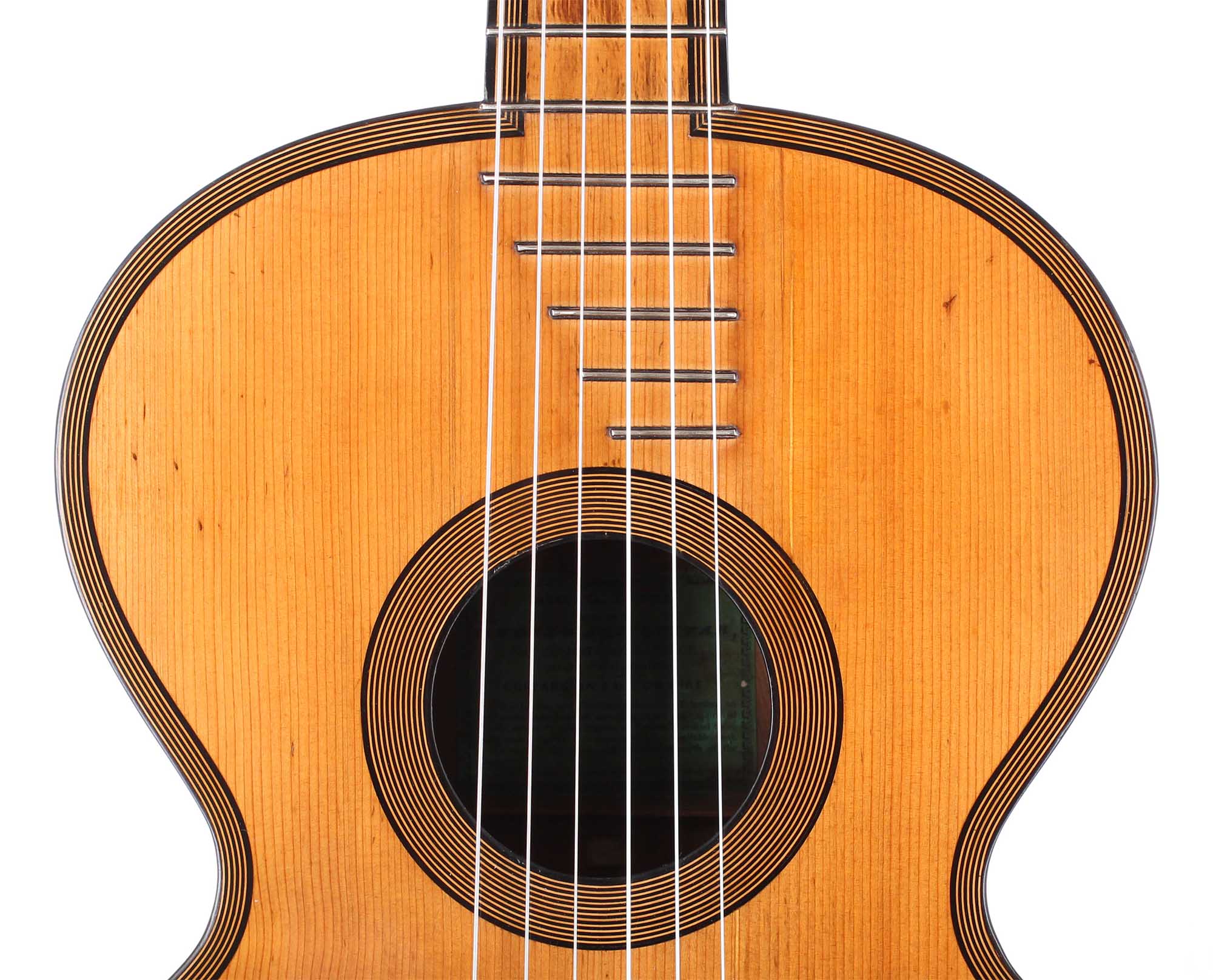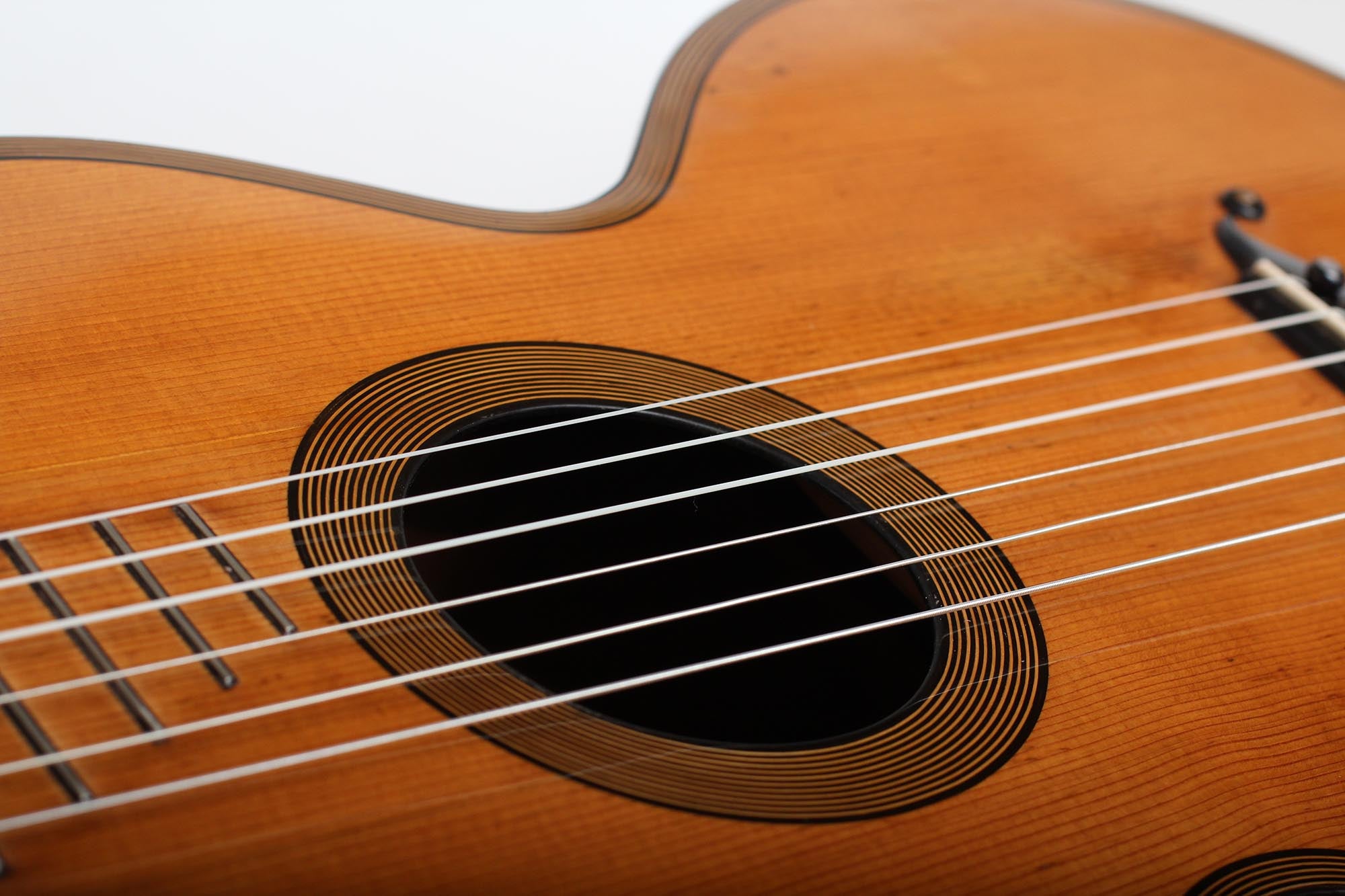 This D&A (Dominique and Arnauld) Roudhloff guitar was built around 1845. Dominique and Arnauld were the sons of Francois Roudhloff, who was a very famous luthier from Mirecourt. His sons went from Mirecourt to London where they worked as guitar makers and as guitar dealers.