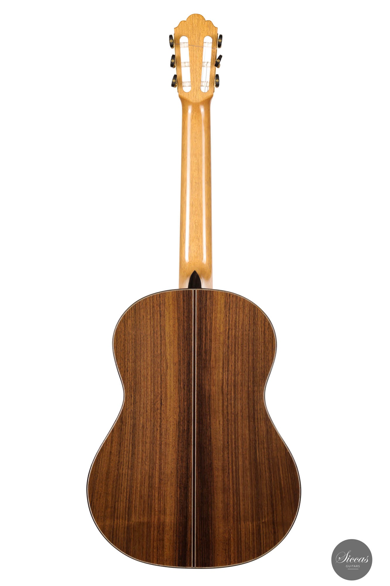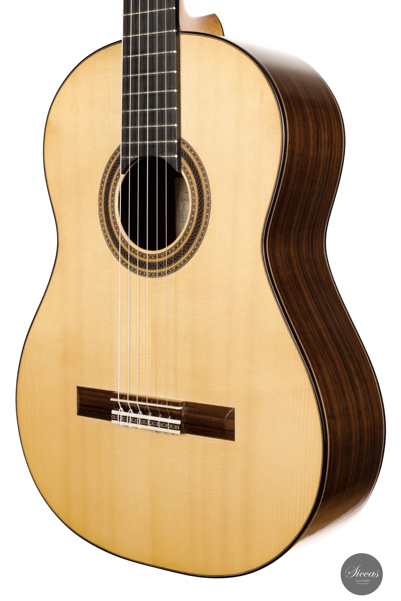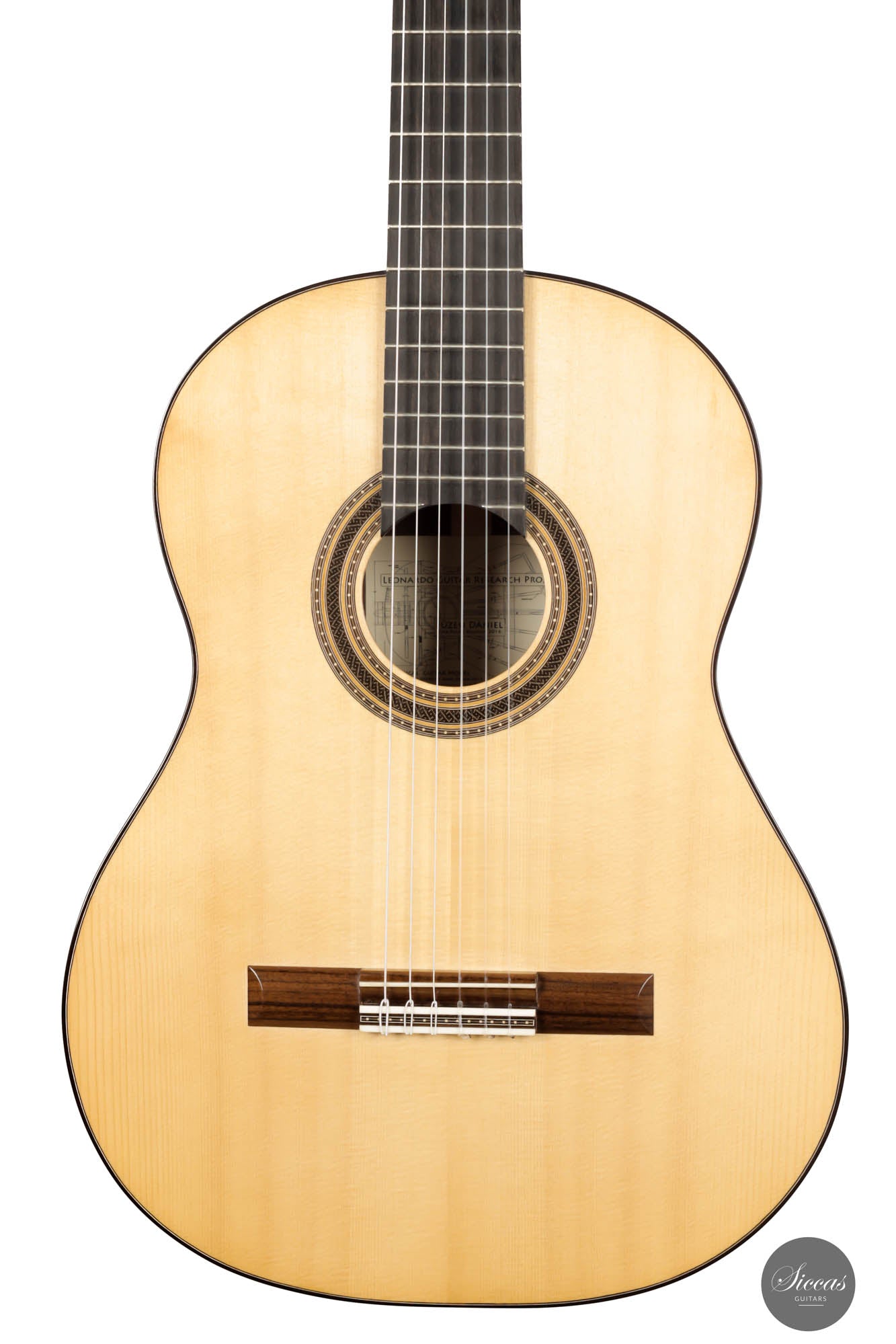 Dieses Instrument ist eine Gitarre, die 2016 von Daniel Füzesi im Rahmen des Leonardo-Projekts gebaut wurde. Sie hat eine Fichtendecke und Boden und Zargen aus indischem Palisander. Alle Verzierungen und Dekorationen dieses Instruments wurden in Perfektion ausgeführt. Es zeigt Daniels außergewöhnliche Handwerkskunst als Gitarrenbauer. Diese Gitarre zeichnet sich durch ihre Offenheit und Ausgewogenheit aus. Der Diskant klingt präzise und leicht variabel in Bezug auf Klangfarbe und Dynamik. Die Gesamtbalance der Gitarre ist äußerst angenehm, und die Klangqualität dieses Instruments gehört zweifelsohne zu den Gitarren der Spitzenklasse. Obwohl im Jahr 2016 gebaut, ist dieses schöne Instrument in brandneuem Zustand.