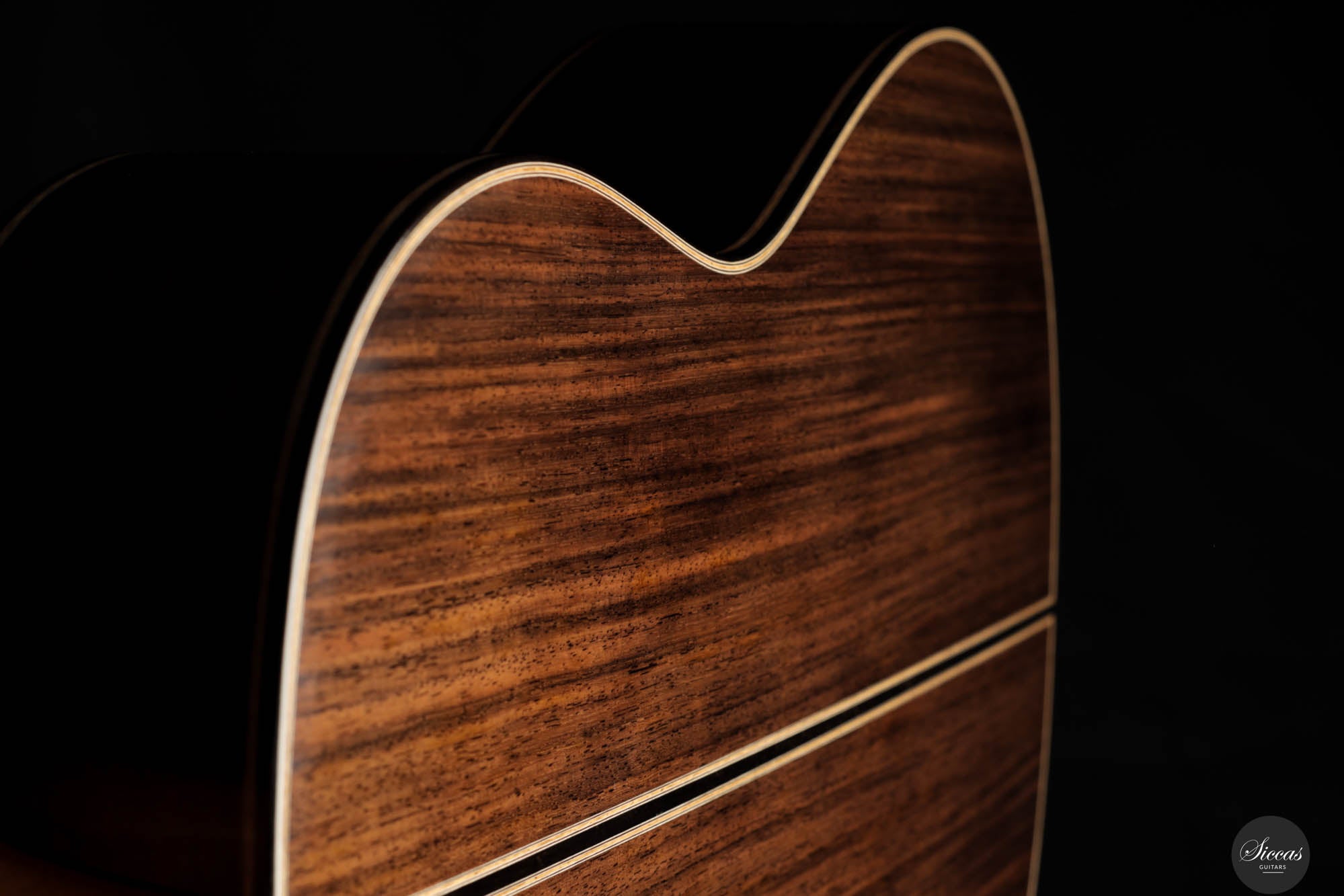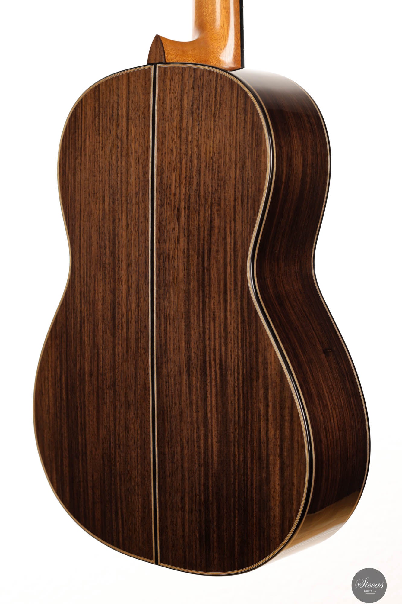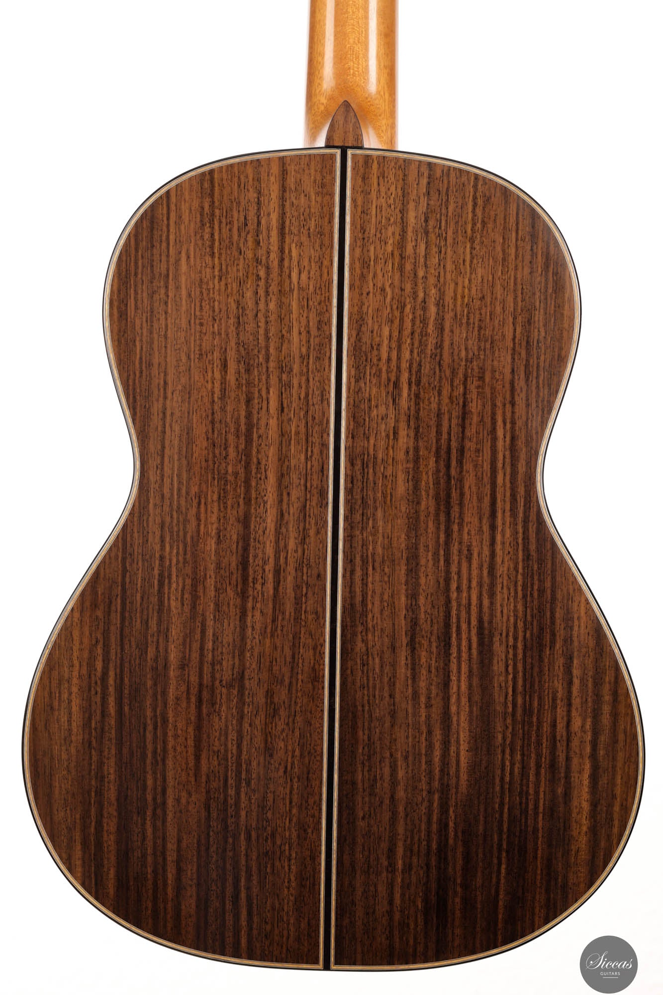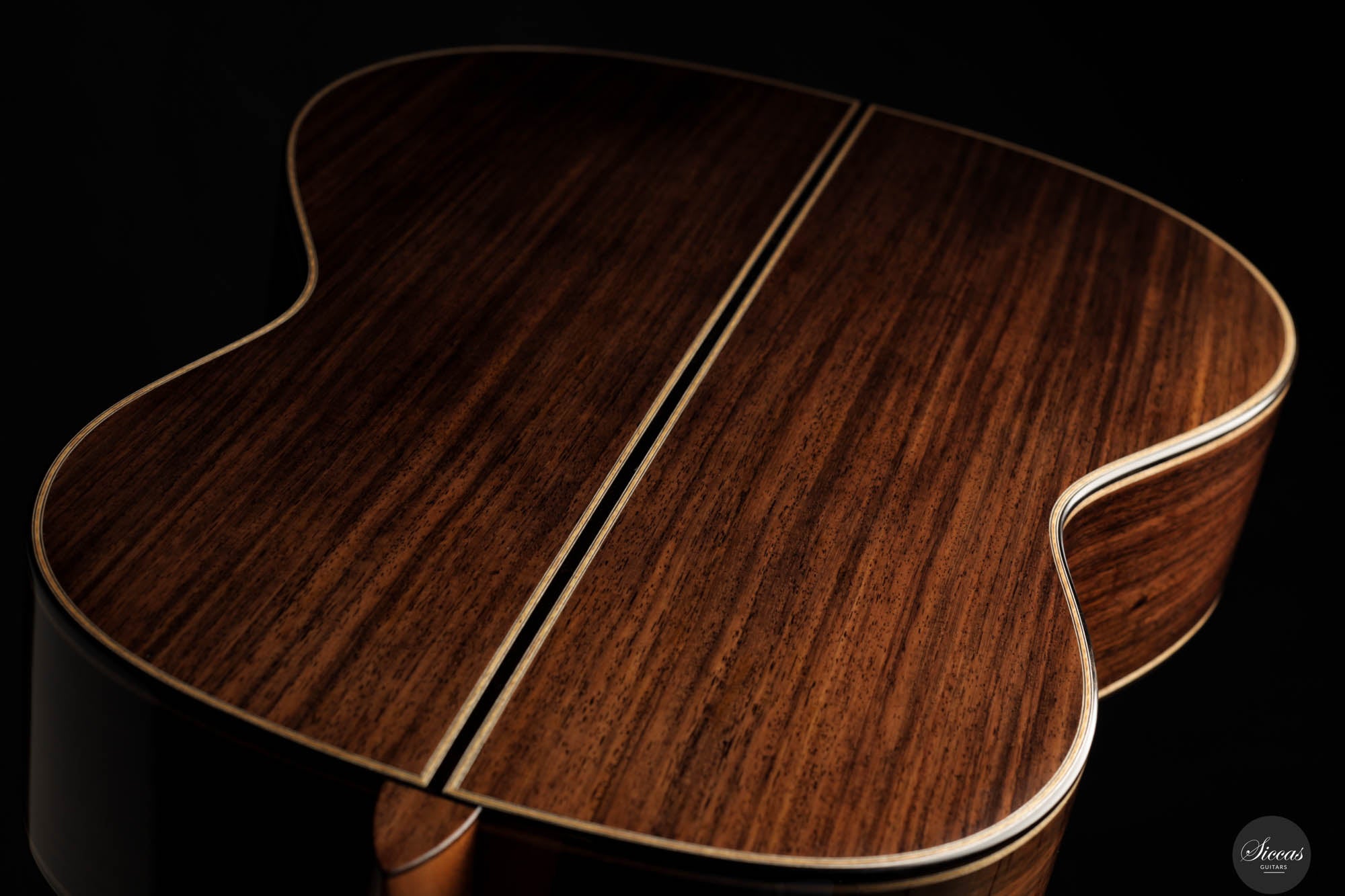 Danieles Auswahl an Hölzern für diese Gitarre ist beispielhaft und zeigt sein tiefes Verständnis und seinen Respekt für hochwertige Materialien. Rücken und Seiten, aus feinstem indischen Palisander gefertigt, tragen nicht nur zur visuellen Eleganz der Gitarre bei, sondern leisten auch einen wesentlichen Beitrag zu ihrer tonalen Tiefe und Reichhaltigkeit. Die Wahl einer federleichten, handgespaltenen Master-Grade Schweizer Fichte für die Schalldecke ist ebenso bemerkenswert.