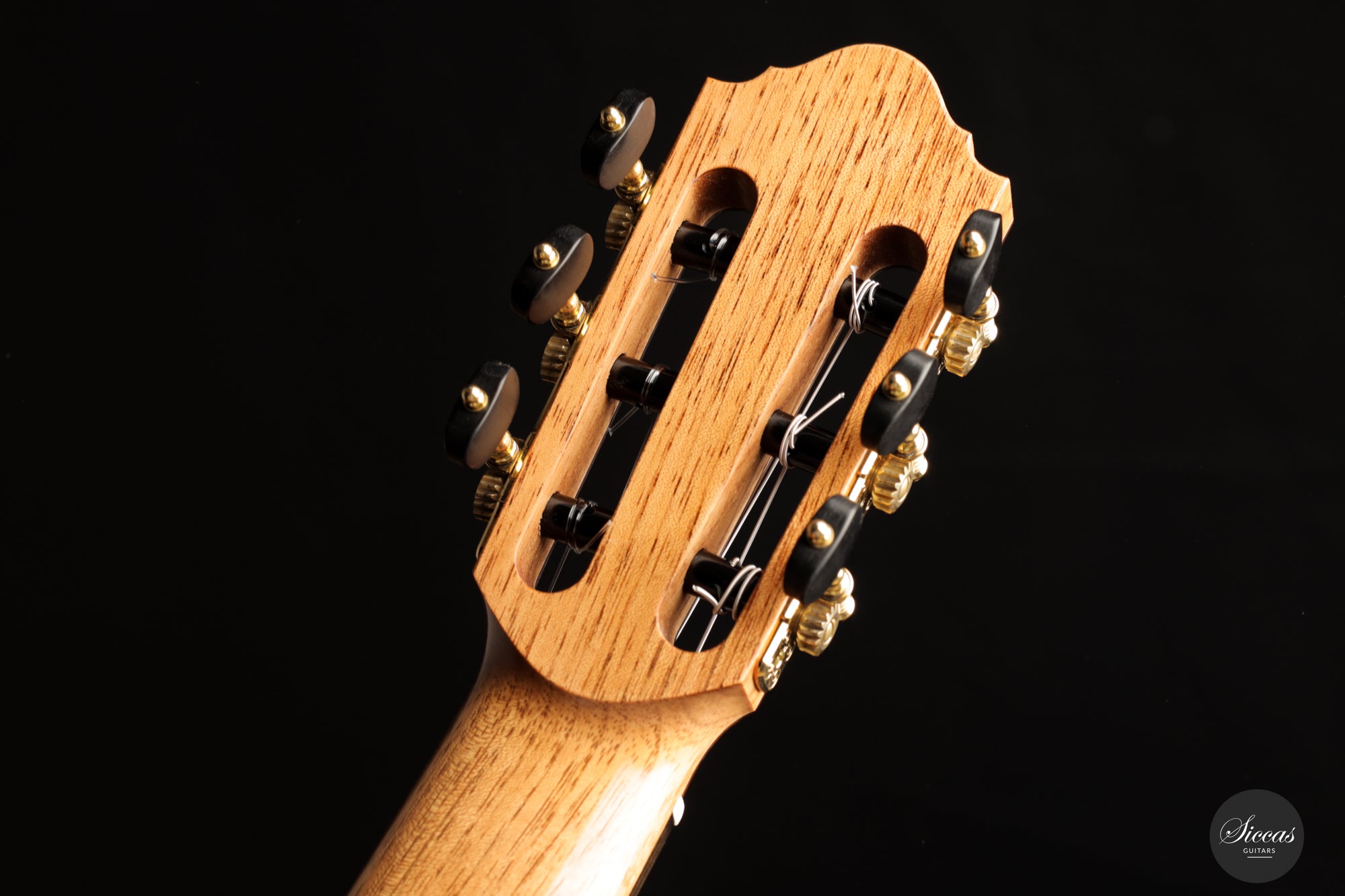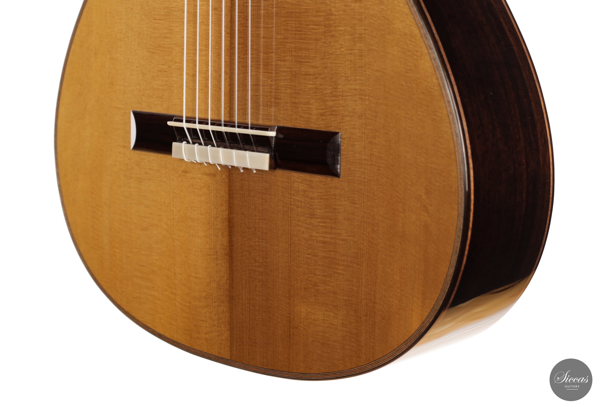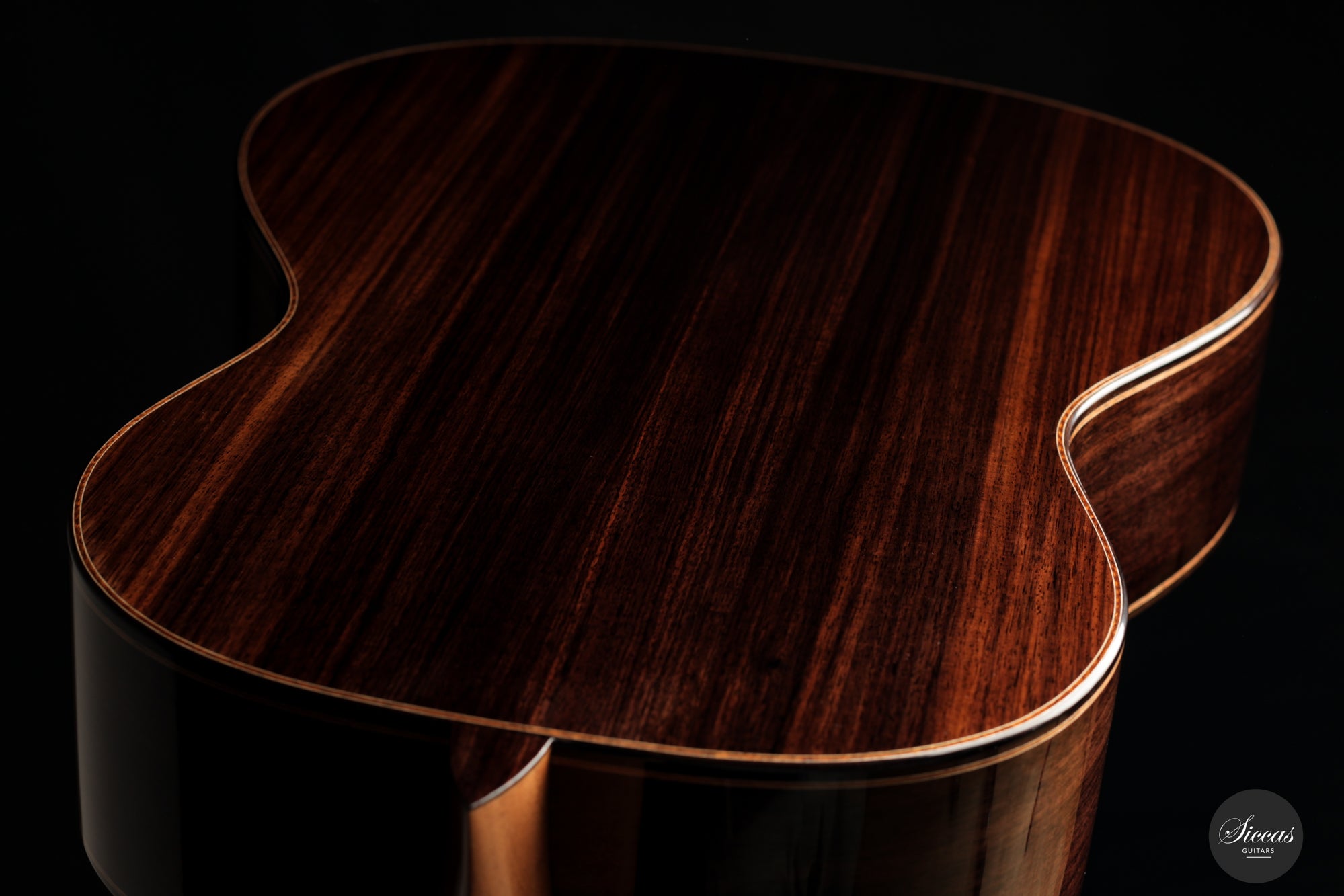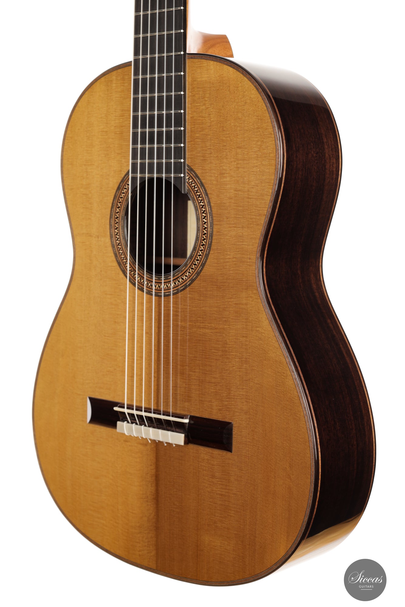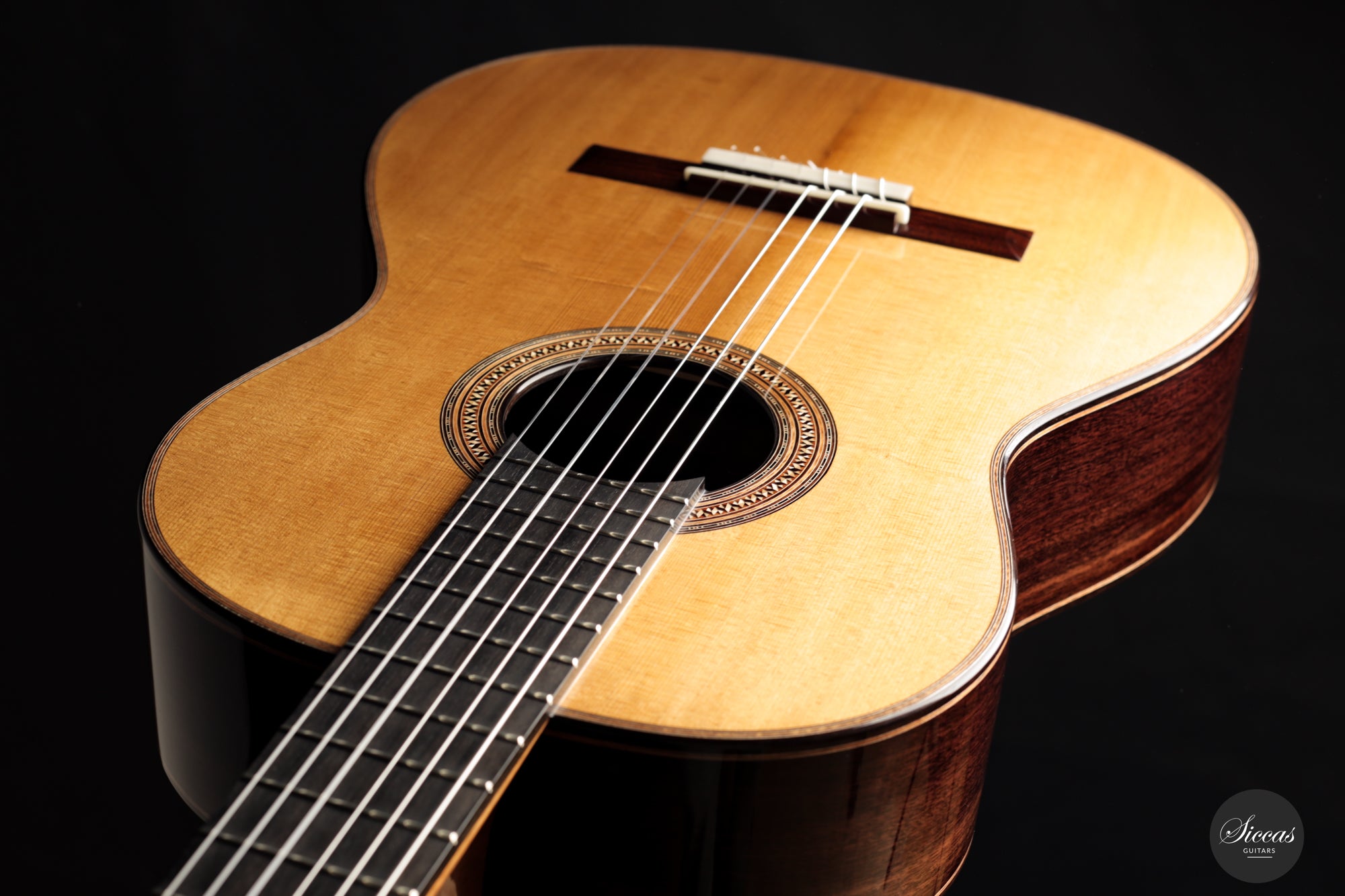 In Reflexion seiner unerschütterlichen Verpflichtung zur Qualität verkörpert dieses spezielle Stück Bazzanas charakteristische Handwerkskunst. Mit einer Fichtendecke, die eloquent mit klassischem indischem Rosenholz für den Boden und die Zargen gepaart ist, sind seine Ästhetik genauso überzeugend wie sein Klang. Seine Abstammung ist unverkennbar von der verehrten französischen Schule des Gitarrenbaus beeinflusst und hallt die Meisterschaft wider, die in den Kreationen von Größen wie Robert Bouchet und Daniel Friederich zu finden ist.
