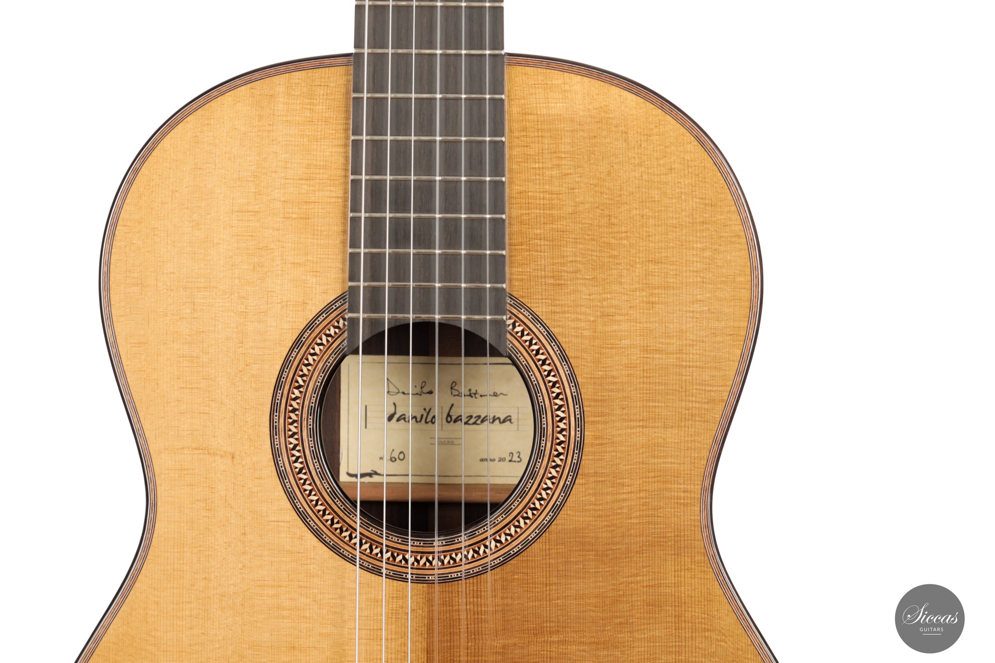 Danilo Bazzana wurde 1985 in Mailand geboren. Im Alter von dreizehn Jahren begann er, Gitarre zu spielen, was zu einer seiner zukünftigen Leidenschaften wurde. Im April 2015 eröffnete er seine Werkstatt im Zentrum von Paderno Dugnano, wo er den Bau der klassischen Gitarre mit der Feinabstimmung, Restaurierung und Reparatur von jeglicher Art von Zupfinstrumenten abwechselt. Er baut traditionelle Gitarren, inspiriert von den großen Meistern, wobei er der Auswahl der Materialien für jede einzelne Komponente des Instruments besondere Aufmerksamkeit widmet.