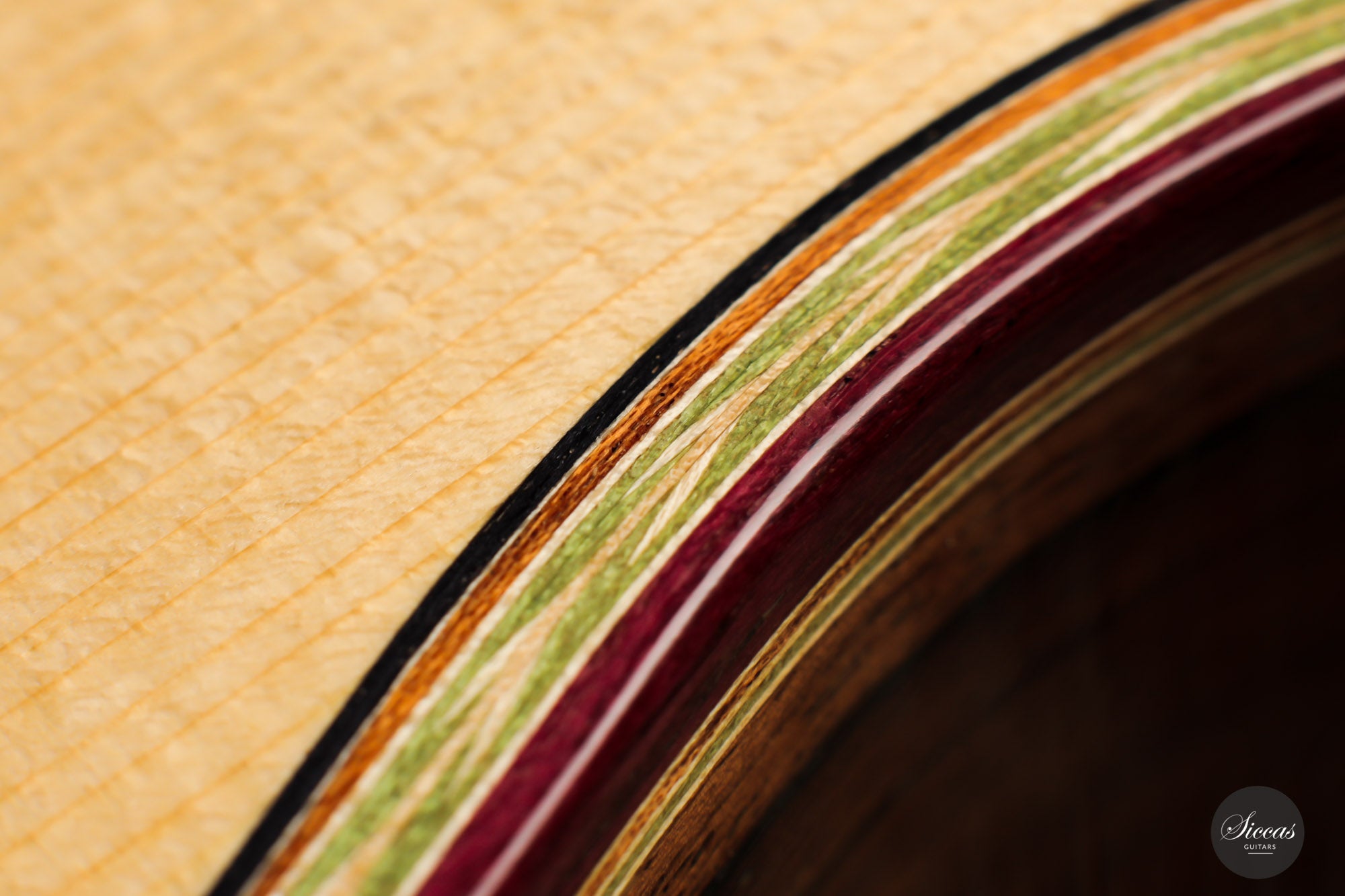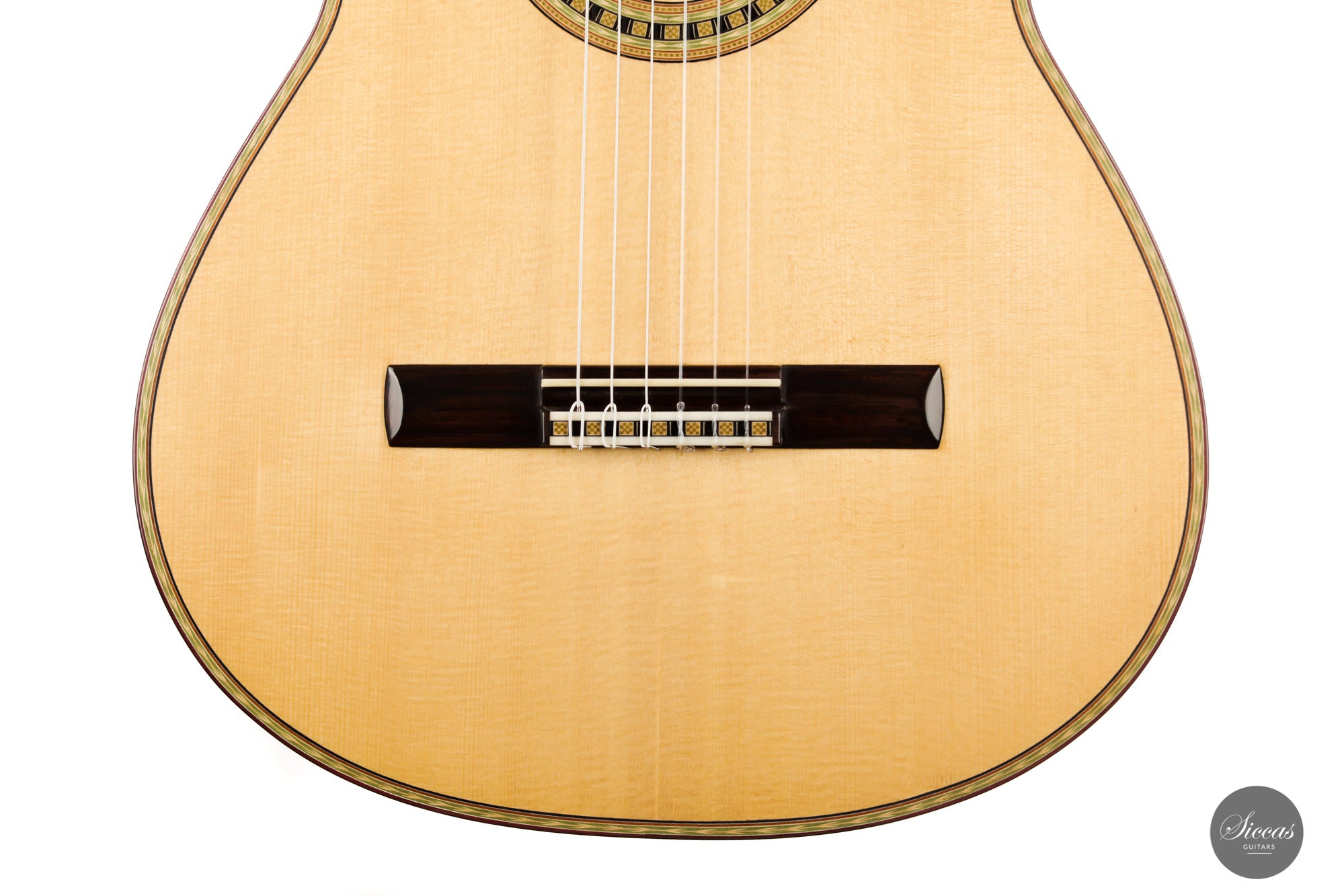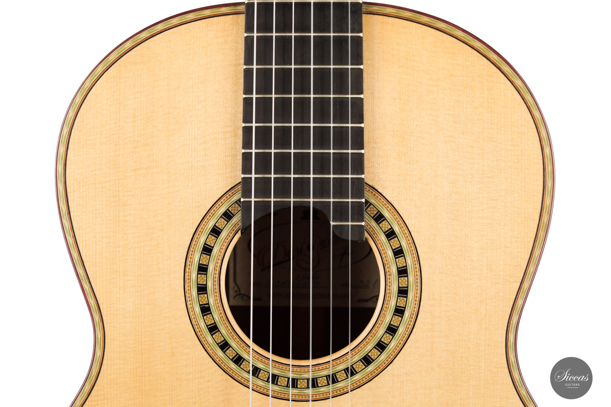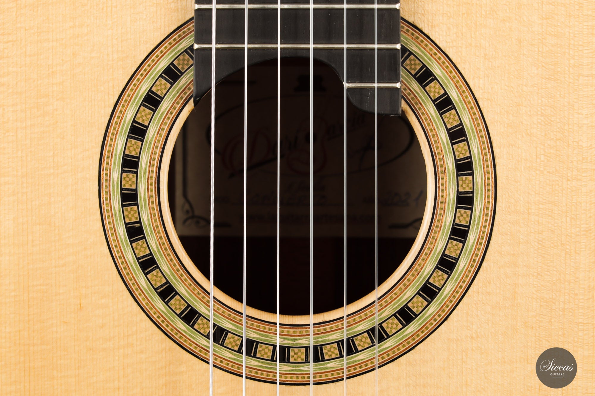 The guitars coming from his workshop all have a classical design that follows the Spanish tradition of the 20th century. Nevertheless, Dario García occasionally integrates modern features such as double sides to improve the projection and bearing capacity of the tone.