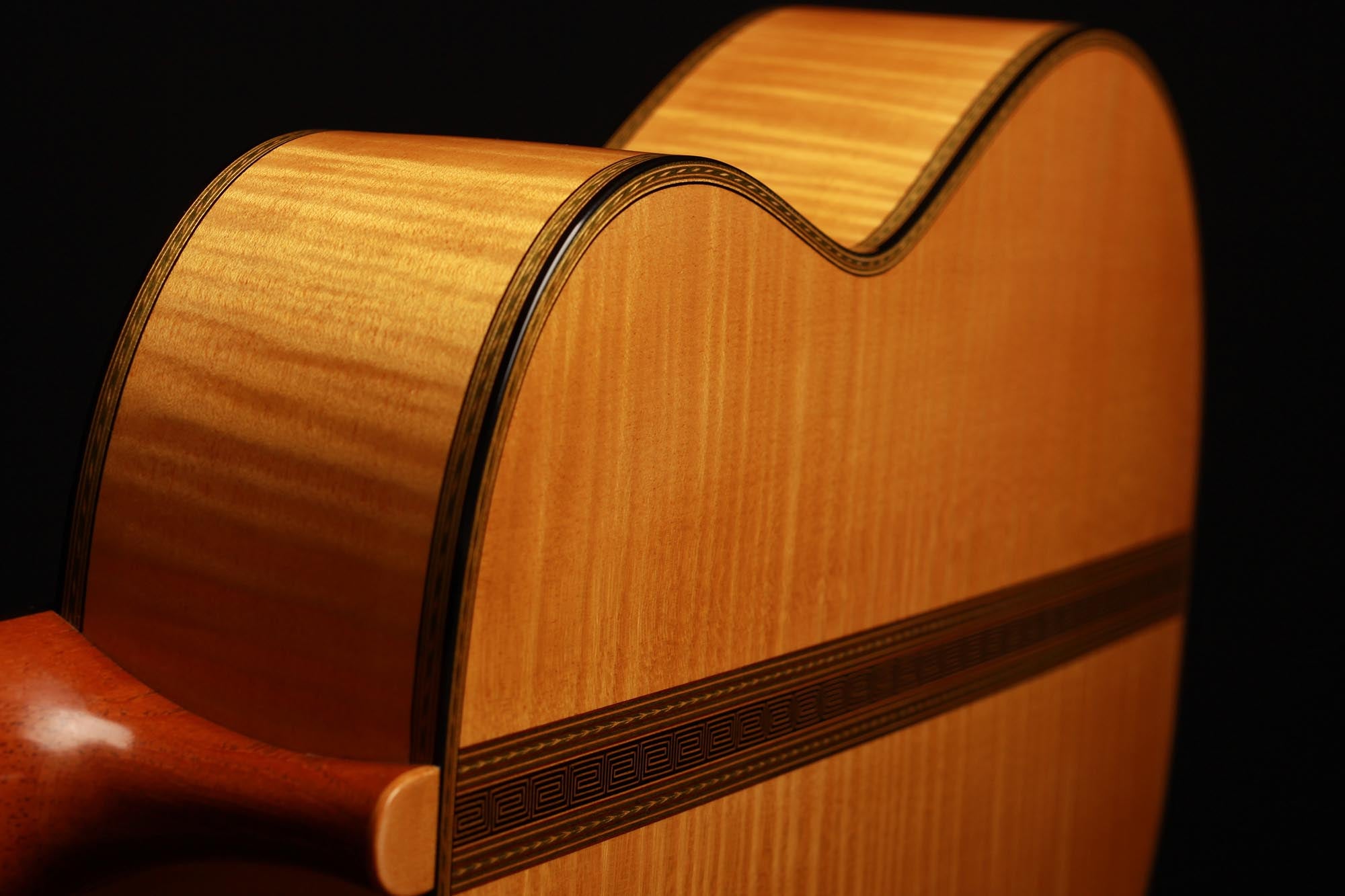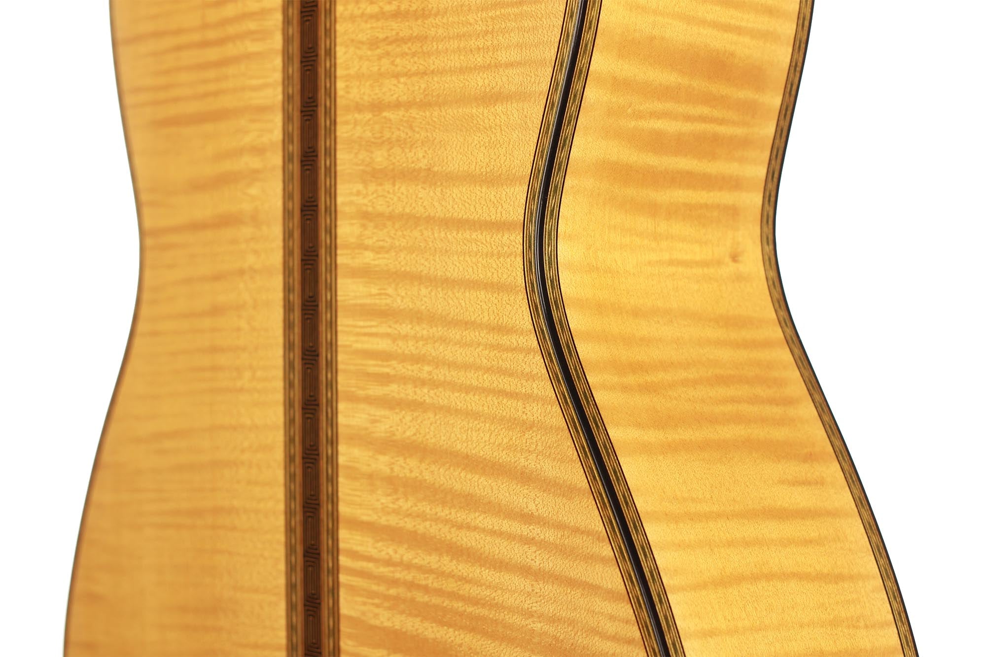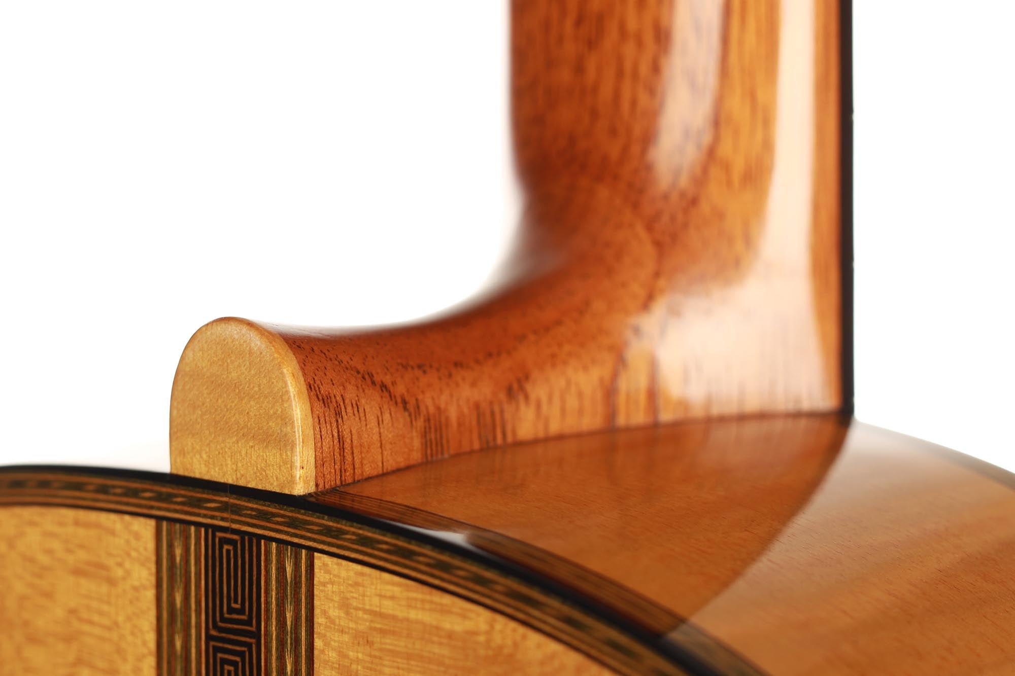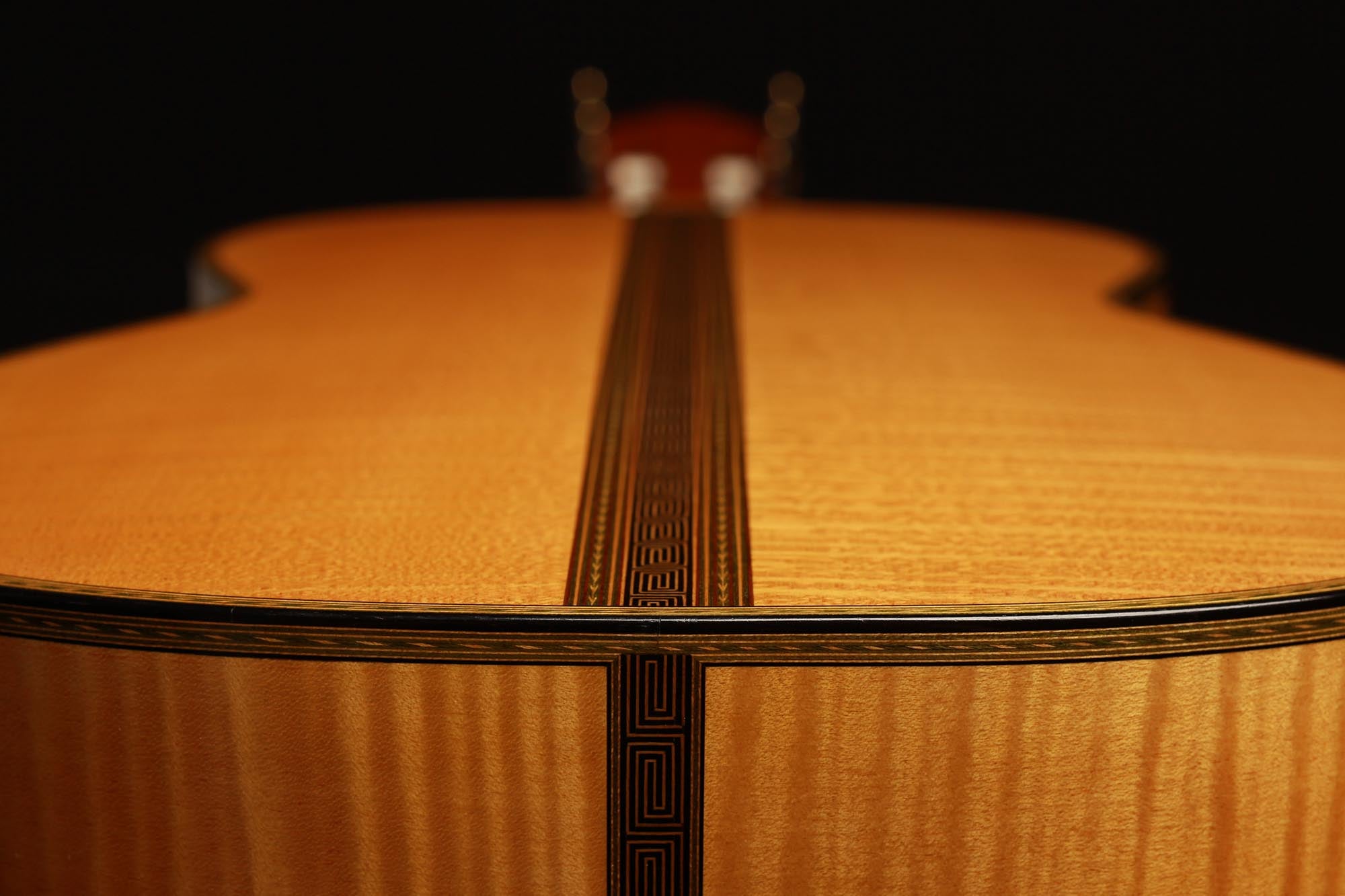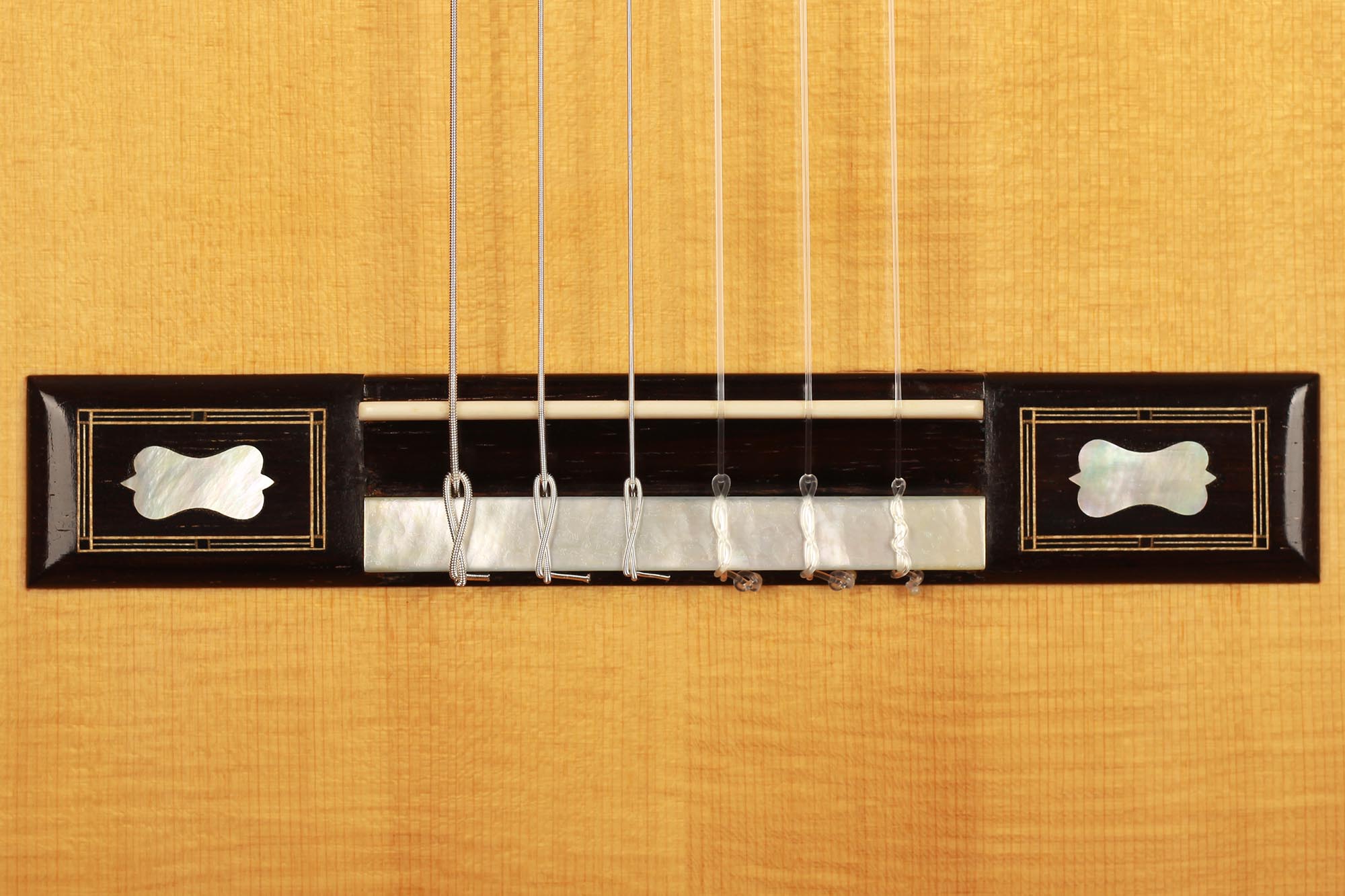 Despite its smaller body shape, this Torres model has great dynamic possibilities and can confidently stand up to guitars with a larger body. She has a beautiful deep voice with velvety texture, rich in overtones and yet very clear overall character. In addition, the playability is perfect so that it can be played with the least effort. This masterpiece is a beautiful tribute to Antonio de Torres built by one of the best North American guitar builders of our time.