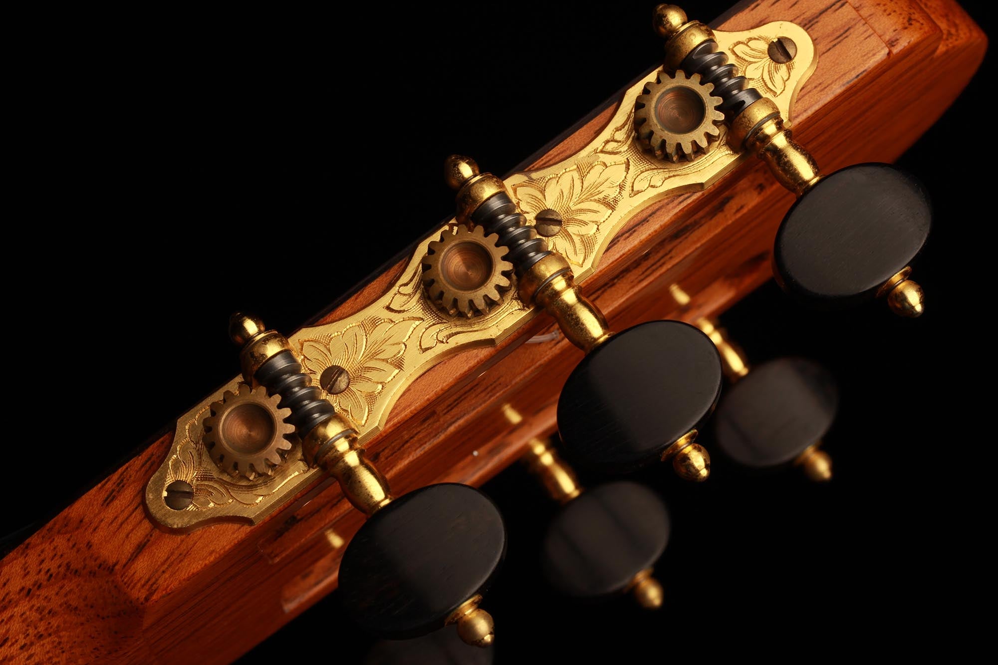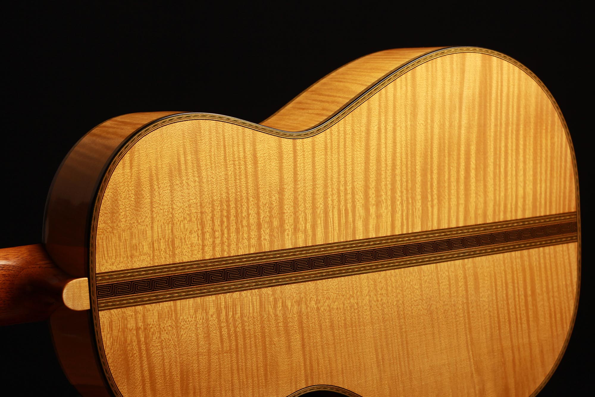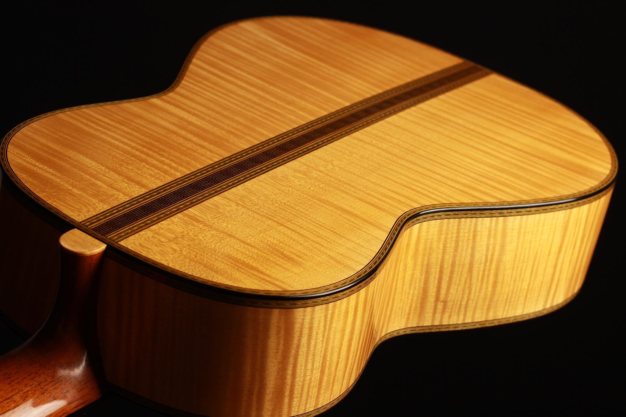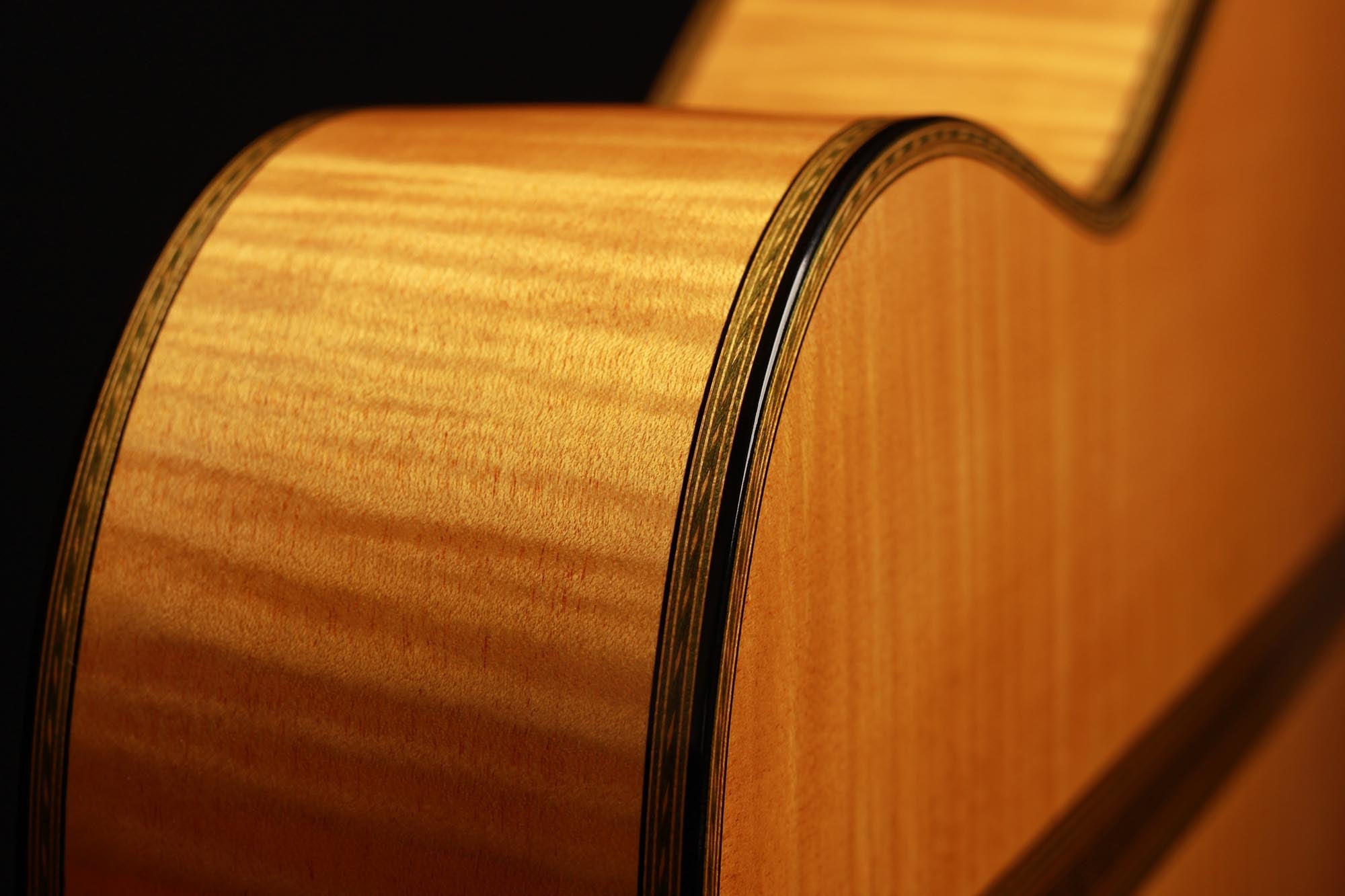 Despite its smaller body shape, this Torres model has great dynamic possibilities and can confidently stand up to guitars with a larger body. She has a beautiful deep voice with velvety texture, rich in overtones and yet very clear overall character. In addition, the playability is perfect so that it can be played with the least effort. This masterpiece is a beautiful tribute to Antonio de Torres built by one of the best North American guitar builders of our time.