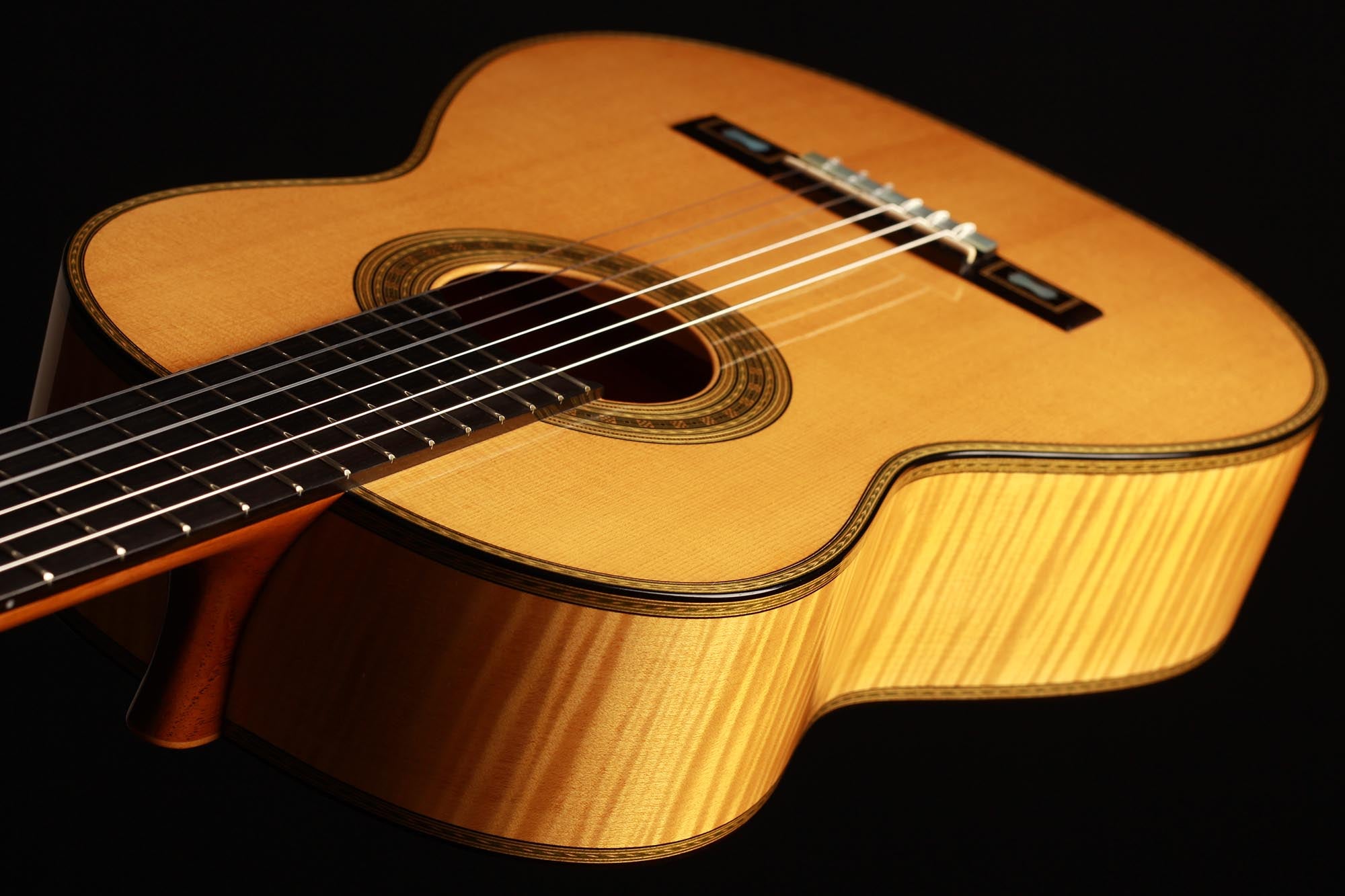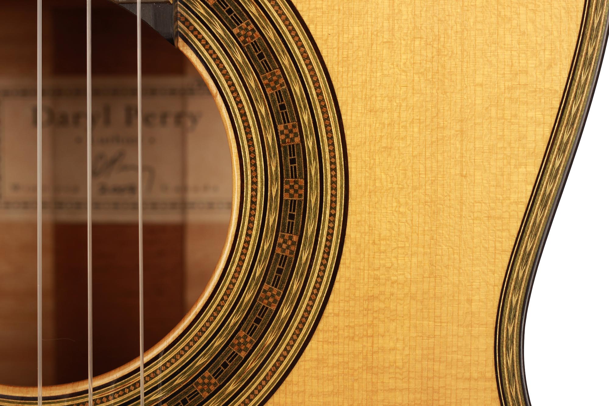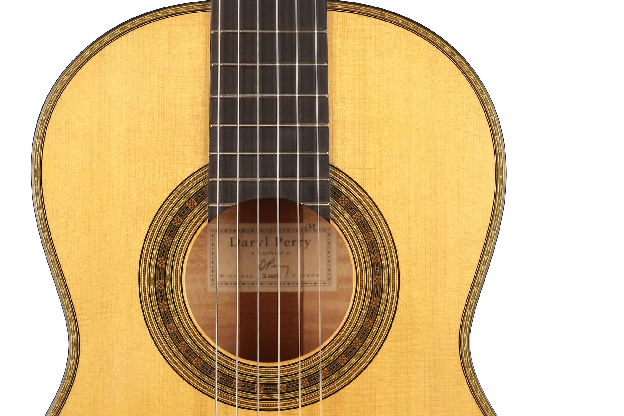 Here is a beautiful guitar from Winnipeg, Canada, made by violin maker Daryl Perry. Since 1982 Daryl has focused on building stringed instruments and is today one of the best makers of classical guitars in Canada. He works in the tradition of the great masters of the 19th and 20th centuries, mainly using hand tools and paying special attention to the characteristics of each piece of wood. Great guitarists like Marcin Dylla play on Daryls Perry guitars and his instruments are well in demand today.