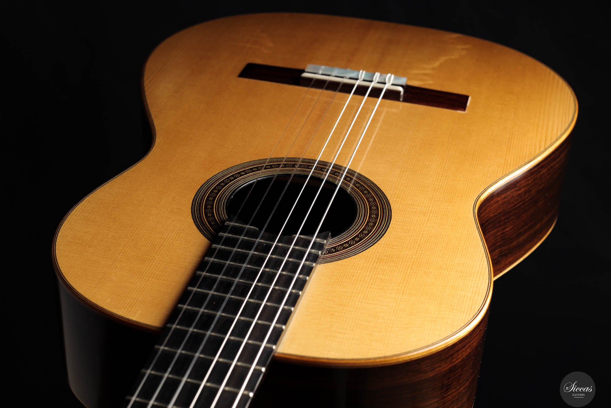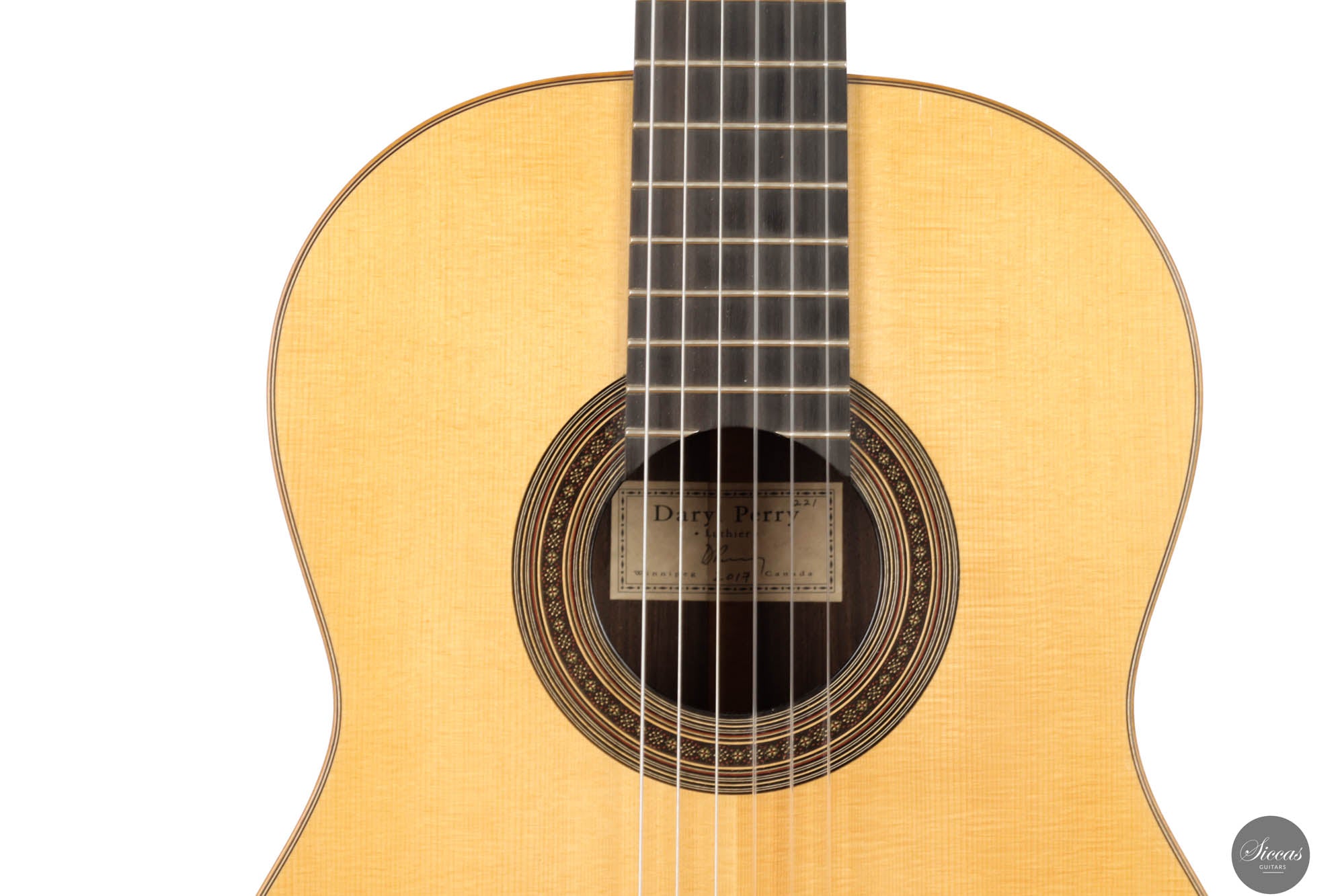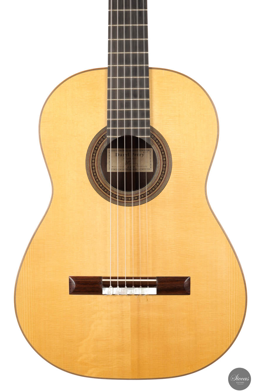 Hier ist eine wunderschöne Gitarre von dem in Winnipeg, Kanada, ansässigen Gitarrenbauer Daryl Perry. Seit 1982 konzentriert sich Daryl auf den Bau von Saiteninstrumenten und ist heute einer der besten kanadischen Hersteller von klassischen Gitarren. Er arbeitet in der Tradition der großen Meister des 19. und 20. Jahrhunderts, verwendet hauptsächlich Handwerkzeuge und achtet besonders auf die Eigenschaften jedes Holzstücks. Große Gitarristen wie Marcin Dylla spielen auf den Gitarren von Daryl Perry, und seine Instrumente sind weltweit sehr gefragt.