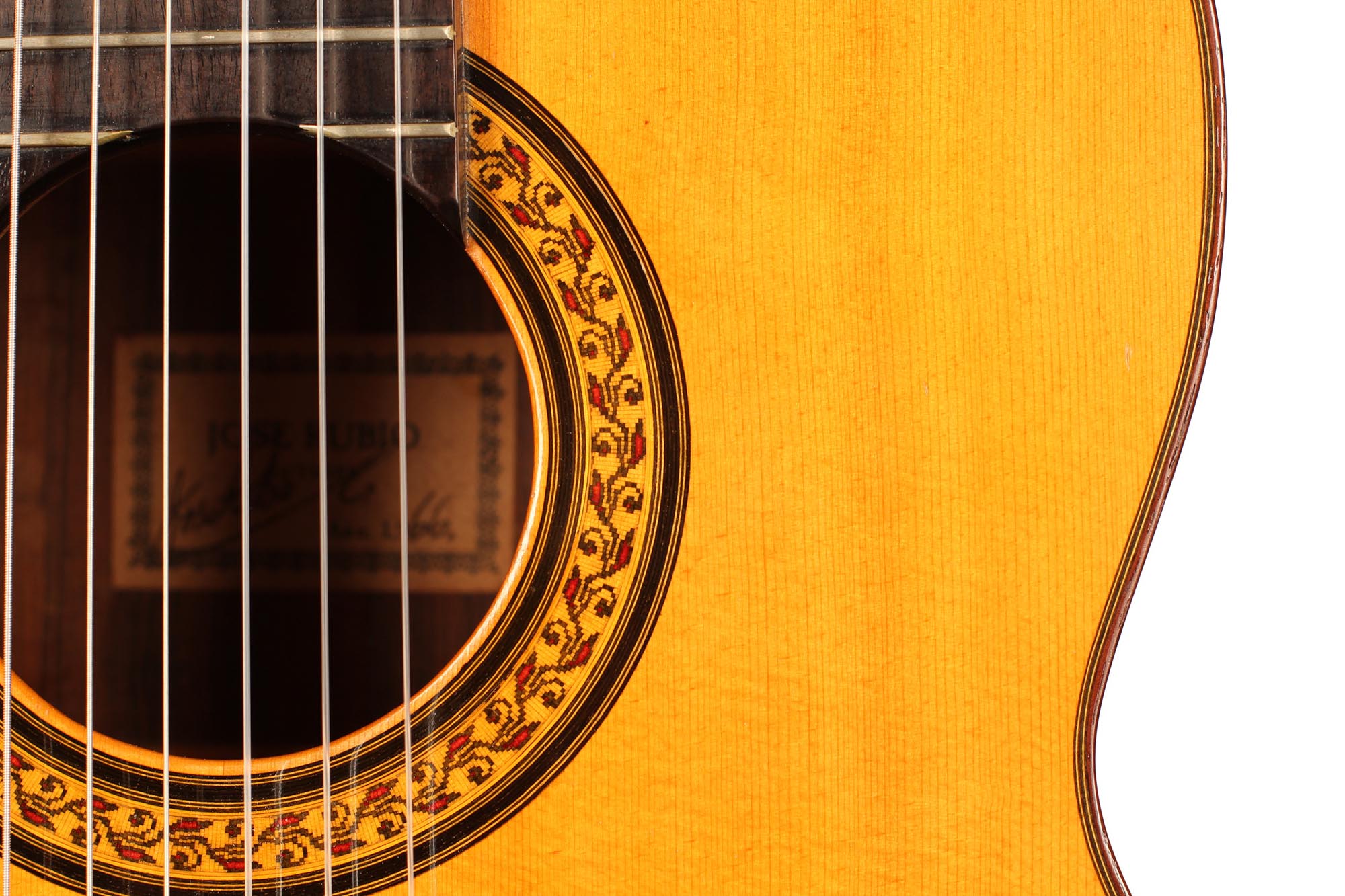 David "José" Rubio ist einer der bekanntesten englischen Gitarrenbauer. Nachdem er nach Sevilla und dann nach Madrid gezogen war, um Flamencogitarre zu lernen, entwickelte er ein starkes Interesse am Gitarrenbau. In New York, USA, eröffnete er 1963 seine erste eigene Werkstatt. Sein erstes Treffen mit Julian Bream fand einige Monate später statt und ist der Ausgangspunkt einer engen Freundschaft. Julian Bream spielte mehrere von Rubios Gitarren, eine sehr ähnliche Gitarre wie diese: ein Instrument von 1966, auf dem er "Julian Bream and his Friends" (1968) aufnahm. Ab 1967 zog D. J. Rubio zurück nach England. Er blieb bis 1969 in Julian Breams Haus in Semley, bevor er 1969 eine Werkstatt in der Nähe von Oxford eröffnete. Er baute nicht nur Gitarren, sondern auch Lauten (gespielt von Julian Bream), Vihuelas, Theorben, Cembalos, Violas da Gamba, Barockgitarren, etc. In den 1980er Jahren verlegte er seine Werkstatt nach Cambridge.