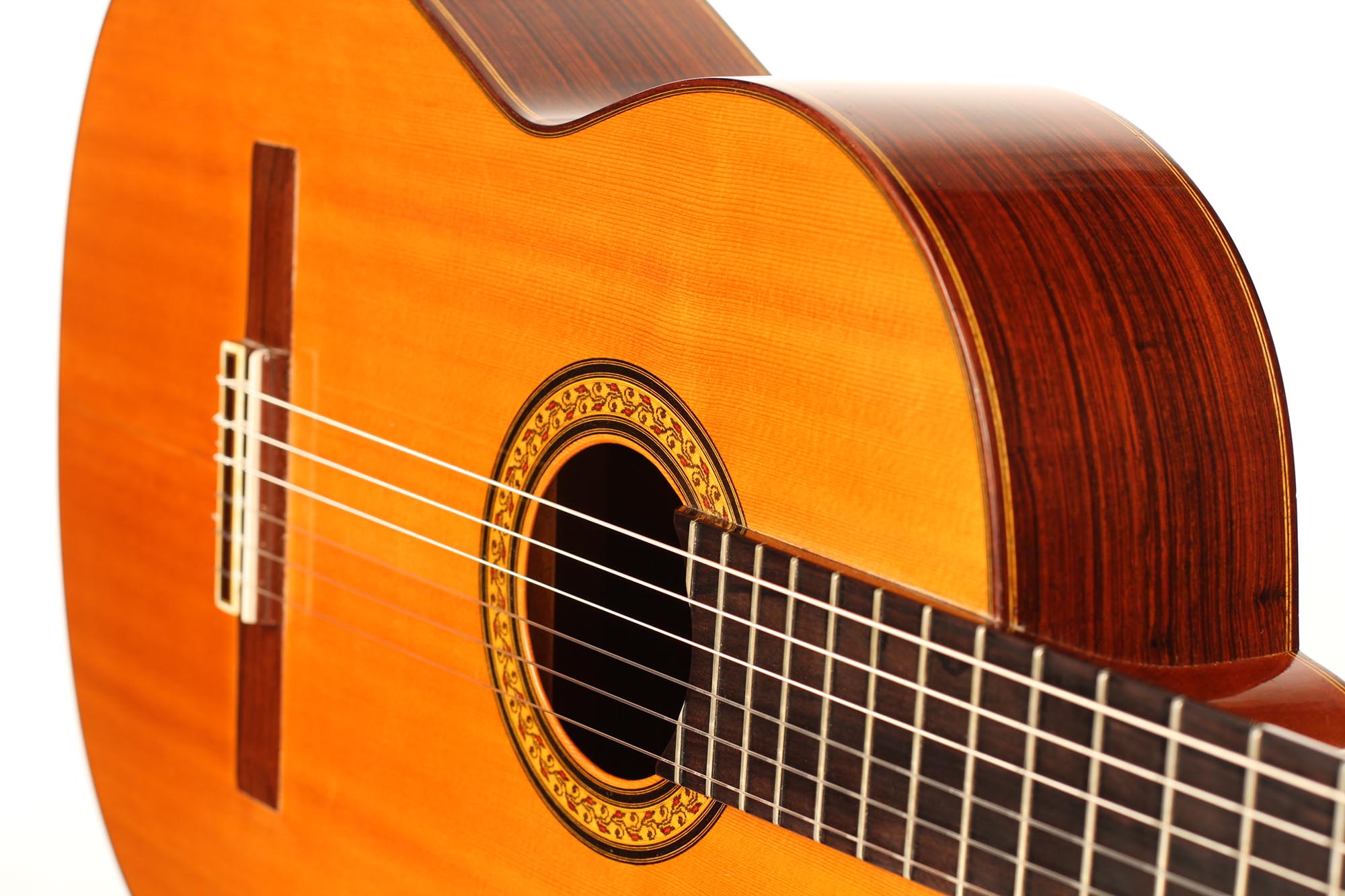 Die klassische Gitarre mit ihren weichen Nylonsaiten und ihrem charakteristischen Timbre ist zum Symbol der Kammermusik, der spanischen Tradition und des Konzertrepertoires geworden. Ihre moderne Form prägte Antonio de Torres im 19. Jahrhundert, indem er den Standard für Korpus, Fächerbeleistung und die 65-Zentimeter-Mensur setzte, die bis heute verwendet werden. Instrumente dieser Kategorie eröffnen eine reiche Palette von den feinen romantischen Miniaturen Tárregas bis zu den majestätischen Konzerten Rodrigos. Hier finden Sie Gitarren, die historische Kontinuität bewahren und zugleich zu neuen Interpretationen anregen.