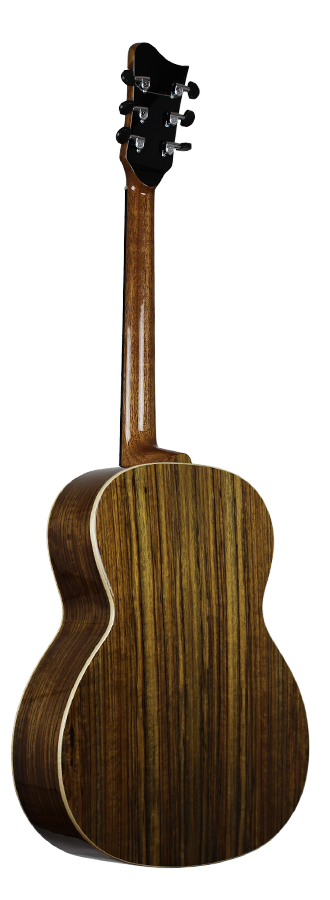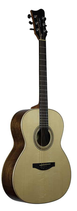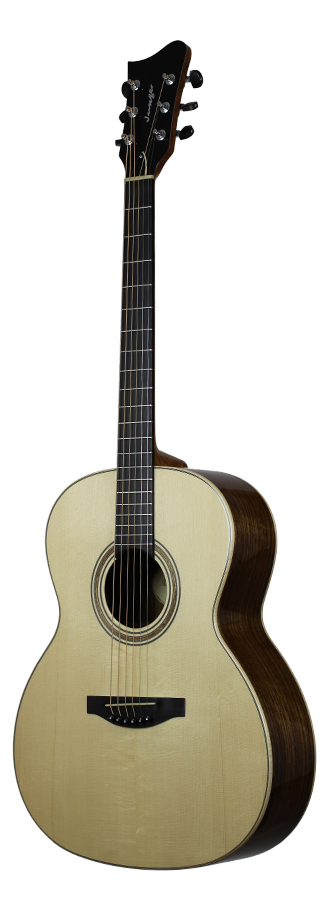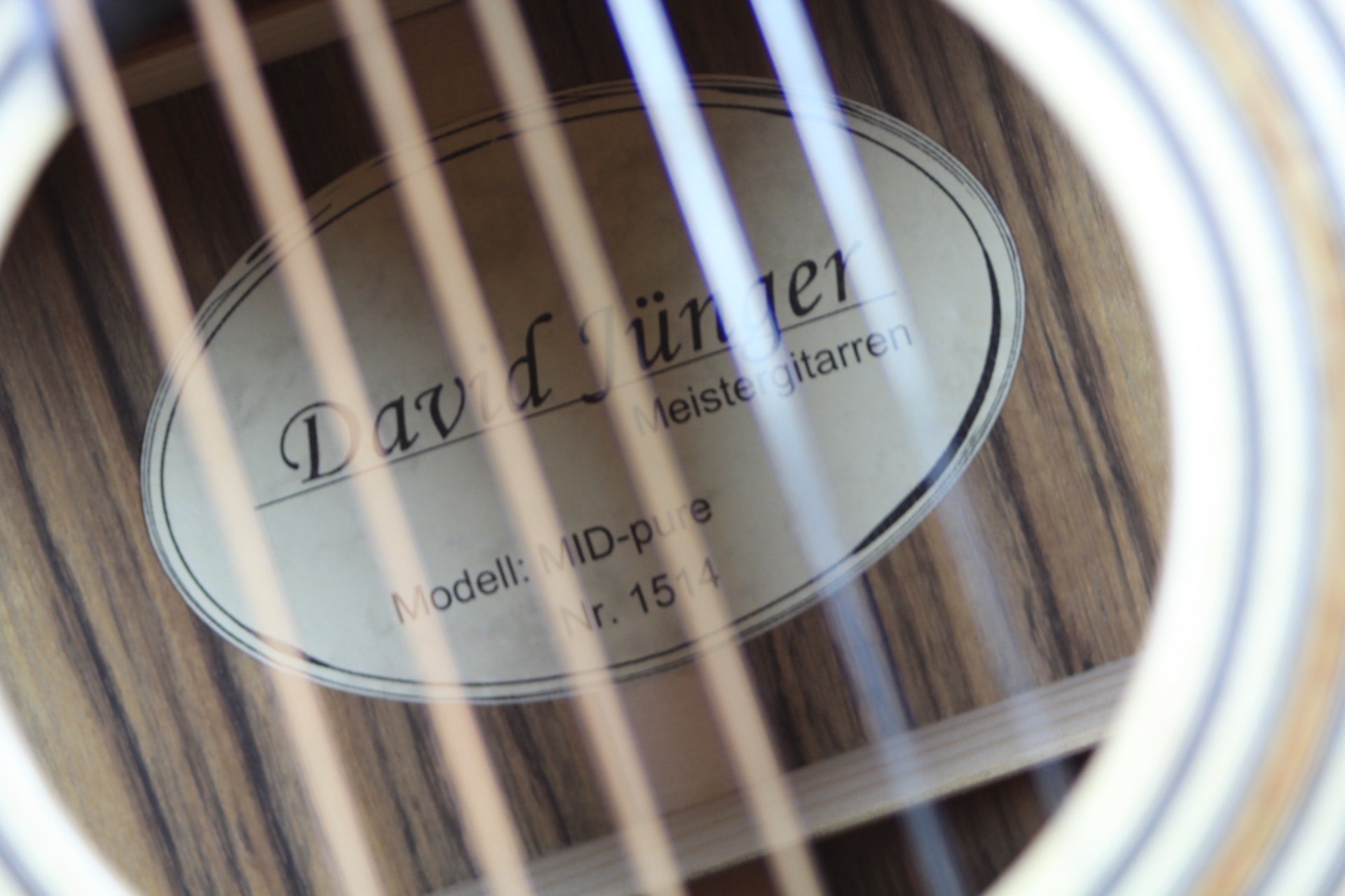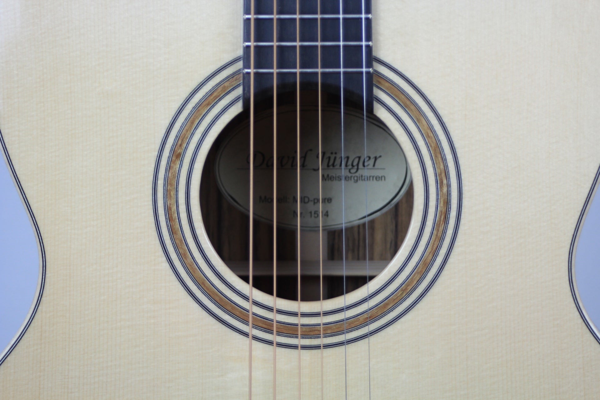 David Jünger ist ein junger und ambitionierter Gitarrenbauer, der sich auf die Fertigung von handgebauten Steelstring Gitarren sowie Archtop Jazzgitarren spezialisiert hat. Das Studium des Zupfinstrumentenbaus (Bachelor of Arts) schloss er mit Auszeichnung ab, kurz darauf folgte der Meistertitel. Das Modell MID-pure zeichnet sich durch seinen ausgewogenen Klang sowie sein klares Design aus. Auf aufwendige Verzierungen wurde bei diesem Basis-Modell verzichtet, nicht jedoch auf klangbildende Aspekte. Die Korpusgröße ist etwas breiter als bei einem OM Modell. Dadurch ist sie leicht zu bespielen und bietet gleichzeitig ein ausreichend großes Volumen für einen kräftigen Klang. Die modifizierte X-Beleistung ist ideal auf die fein ausgearbeitete Alpenfichtendecke abgestimmt. Das schön gemaserte Ovangkol für Boden und Zargen unterstützt das ausgewogene Klangbild. Mit einer Breite von 44 mm am Sattel liegt der schlanke Mahagonihals sehr gut in der Hand. Die hauchdünn ausgeführte Nitrozellulose-Lackierung bietet ausreichenden Schutz, ohne das Instrument zu bedämpfen. Inklusive is ein perfekt passender Koffer von Hiscox.