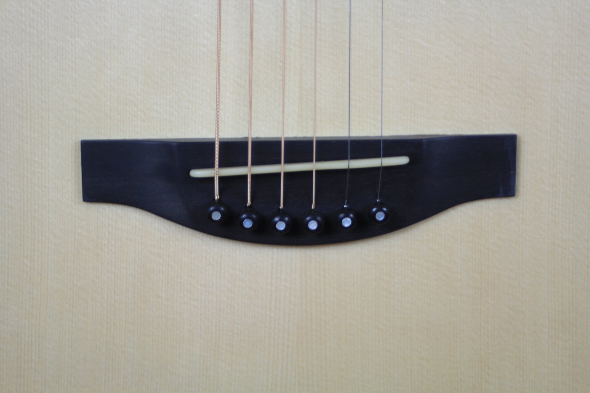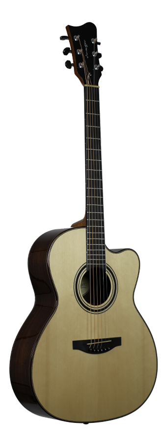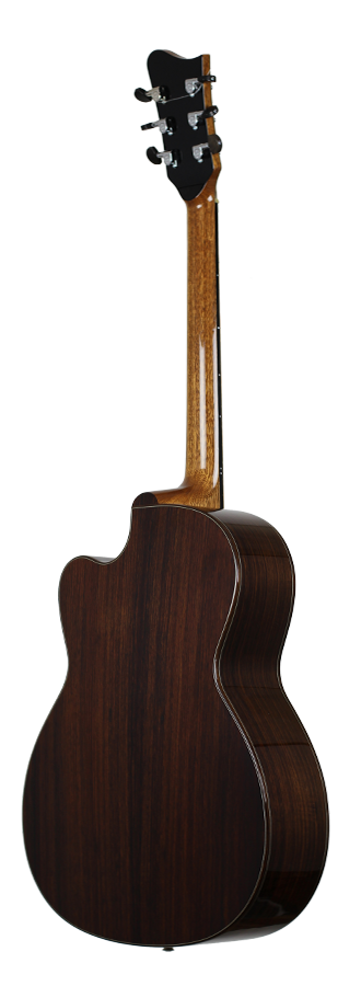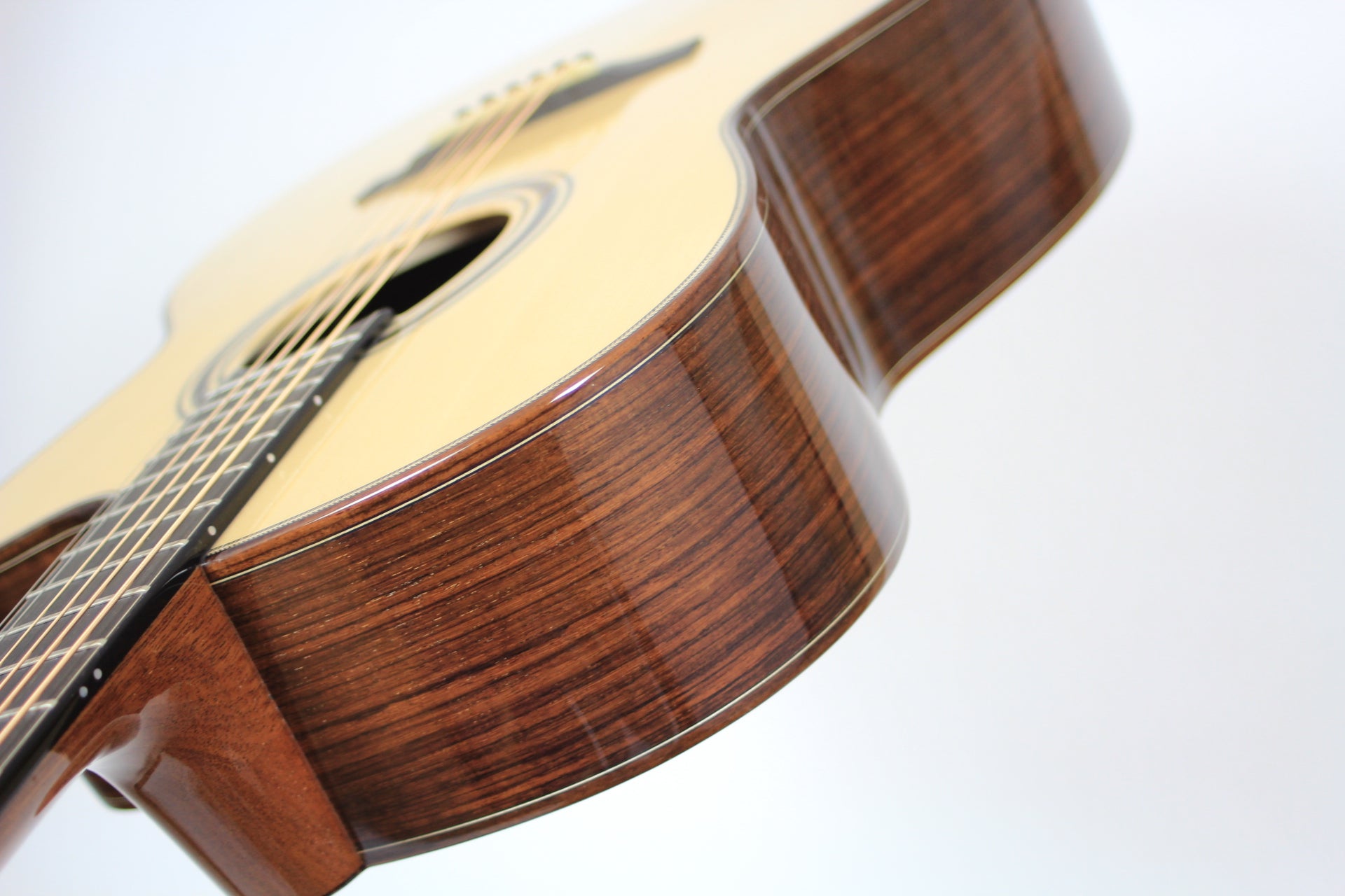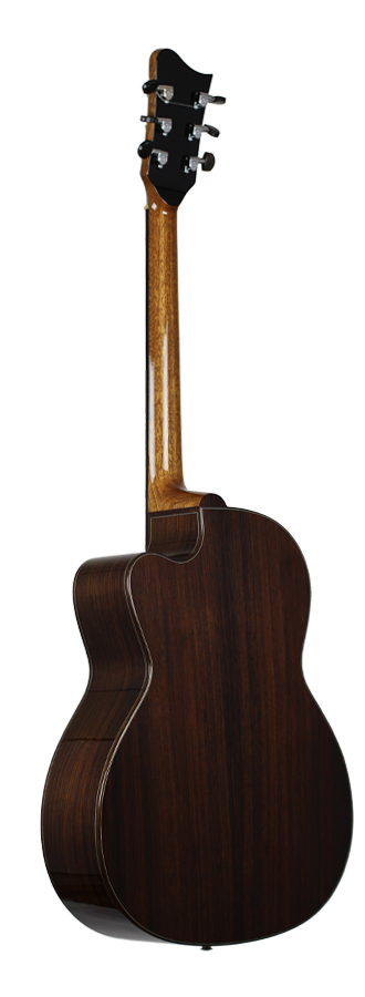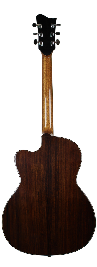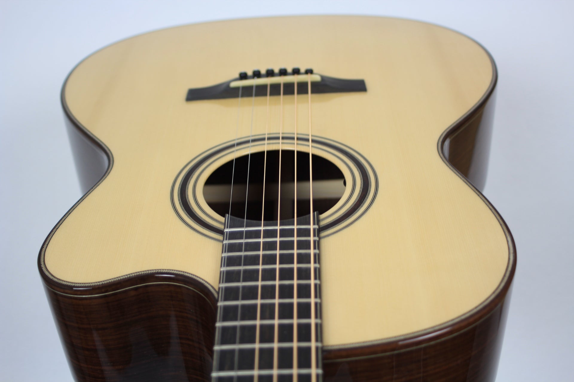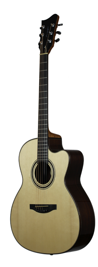David Jünger ist ein junger und ambitionierter Gitarrenbauer, der sich auf die Fertigung von handgebauten Steelstring Gitarren sowie Archtop Jazzgitarren spezialisiert hat. Das Studium des Zupfinstrumentenbaus (Bachelor of Arts) schloss er mit Auszeichnung ab, kurz darauf folgte der Meistertitel. Das Modell MID-standard zeichnet sich durch seinen ausgewogenen Klang sowie durch die feinen Verzierungen aus. Die Korpusgröße ist etwas breiter als bei einem OM Modell. Dadurch ist sie leicht zu bespielen und bietet gleichzeitig ein ausreichend großes Volumen für einen kräftigen Klang. Die modifizierte X-Beleistung ist ideal auf die fein ausgearbeitete Alpenfichtendecke abgestimmt. Der feinjährige ostindische Palisander für Boden und Zargen unterstützt das ausgewogene Klangbild. Mit einer Breite von 44 mm am Sattel liegt der schlanke Mahagonihals sehr gut in der Hand. Die hauchdünn ausgeführte Nitrozellulose-Lackierung bietet ausreichenden Schutz, ohne das Instrument zu bedämpfen. Eingebaut ist das sehr natürlich klingende Schattesdesign HFN Active VT Tonabnehmersystem, dessen Ton- und Volumenregler vom Schallloch aus gut zu erreichen sind. Inklusive is ein ferfekt passender Koffer von Hiscox.