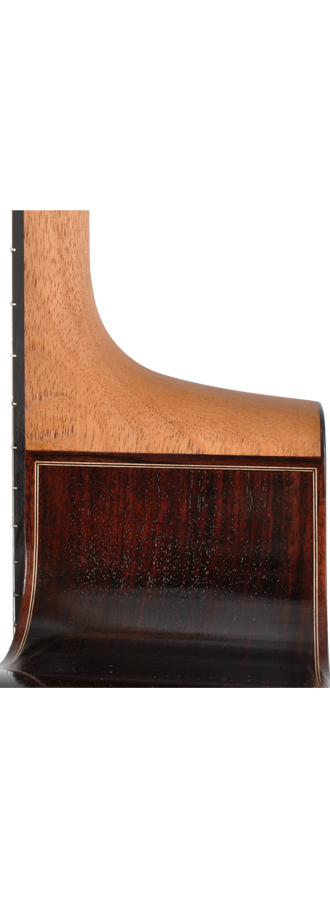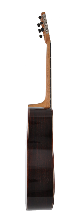 Ein großes Klangvolumen sowie ausgeprägte Bässe zeichnen dieses Jazz-Modell aus. Die Kombination aus hohen Zargen, einer dünn ausgearbeiteten Fichtendecke und der modifizierte Beleistung führen zu dem kräftigen Klangbild. Die Mechaniken an der durchbrochenen Kopfplatte stammen von Rubner. Boden sowie Zargen sind aus feinem ostindischem Palisander gefertigt. Der sehr leichte Hals aus Cedro wurde nicht lackiert, sondern mit einem Hartwachs versiegelt, wodurch ein sehr angenehmes, natürliches Griffgefühl entsteht. Der Korpus wurde mit einer offenporigen Schellack Handpolitur veredelt.