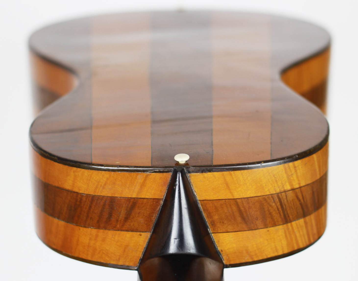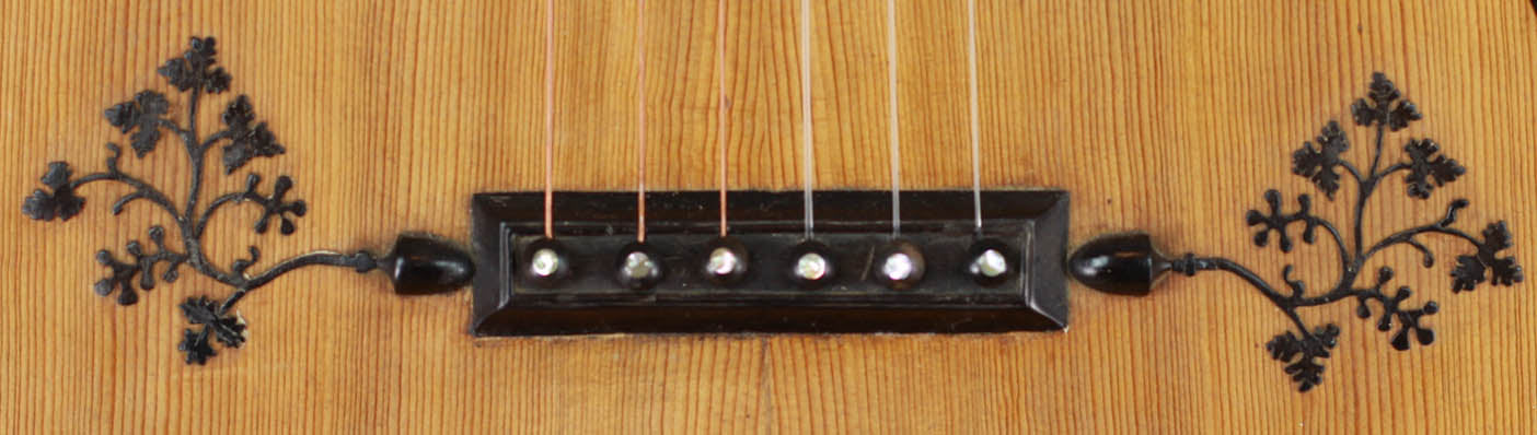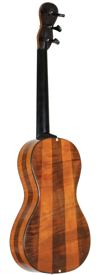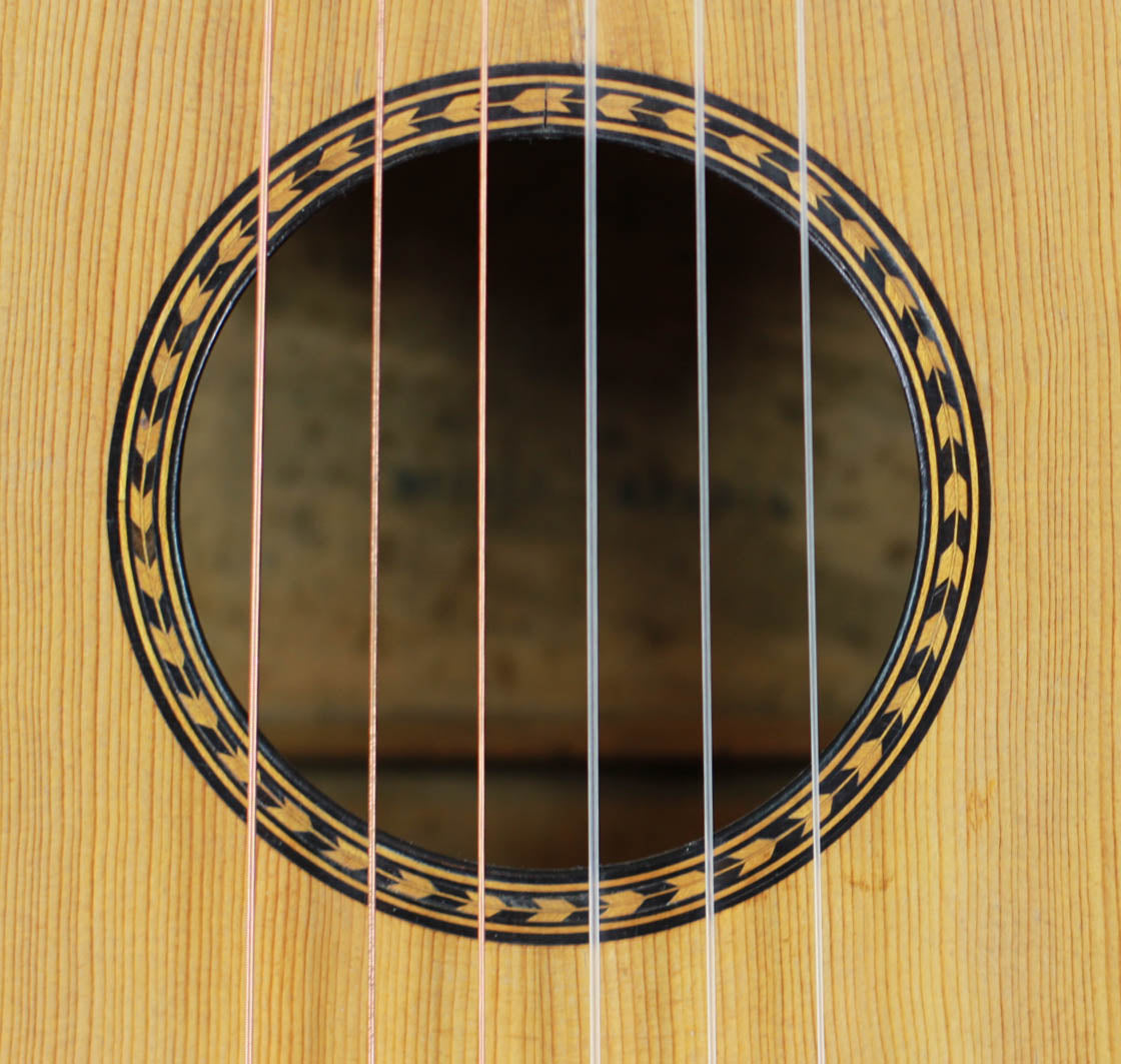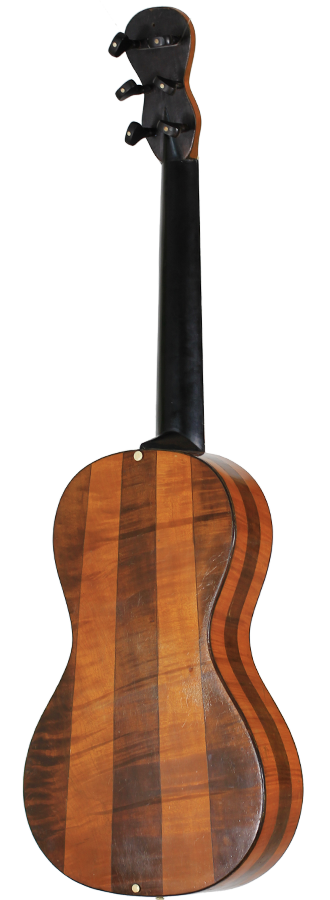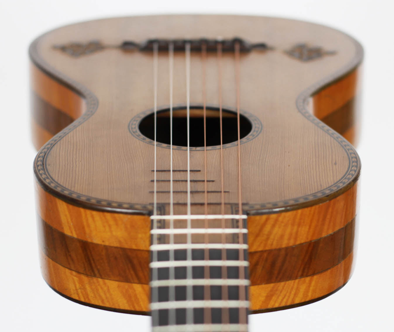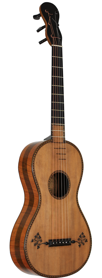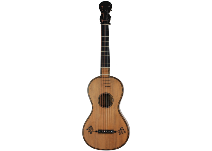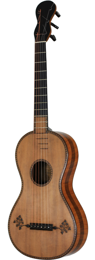 Didier baute diese romantische Gitarre um 1815. Diese Gitarre ist mit "Didier à Paris" gestempelt. Der rechteckige Ebenholzsteg ist mit Ranken verziert, die vom Steg wegführen: Zu sehen sind Weinreben. Dieses 'Weinrebenmotiv' war sehr populär in Mirecourt und ersetzte das in den Jahren zuvor häufig verwendet 'Blumenmotiv'. Der Boden und die Zargen der Gitarre sind aus massivem Ahorn und die Decke ist aus Fichte. Die Gitarre befindet sich in einem sehr guten Zustand und ist spielbereit.