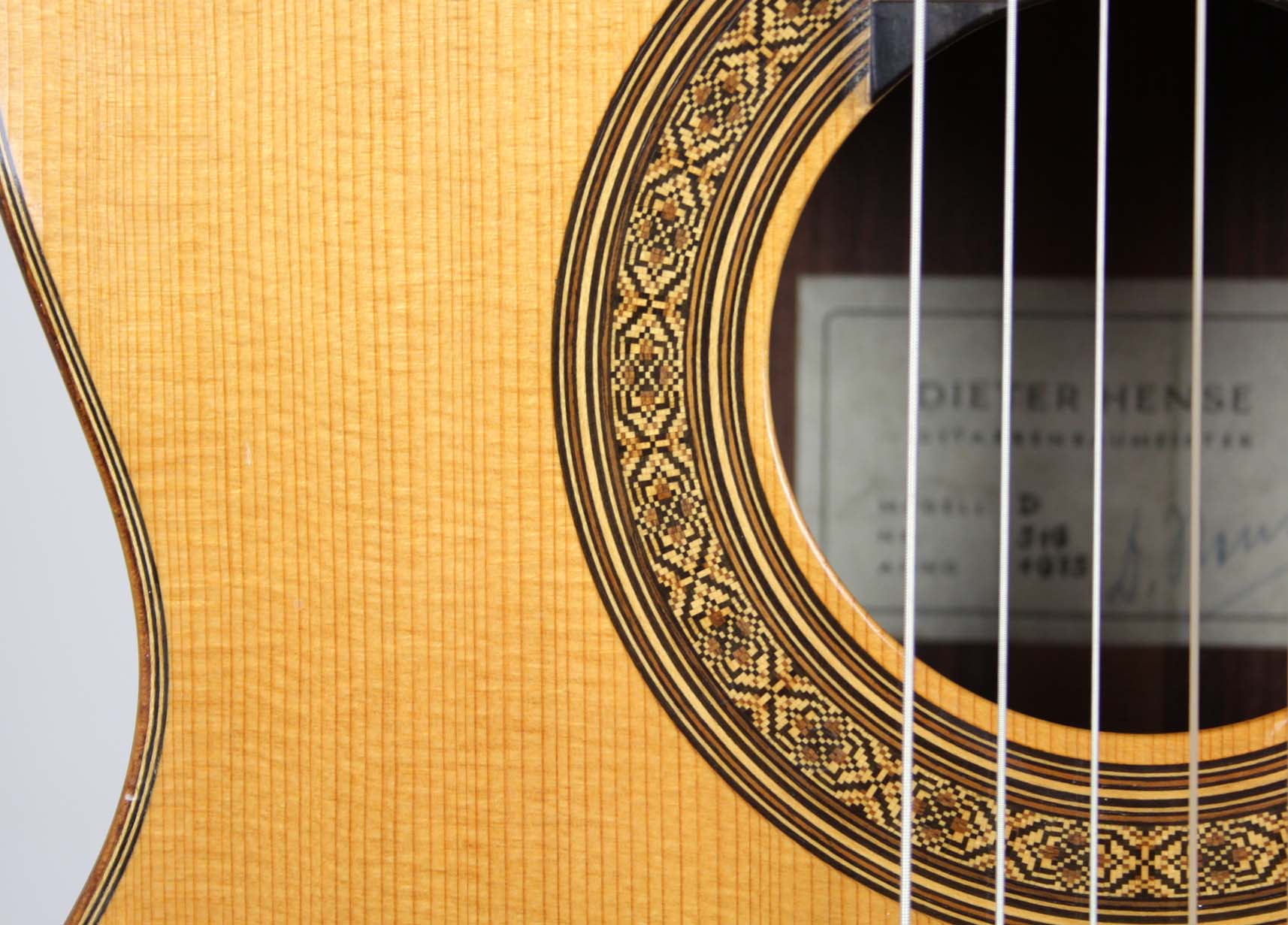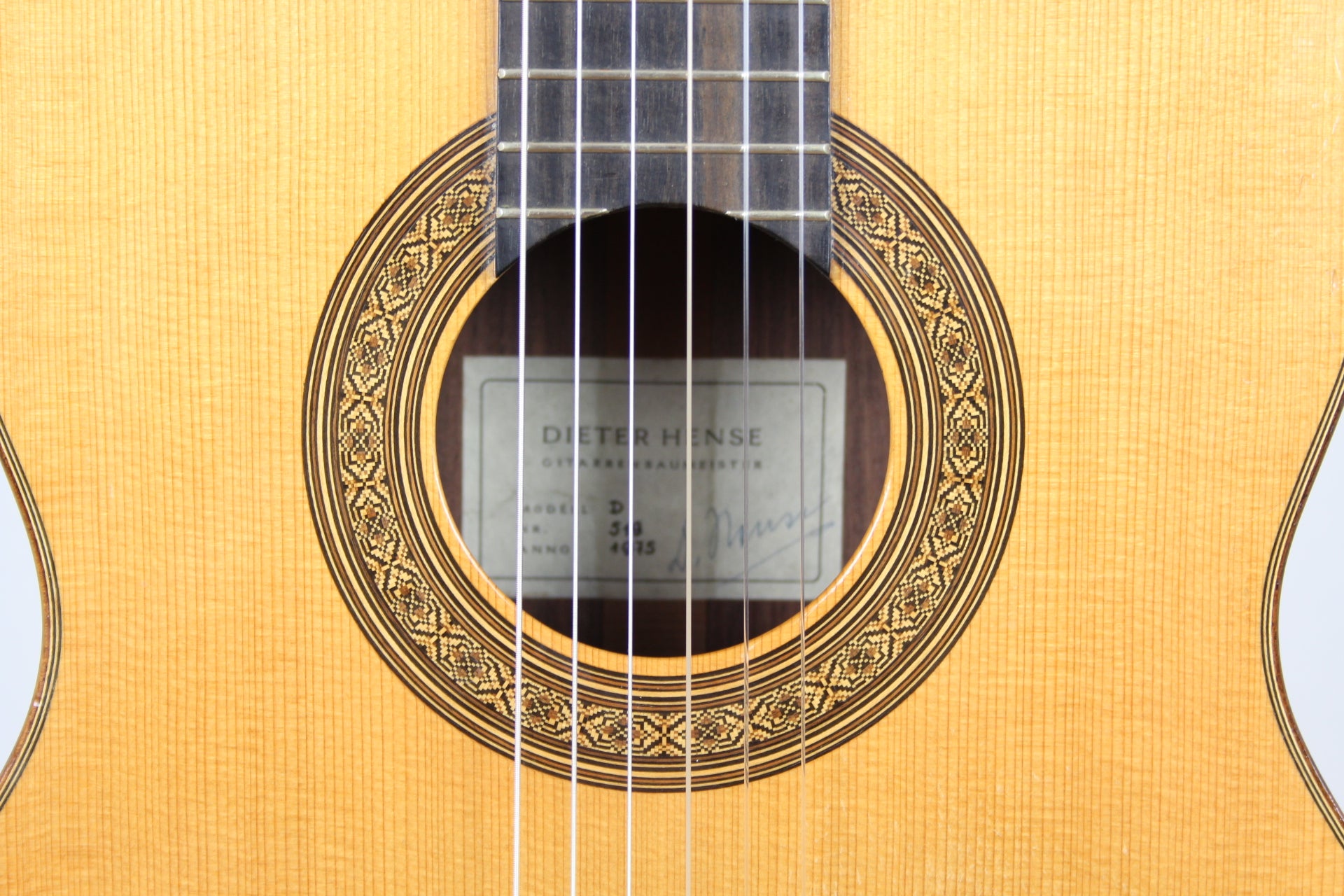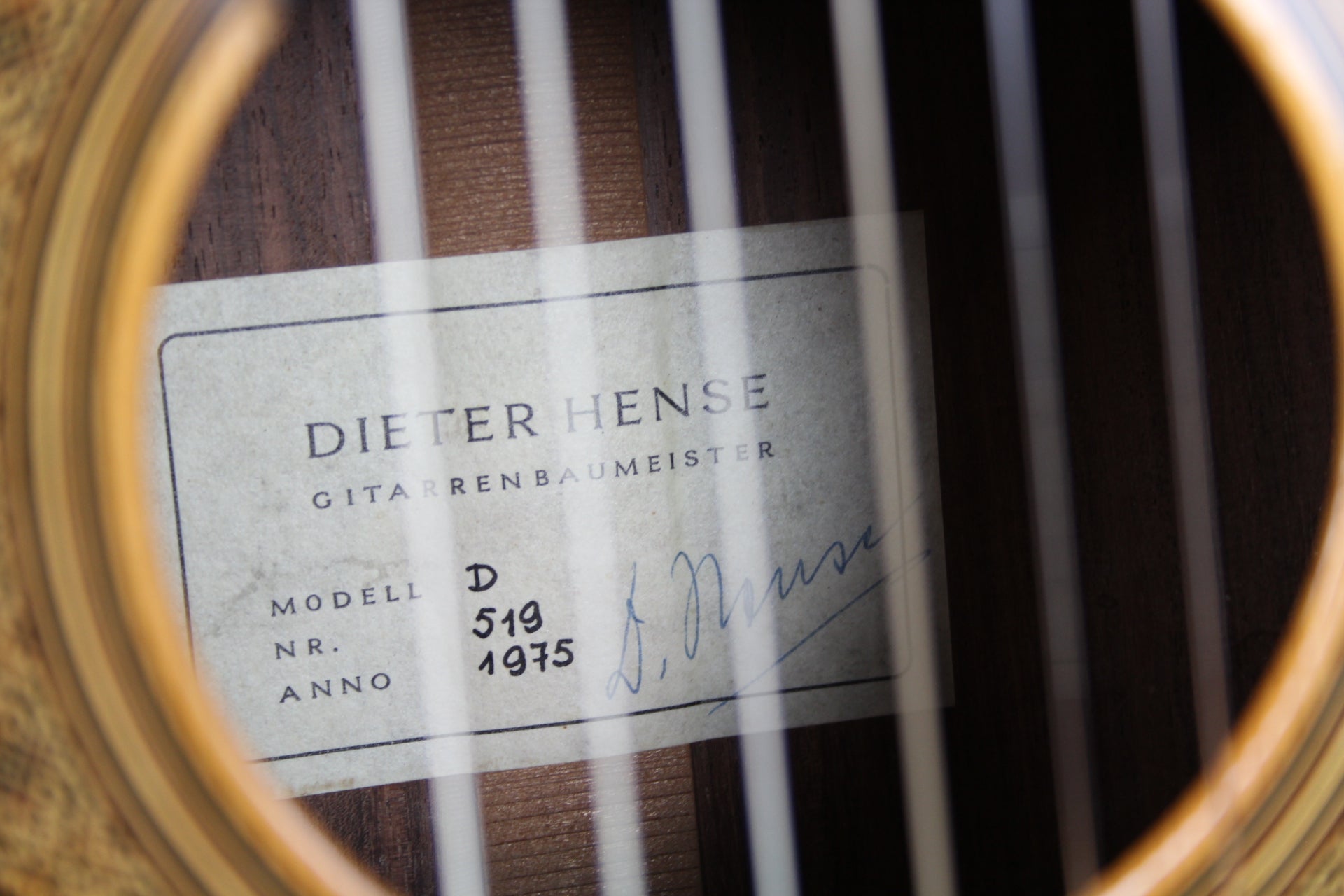 Dieter Hense was born in 1929 and started in the early 1960's to build guitars. He worked sometimes for Hopf but worked mainly for his own in his workshop. This guitar was made in 1975 and is in remarkable condition. The finish seems to be original and the guitar has no cracks. Of course there are some signs visible. The machine heads are not original and were replaced by single machine heads.