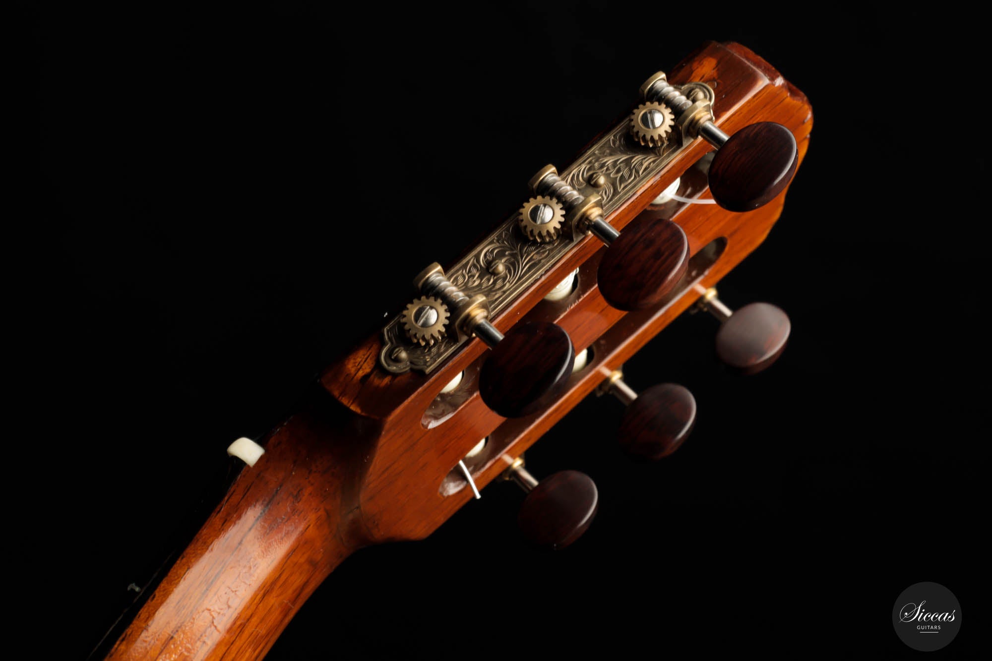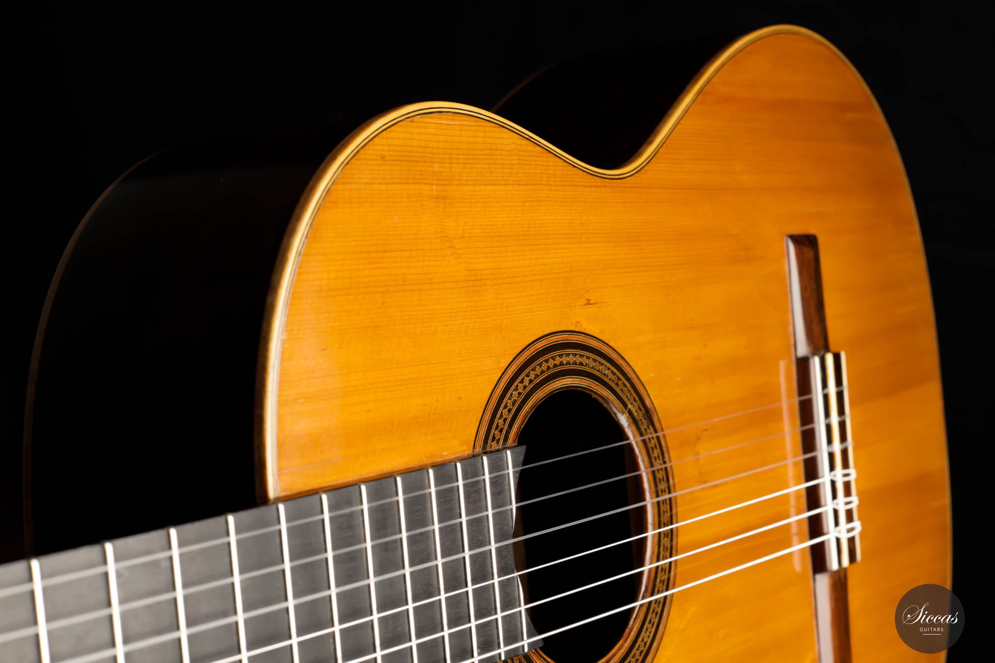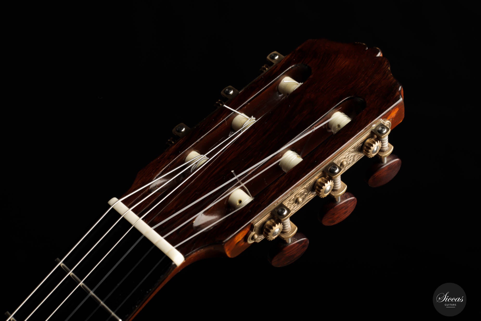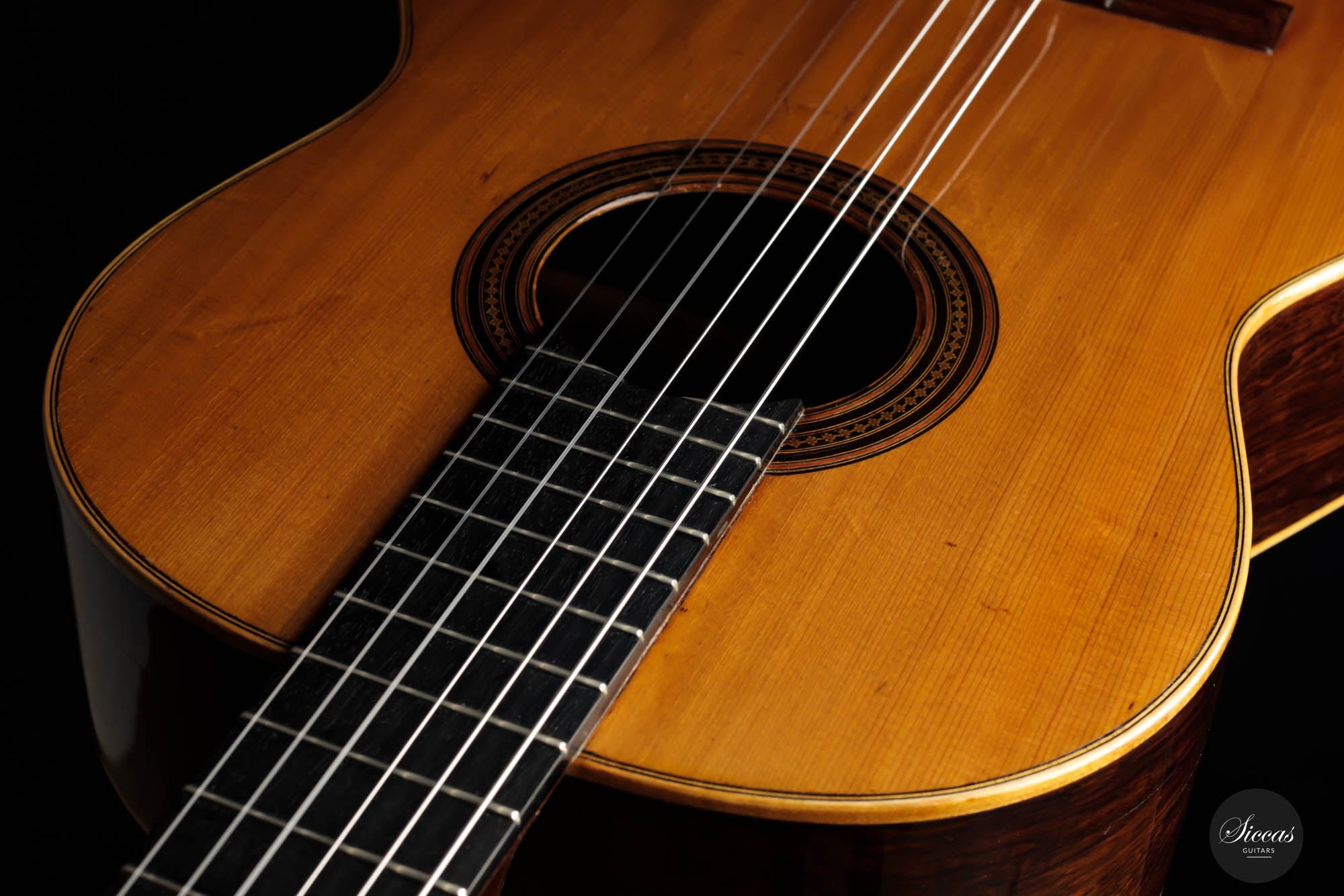 Furthermore, the finish was retouched with French polish, yet keeping the original one underneath. Acoustically, this guitar is magical. The deep and dark basses, complimented by soulful and singing trebles, clearly shows Domingo Esteso's legendary status as one of the best luthiers ever.