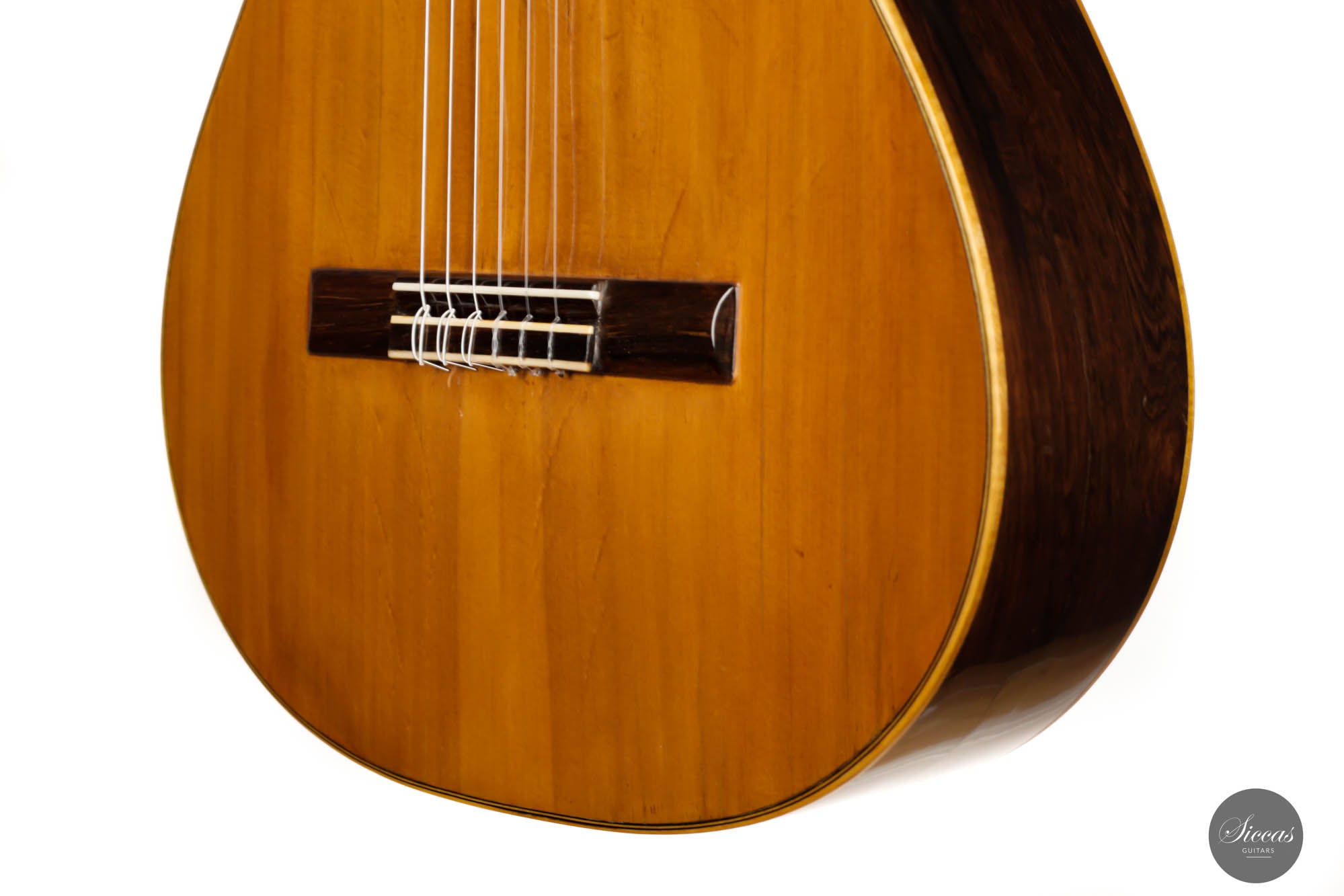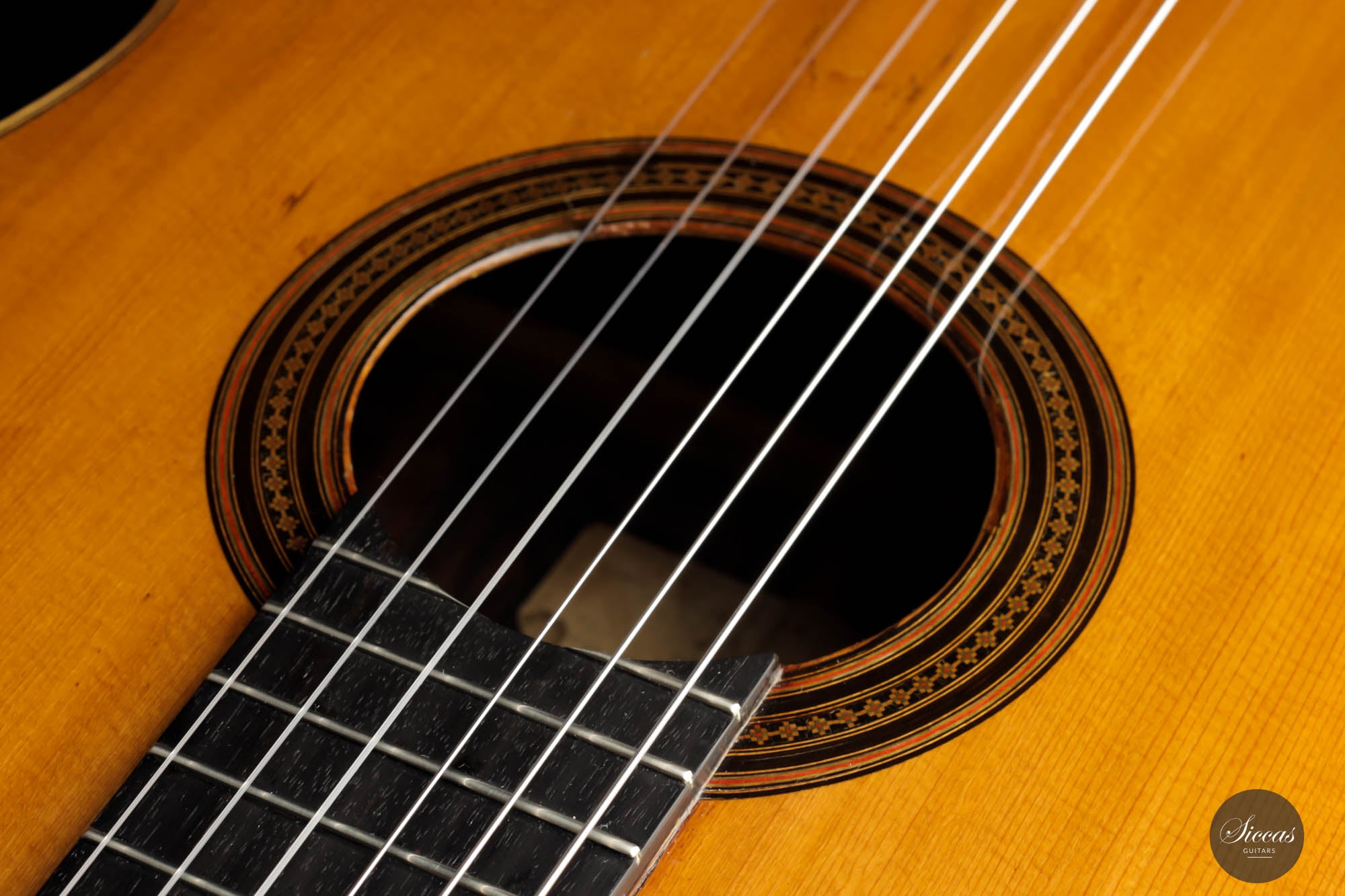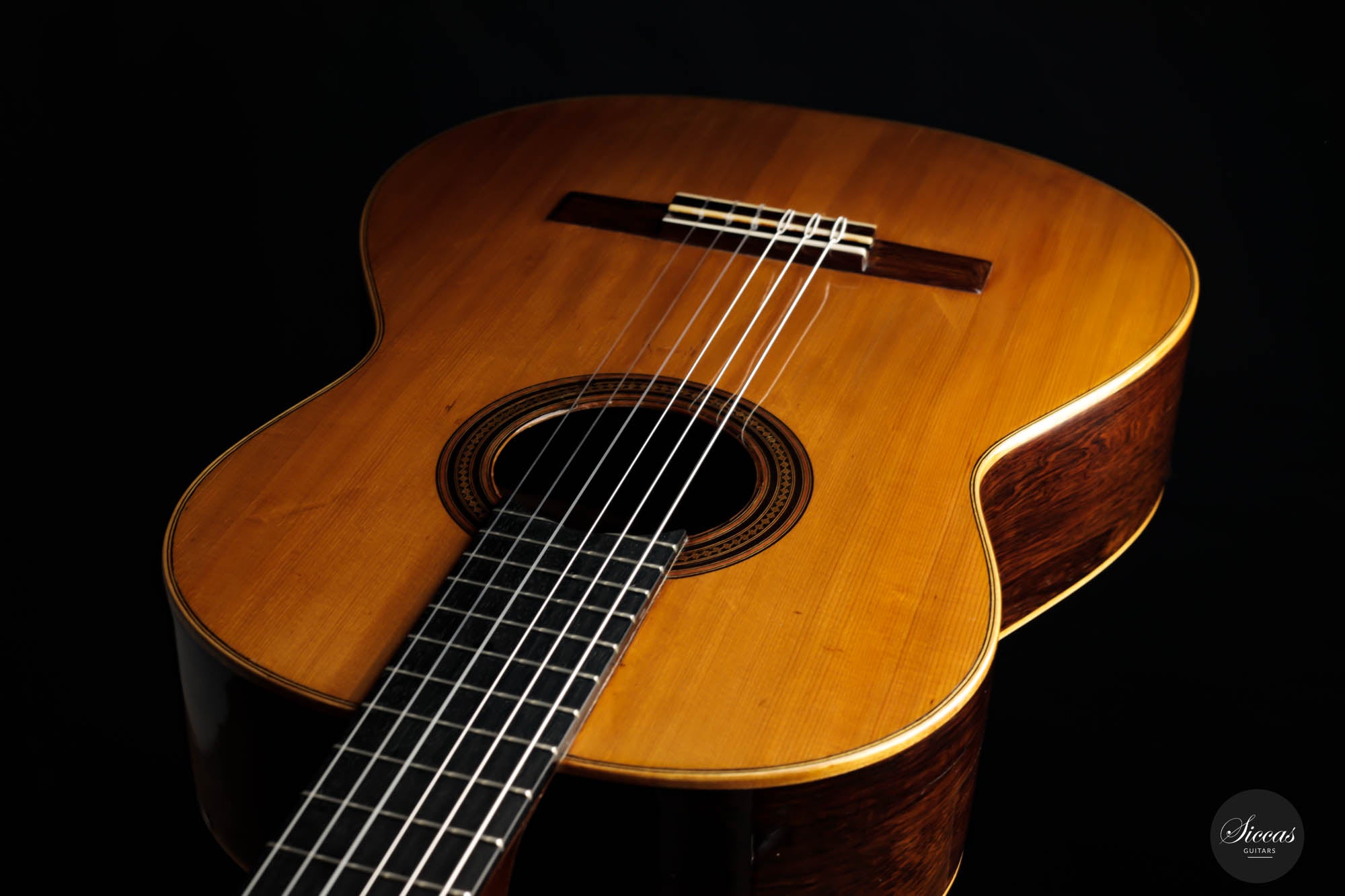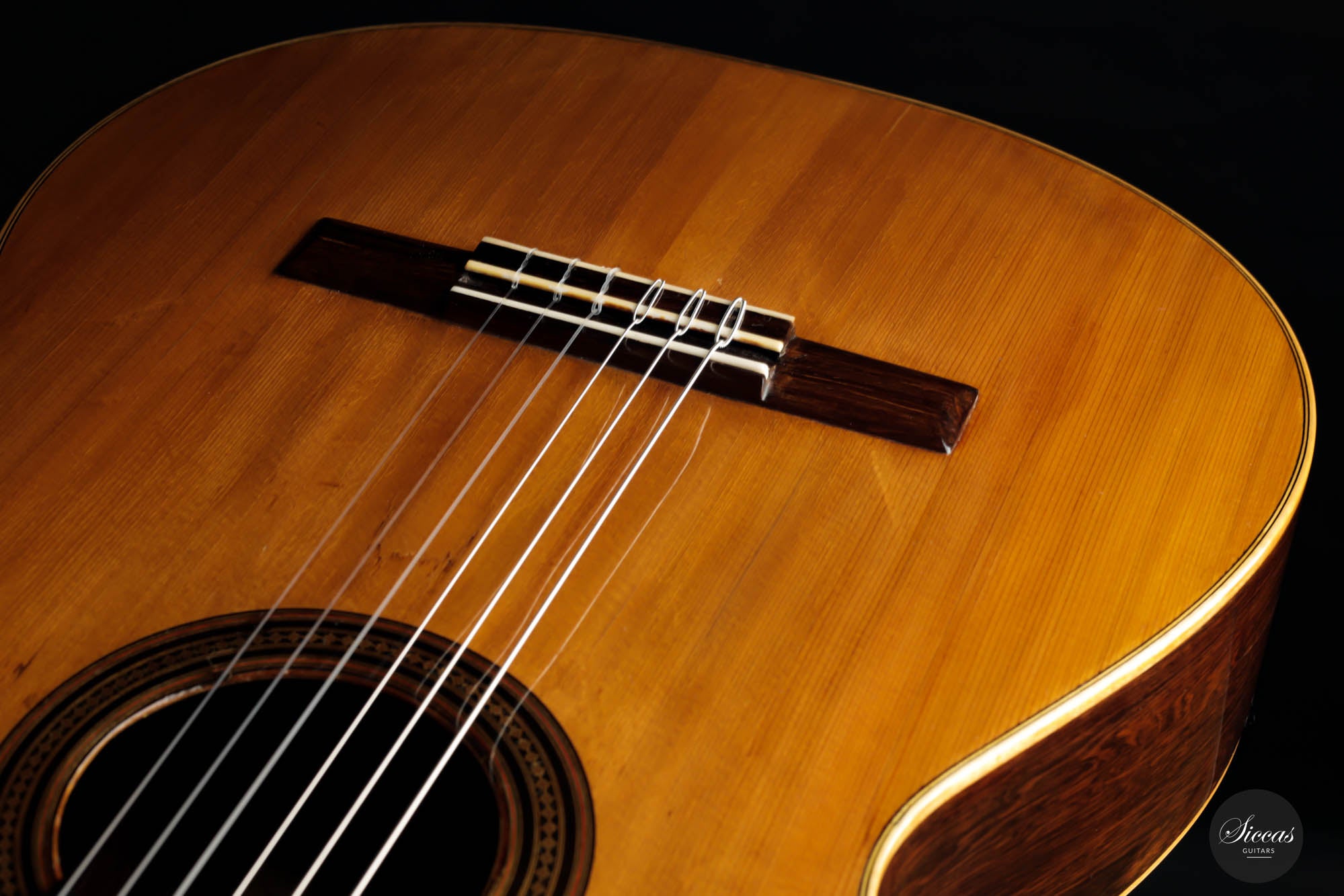 Furthermore, the finish was retouched with French polish, yet keeping the original one underneath. Acoustically, this guitar is magical. The deep and dark basses, complimented by soulful and singing trebles, clearly shows Domingo Esteso's legendary status as one of the best luthiers ever.