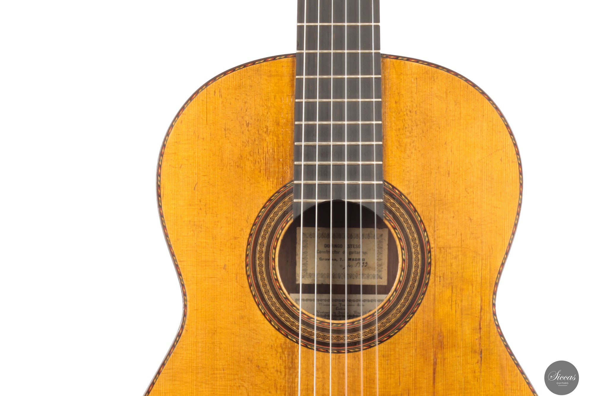 Domingo Esteso Lopez wurde 1882 in San Clemente geboren. Er war einer der bedeutendsten Gitarrenbauer des frühen 20. Jahrhunderts. In den 1890er Jahren begann er seine Lehre in der Werkstatt von Manuel Ramirez in Madrid. Dort arbeitete er mit Modesto Borreguero, Santos Hernandez und anderen zusammen. Im Jahr nach dem Tod von Manuel Ramirez (1864 – 1916) arbeitete er für die Witwe von M. Ramirez. Im Jahr 1917 eröffnete Domingo Esteso seine Werkstatt in der Calle Gravina in Madrid. Im Jahr 1926 trat sein Neffe Faustino Conde in die Werkstatt ein, drei Jahre später folgten sein Bruder Mariano Conde und schließlich Julio Conde. Als Domingo Esteso 1937 starb, bauten die drei Brüder unter „Vda y Sobrinos de Domingo Esteso“ weiter.